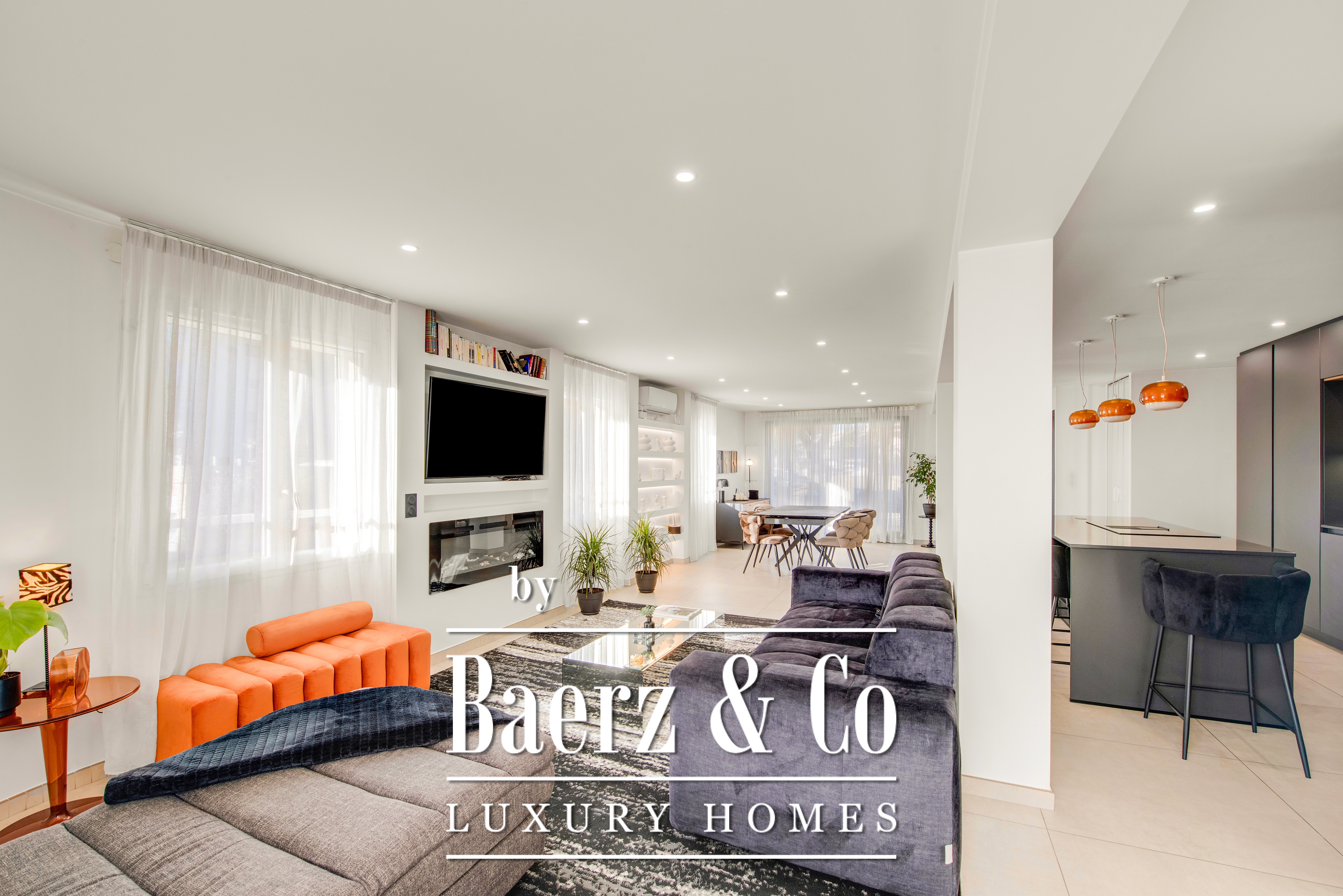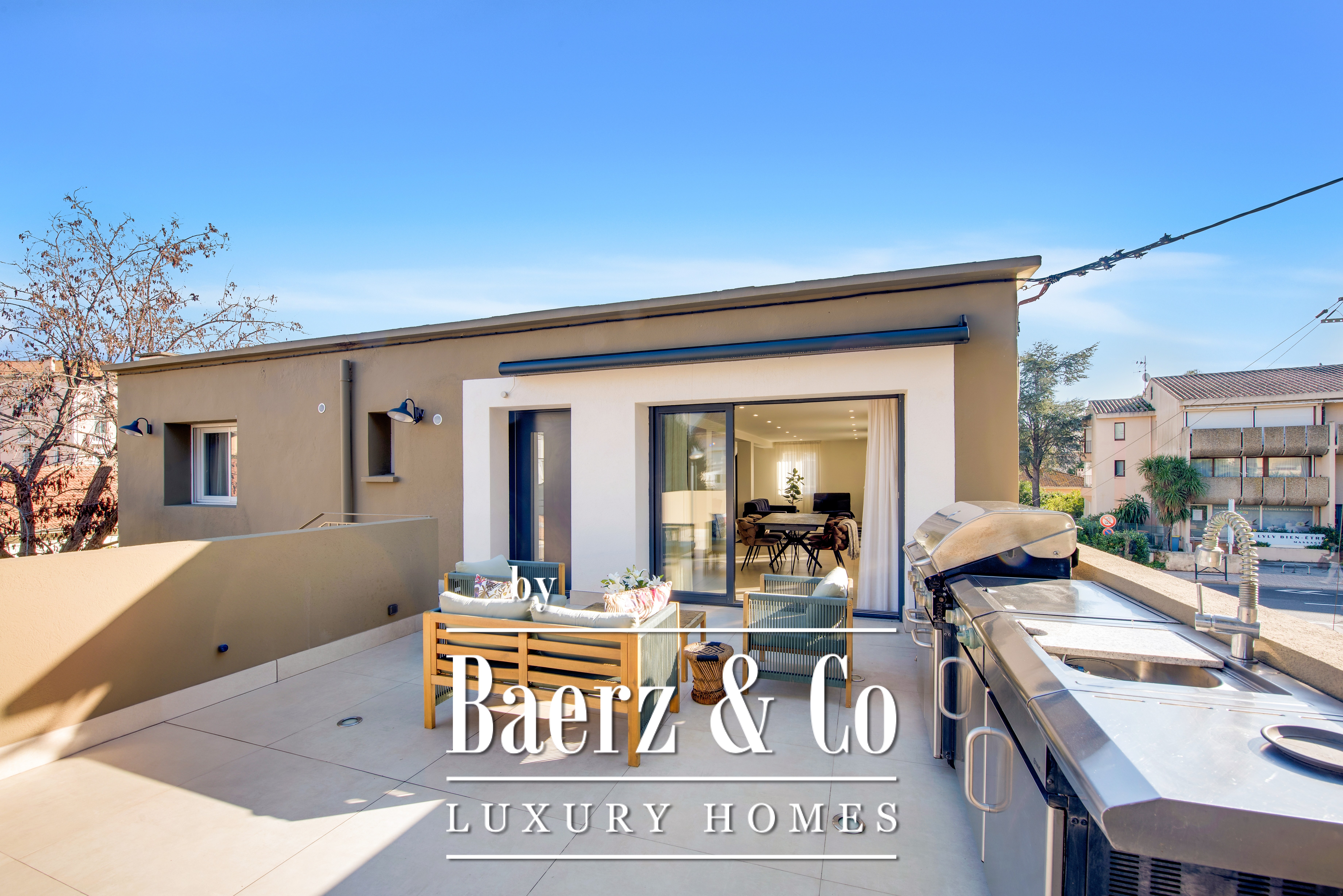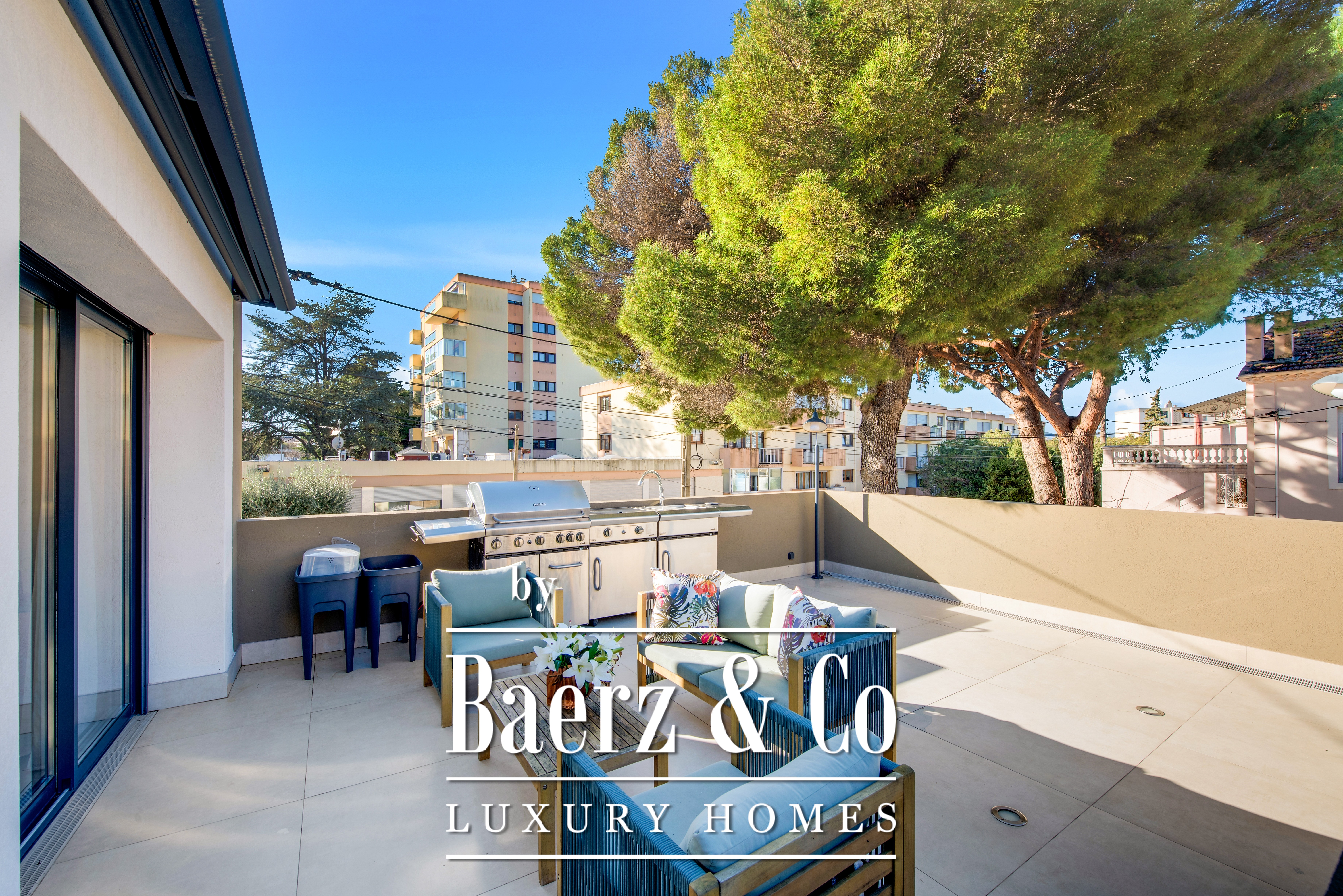 Das Apartment Saint-Raphaël Stadtzentrum befindet sich im Herzen der Stadt und bietet eine seltene Kombination aus hochwertiger Sanierung und großzügigem Raumangebot. Die renovierte Immobilie erstreckt sich über 125 m² und umfasst zwei Schlafzimmer en suite, jeweils durchdacht ausgestattet mit eigenem Duschbad oder Badezimmer. Das Wohnambiente ist offen und lichtdurchflutet, nach Süden ausgerichtet für optimale natürliche Helligkeit und mit einem Tagesverlauf, der sanft vom Morgenrot bis in das warme Nachmittagslicht übergeht. Eine 28 m² große Terrasse erweitert den Wohnbereich ins Freie, fängt die Sonne der Côte d’Azur ein und lädt zu ruhigen Momenten oder geselligen Zusammenkünften ein.