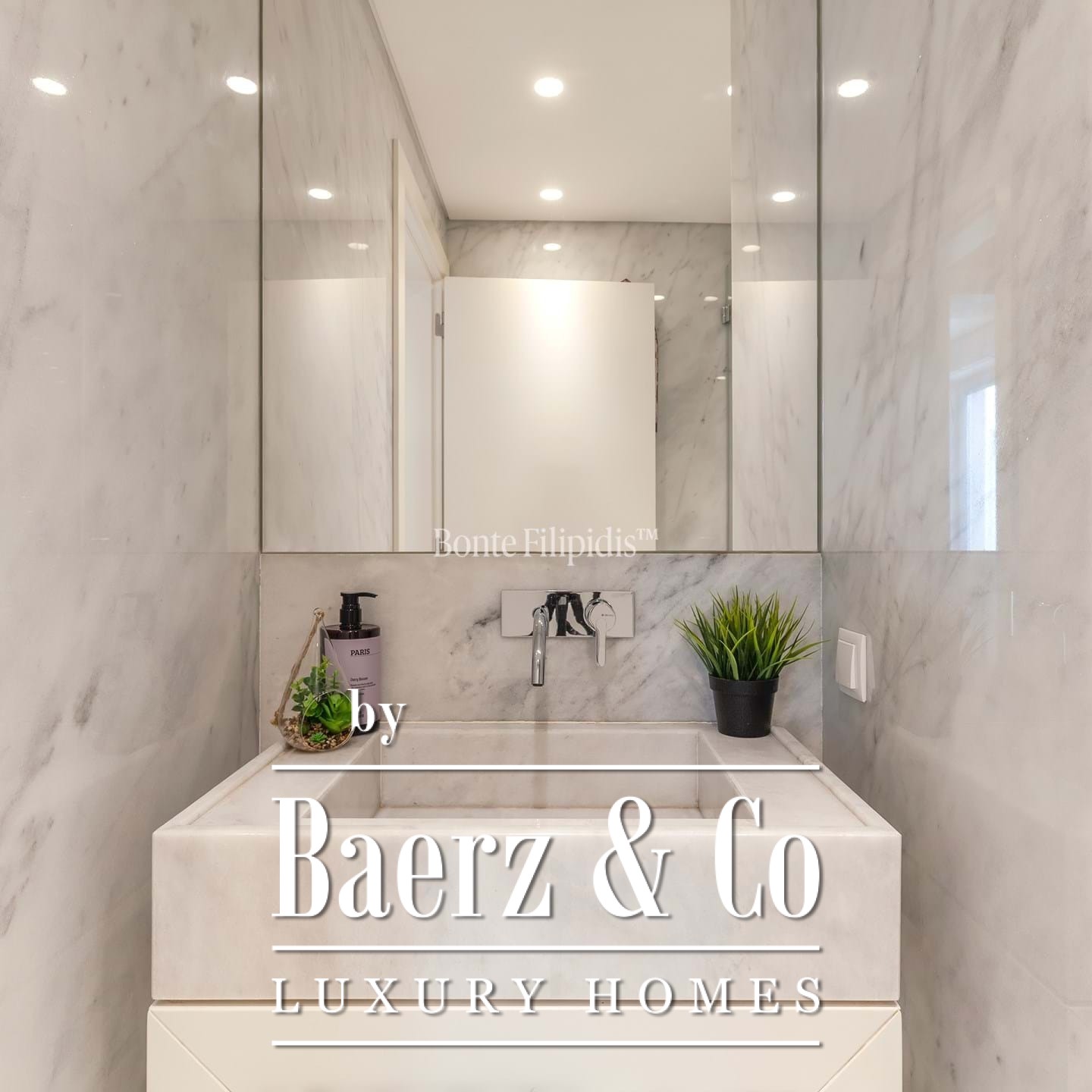 Originally a four-bedroom penthouse, one of the bedrooms has been transformed into a spacious walk-in closet adjoining the master suite. Spanning 197 sqm of interior space, the lower level houses the bedrooms, four bathrooms, and a balcony, all bathed in natural light from large windows that frame breathtaking views of Lisbons castle.
