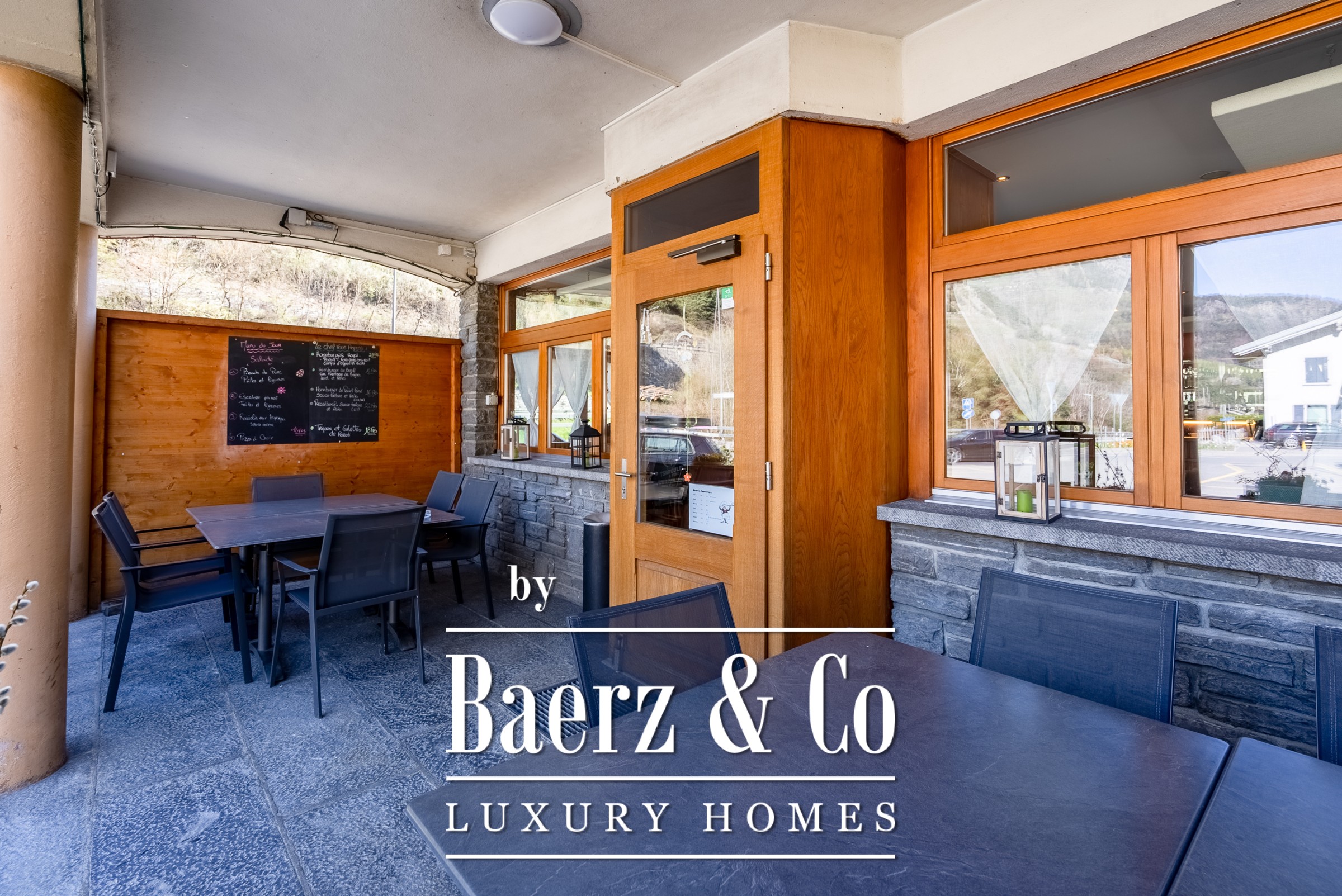Diese Restaurantliegenschaft in Sembrancher bietet eine besondere Gelegenheit an einem natürlichen Knotenpunkt zwischen Val de Bagnes, Orsières und Martigny. Auf einer Fläche von 487 m² umfasst das Anwesen ein einladendes Café mit 30 Sitzplätzen, einen Hauptgastraum für 40 Gäste und einen großen Konferenzsaal, der bis zu 100 Teilnehmer aufnehmen kann. Im Herzen von Sembrancher gelegen, vereint die Immobilie gastgewerbliche und geschäftliche Nutzung unter einer Adresse.