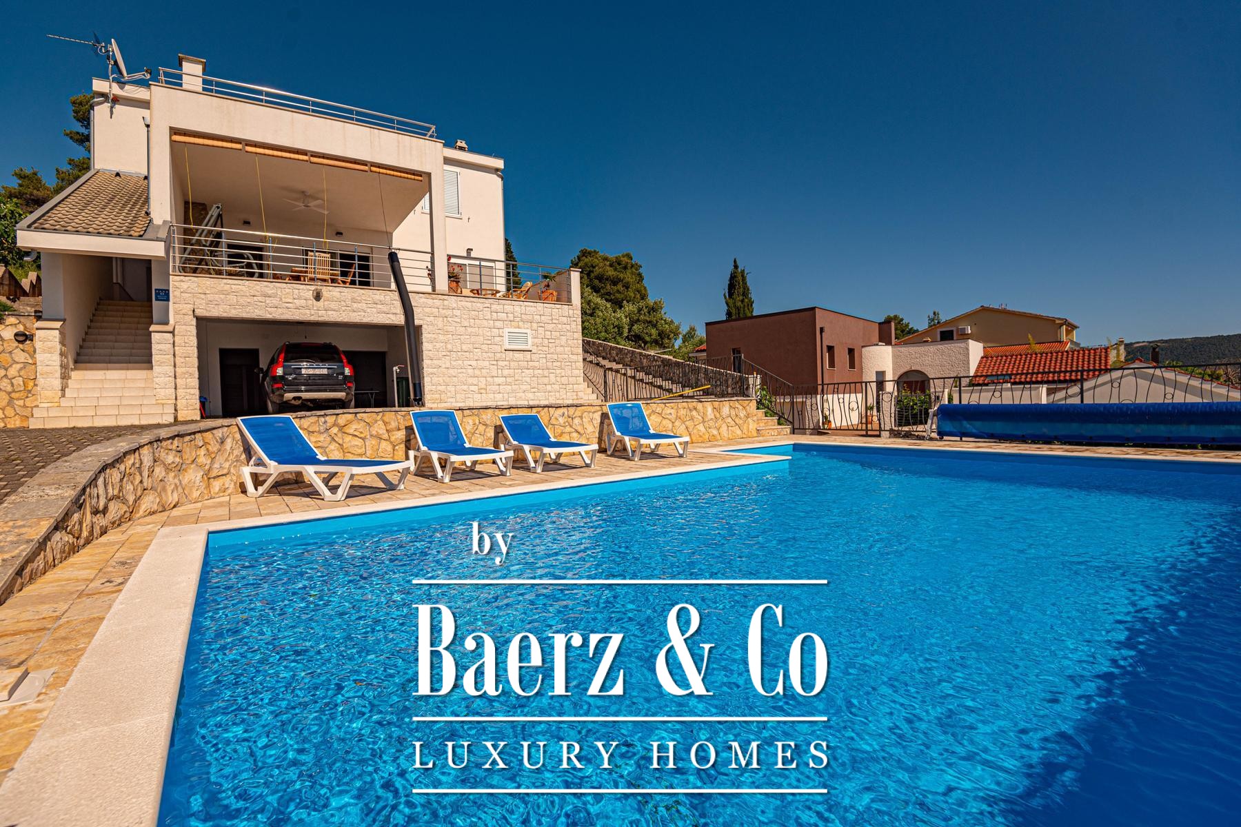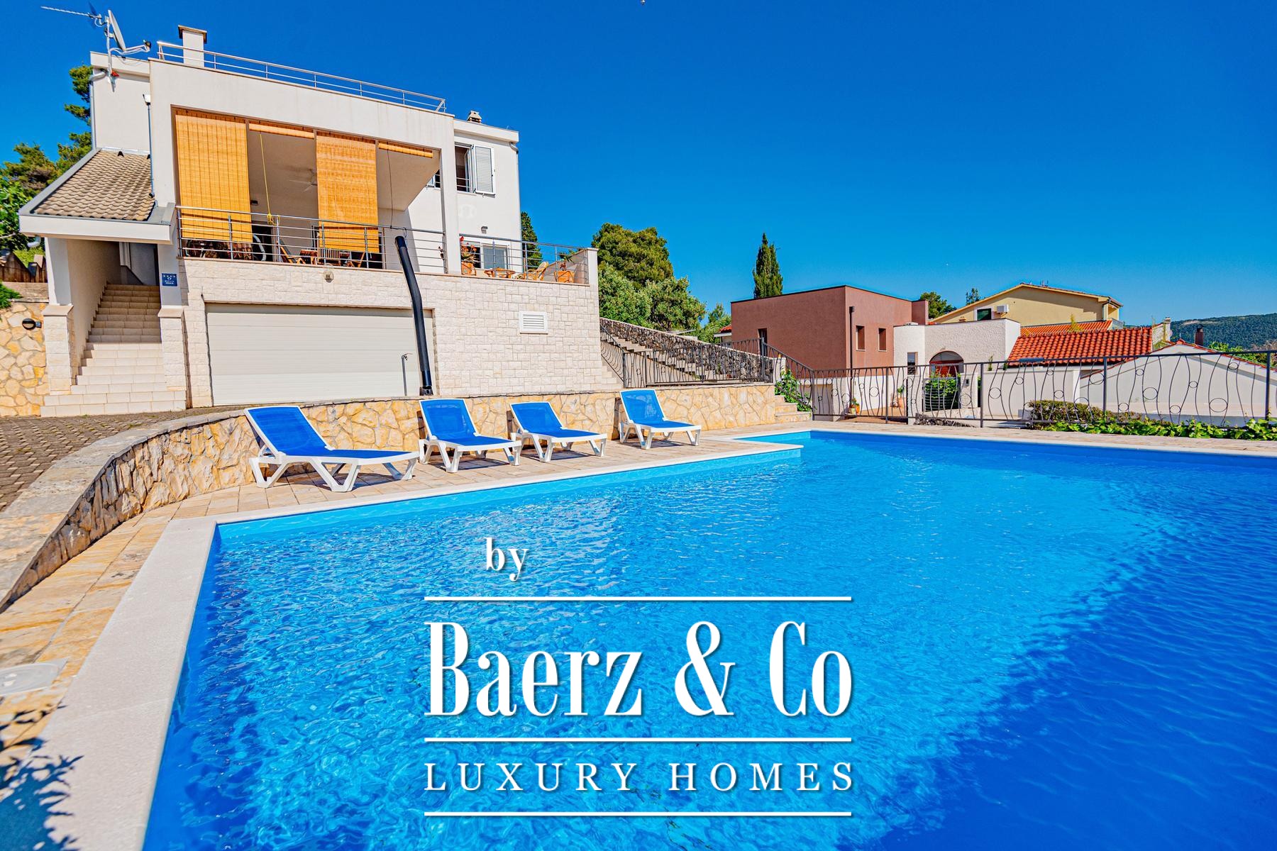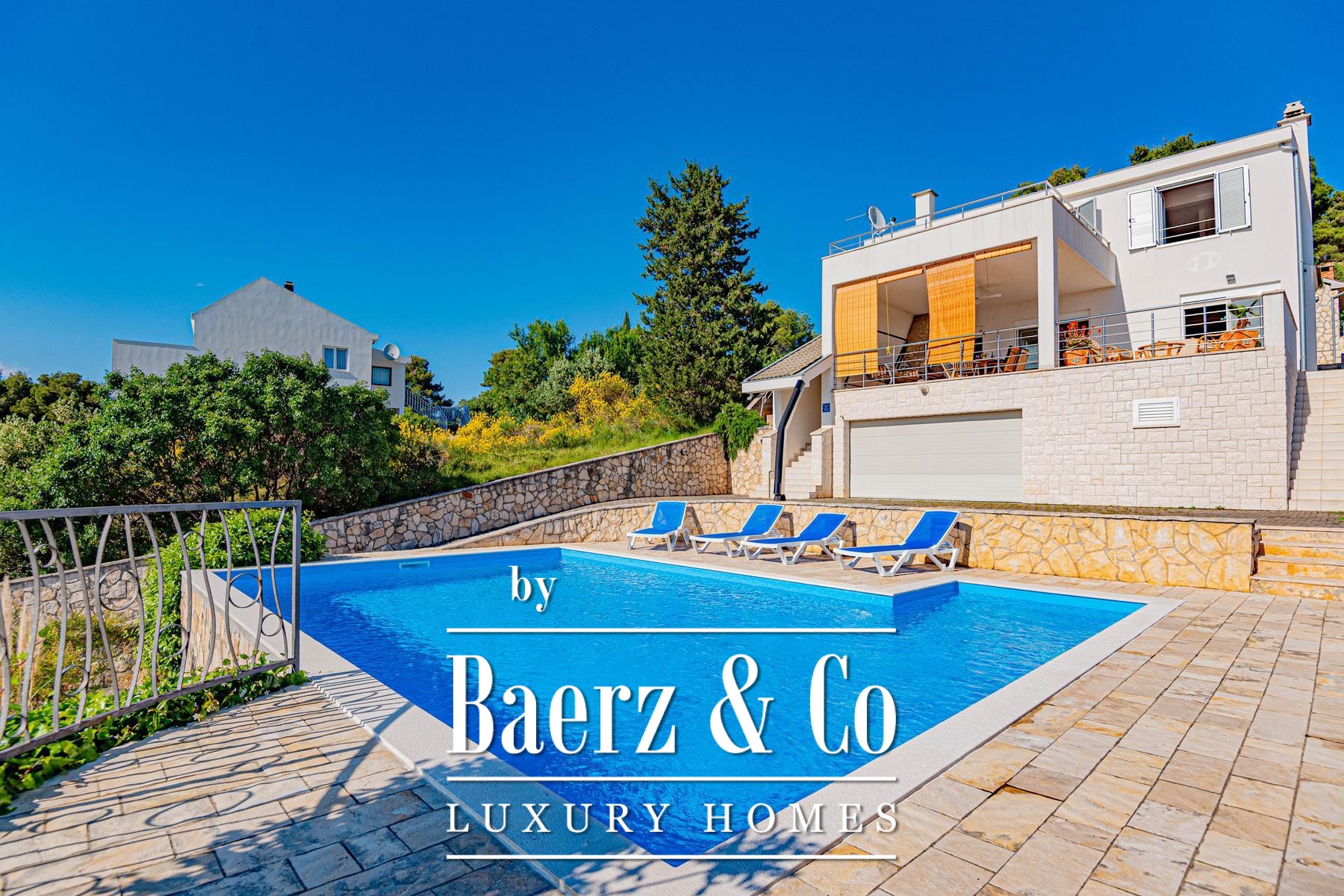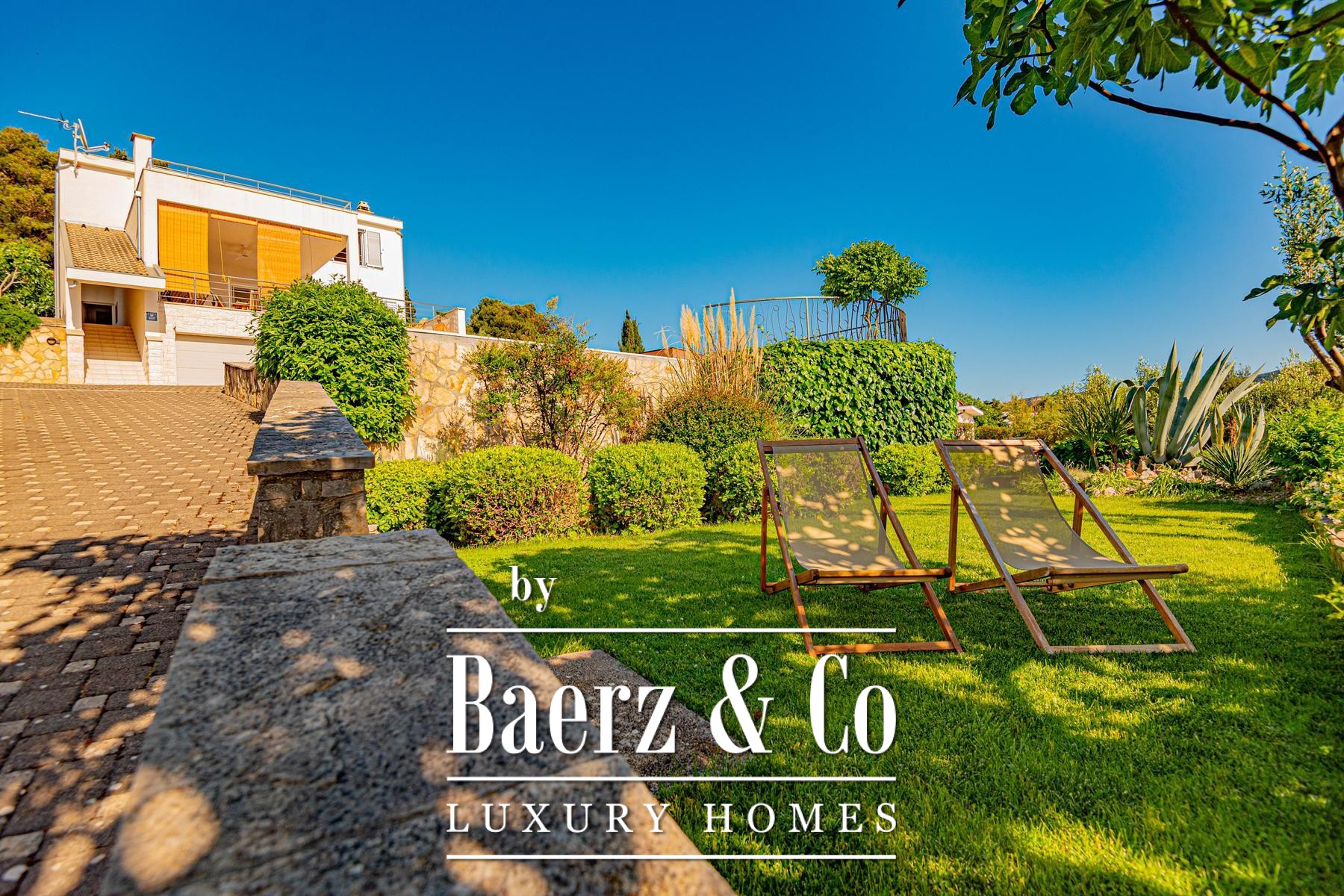 a large covered terrace with a sea view, where there is a fireplace and a space for socializing. On the first floor there are three bedrooms, each with a private bathroom, and two rooms also have access to a terrace with a sea view.The house was built to top standards, and is very nicely decorated. It is surrounded by a very beautiful garden that is excellently decorated and maintained, and there is also a large swimming pool and a sunbathing area.All other information on request.