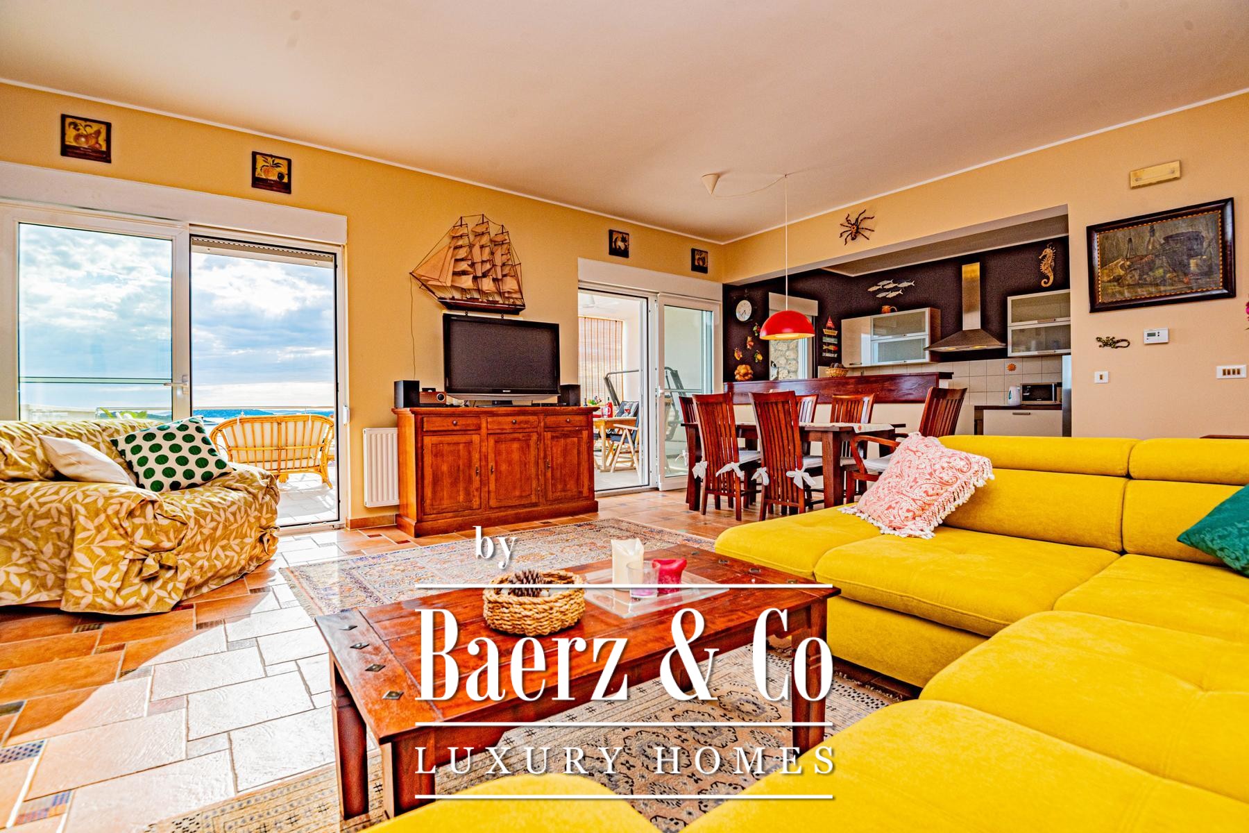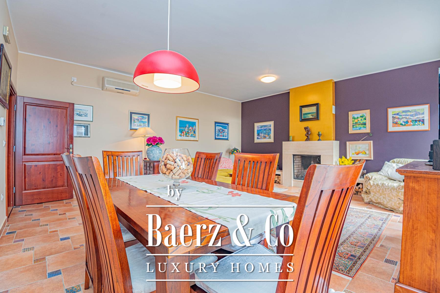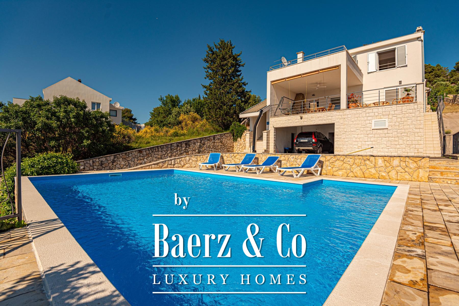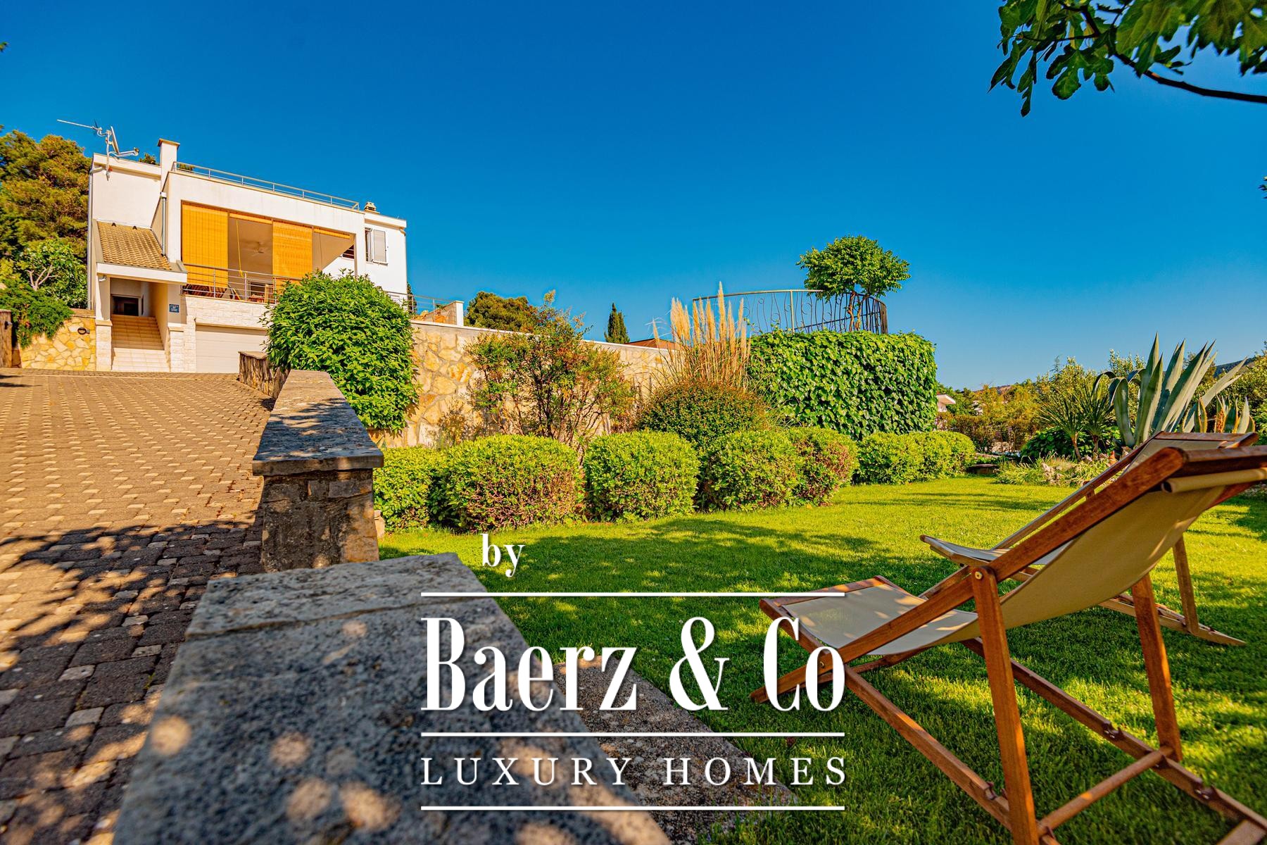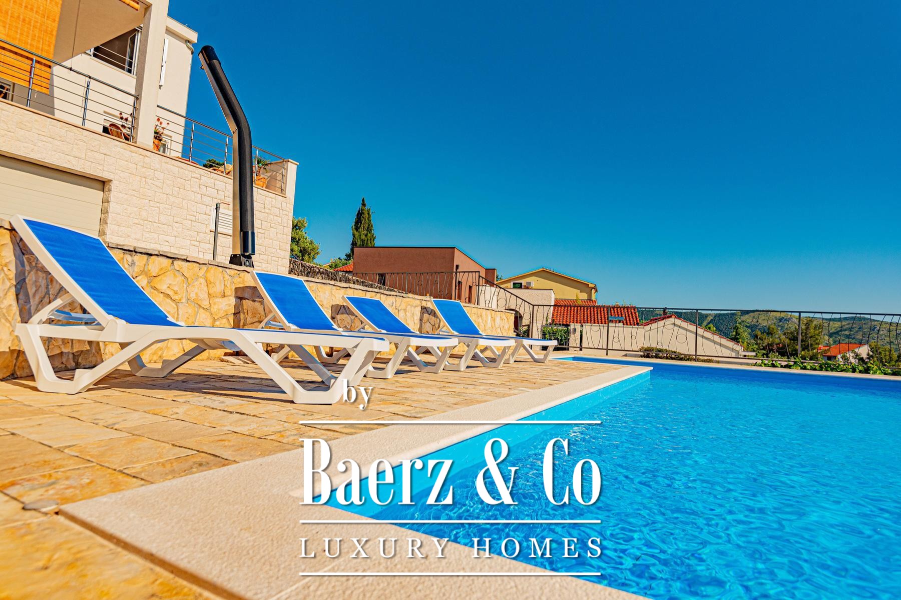 a large covered terrace with a sea view, where there is a fireplace and a space for socializing. On the first floor there are three bedrooms, each with a private bathroom, and two rooms also have access to a terrace with a sea view.The house was built to top standards, and is very nicely decorated. It is surrounded by a very beautiful garden that is excellently decorated and maintained, and there is also a large swimming pool and a sunbathing area.All other information on request.
