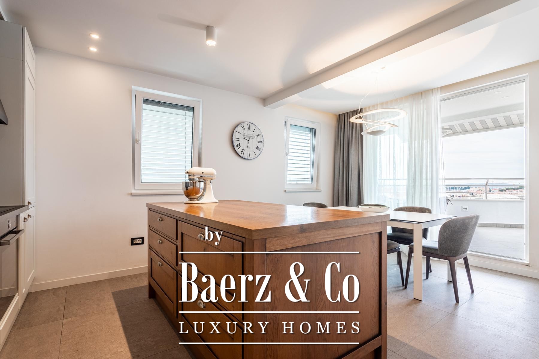 Exclusive Eurovilla offer - city center of Split, Ljudevita Posavskog Street.We present an apartment located on the 6th floor (penultimate floor) of a building with an elevator, west-facing, with a total usable floor area (UFA) of 124.56 m².The apartment consists of an entrance hallway, kitchen with dining area, spacious living room opening onto a partially covered terrace, three bedrooms (one with an en-suite bathroom), an additional bathroom, and a storage/laundry room. The terrace offers open views of Marjan, the city, and partial sea views. Water and electricity are installed on the terrace, allowing for the installation of an outdoor kitchen.The apartment is fully modernly equipped and furnished, featuring high-quality parquet floors and top-quality ceramic tiles. The bathrooms