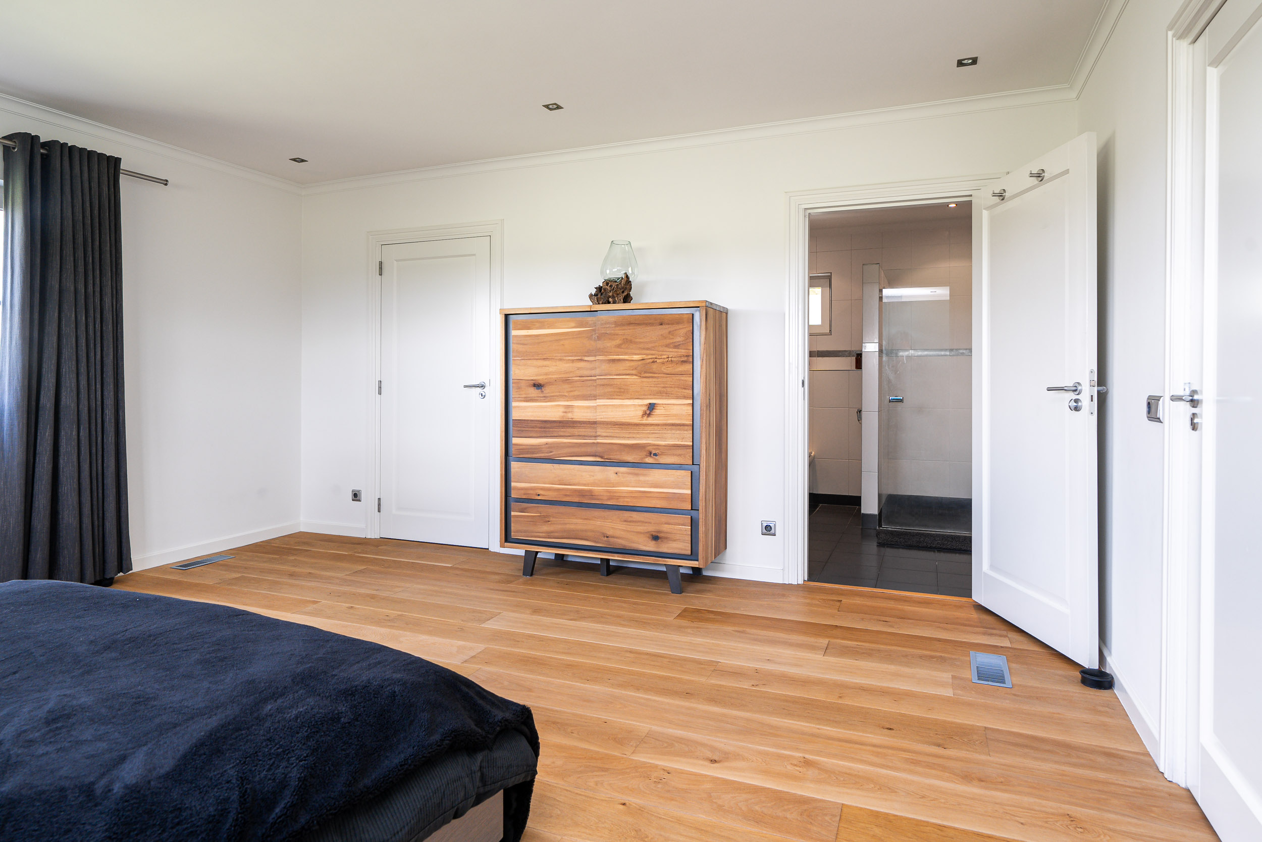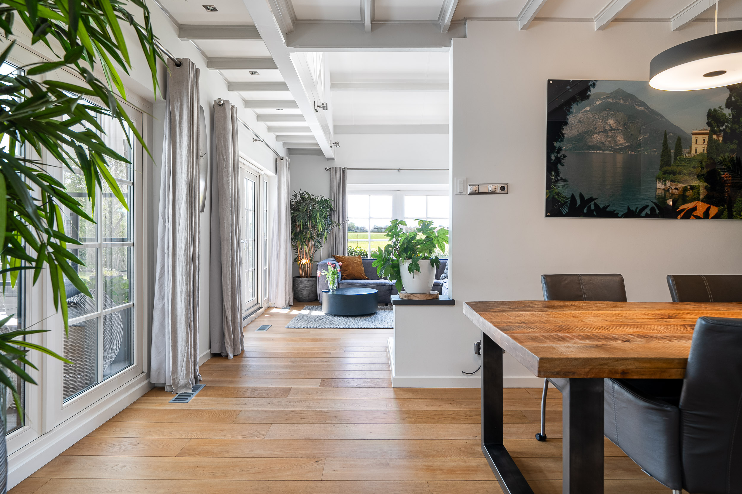 Villa Stavoren eröffnet eine faszinierende Perspektive auf das Leben im Norden der Niederlande. Diese Villa, gelegen auf einem 3.265 m² großen, umzäunten Grundstück nahe dem IJsselmeer und angrenzend an einen Yachthafen, vereint Privatsphäre, üppiges Grün und mühelosen Zugang zum offenen Wasserwegnetz Frieslands. Die vollständig renovierte Wohnfläche von 245 m² überzeugt durch zeitlose Qualität, vier Schlafzimmer, zwei Bäder und eine luxuriöse Küche mit Hauswirtschaftsraum. Panoramafenster und eine weitläufige Galerie durchfluten den Wohnbereich mit Licht und lassen die Ruhe der Umgebung sowie das wechselhafte Licht über dem Friesischen Himmel unmittelbar erleben. Ein Kaminofen, warme Holzböden mit Fußbodenheizung und der fließende Übergang auf Veranda und Terrasse unterstreichen Komfort und Rückzugsmöglichkeiten.