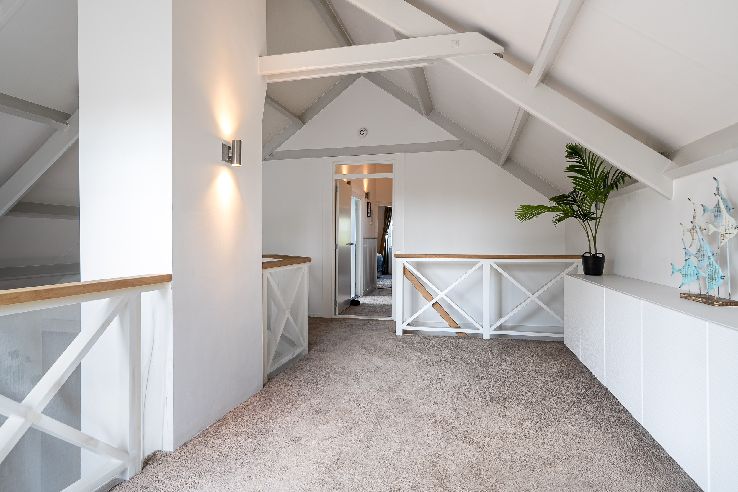Für das generationsübergreifende Wohnen gemacht, bietet das Erdgeschoss eine geräumige Master-Suite mit begehbarem Kleiderschrank und eigenem Bad. Im Obergeschoss befinden sich drei weitere Schlafzimmer, ein großzügiges Bad sowie eine Sonnenterrasse, die einen privaten Blick auf Sonnenauf- und -untergänge über dem Schilfwasser ermöglichen.