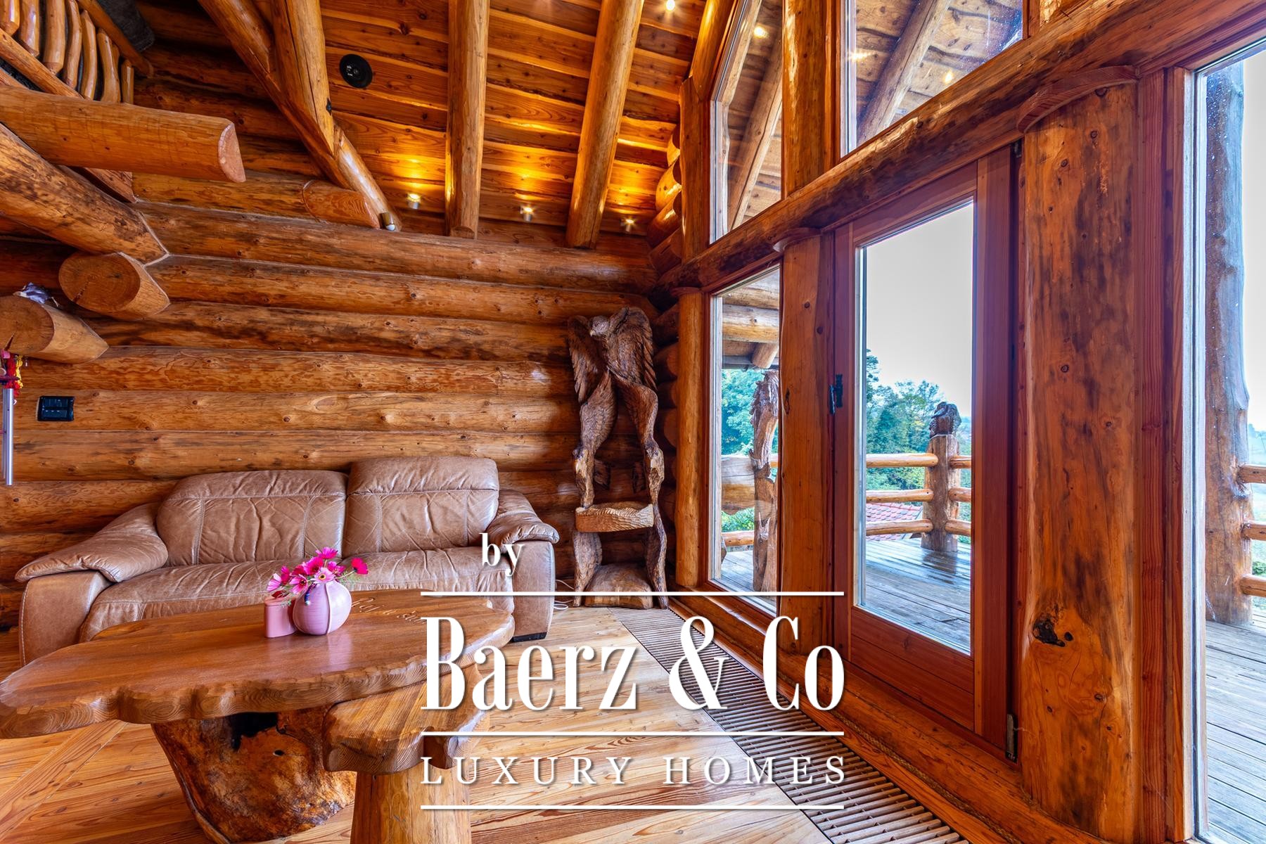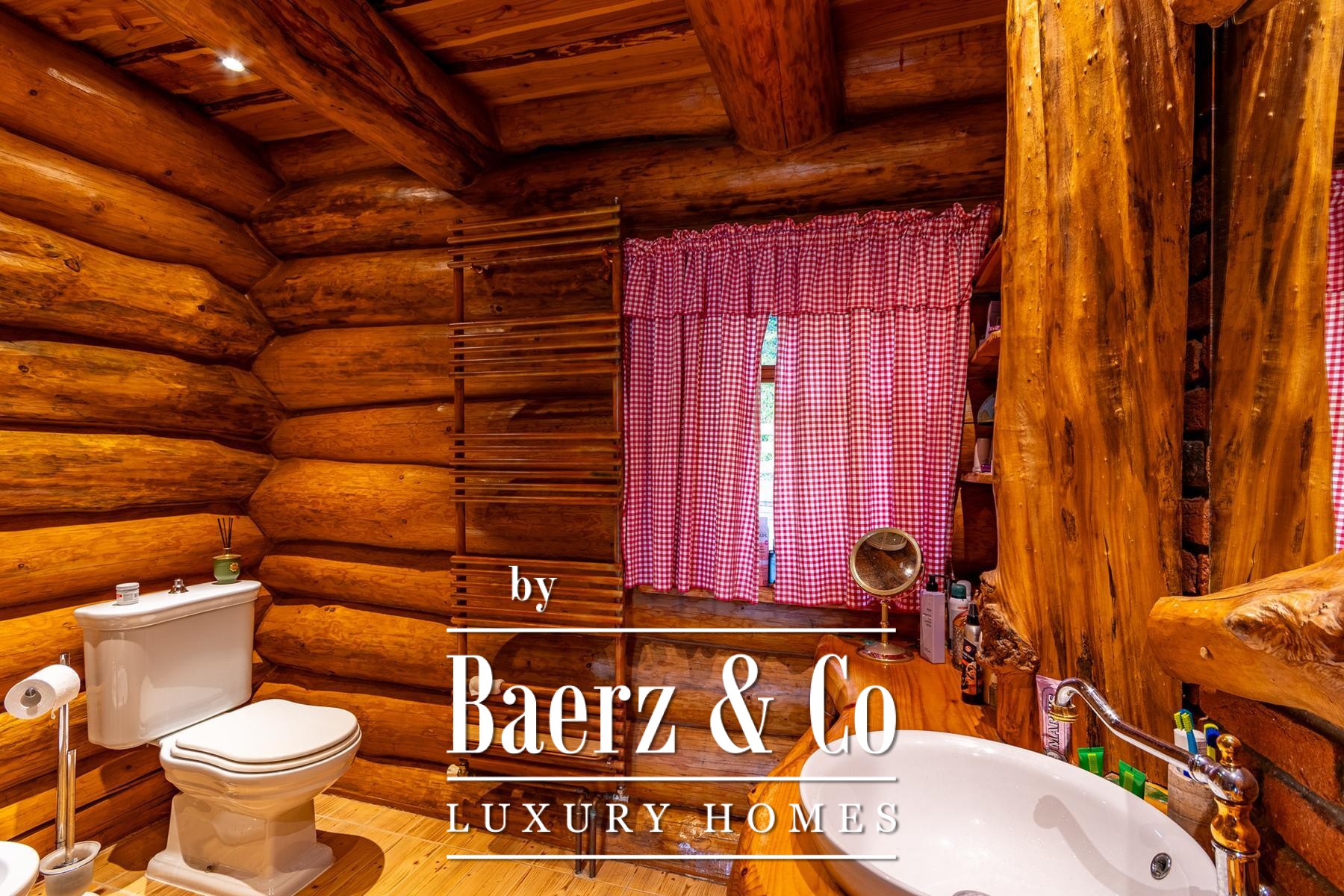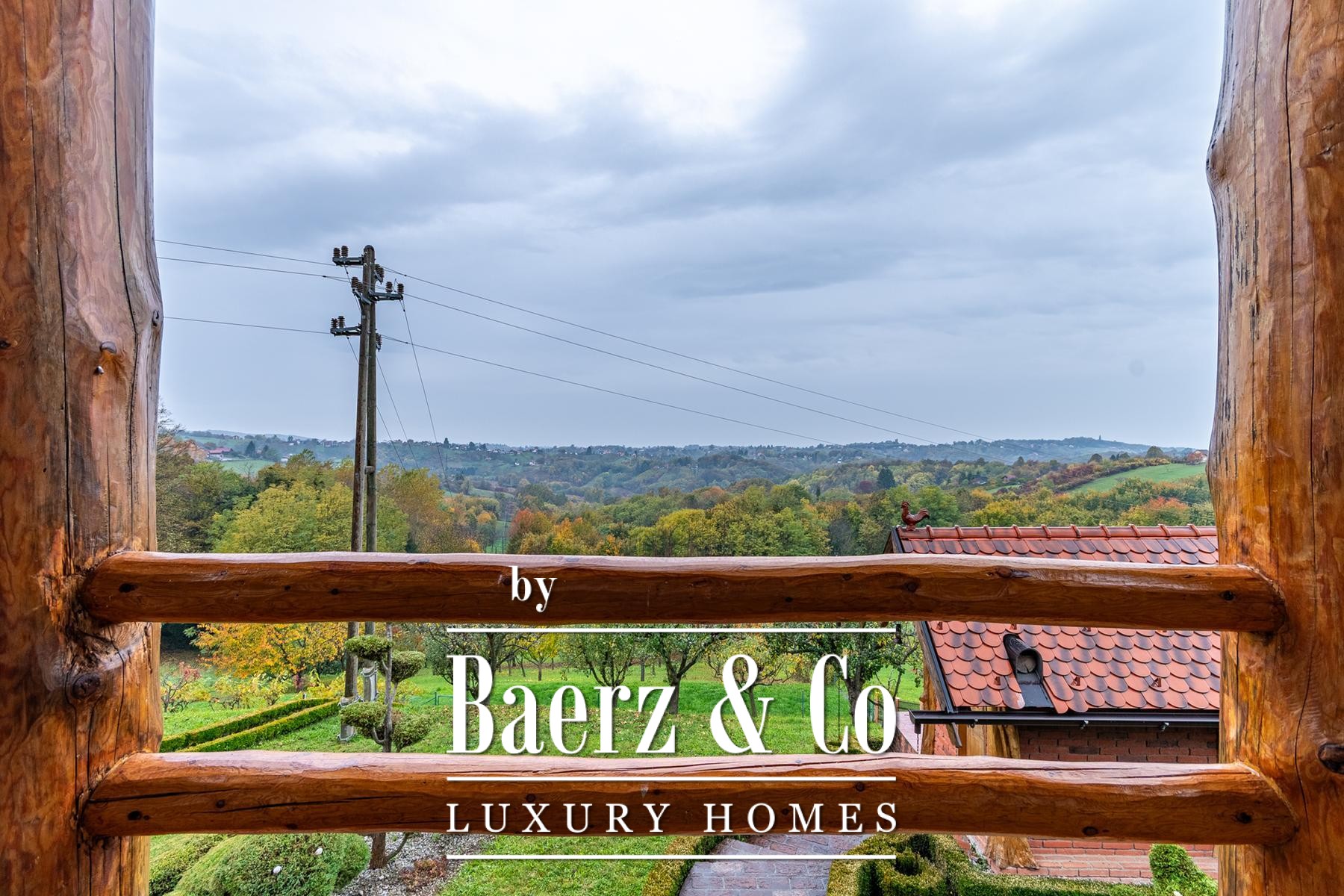 Drei Nebengebäude—ein Pavillon, eine Werkstatt und ein Außen-WC—unterstreichen den authentisch ländlichen Charakter. Das sorgfältig gestaltete Grundstück mit Apfel-, Pflaumen-, Feigen-, Aronia- und Himbeerbäumen bietet Orte der Einkehr und des Rückzugs. Panoramablicke und tiefe Privatsphäre schaffen eine unverwechselbare Atmosphäre. Dies ist nicht einfach ein Blockhaus zum Verkauf in Varaždinske Toplice, sondern ein durchdachtes Refugium, das mit Ort und Material verwurzelt ist.