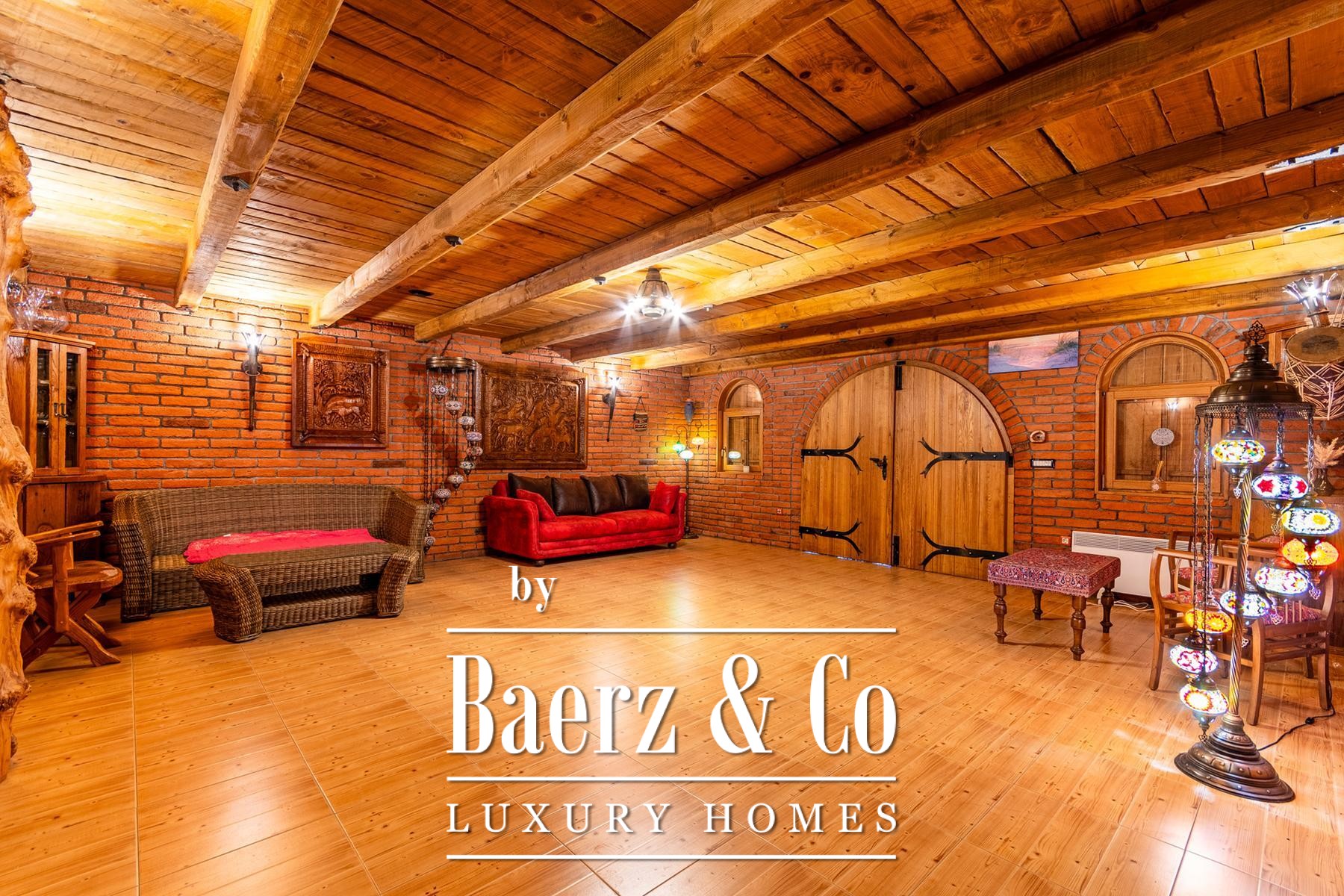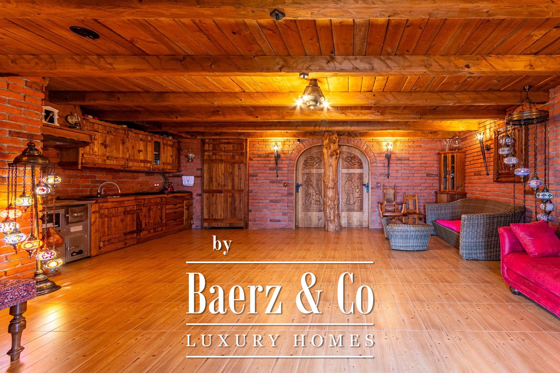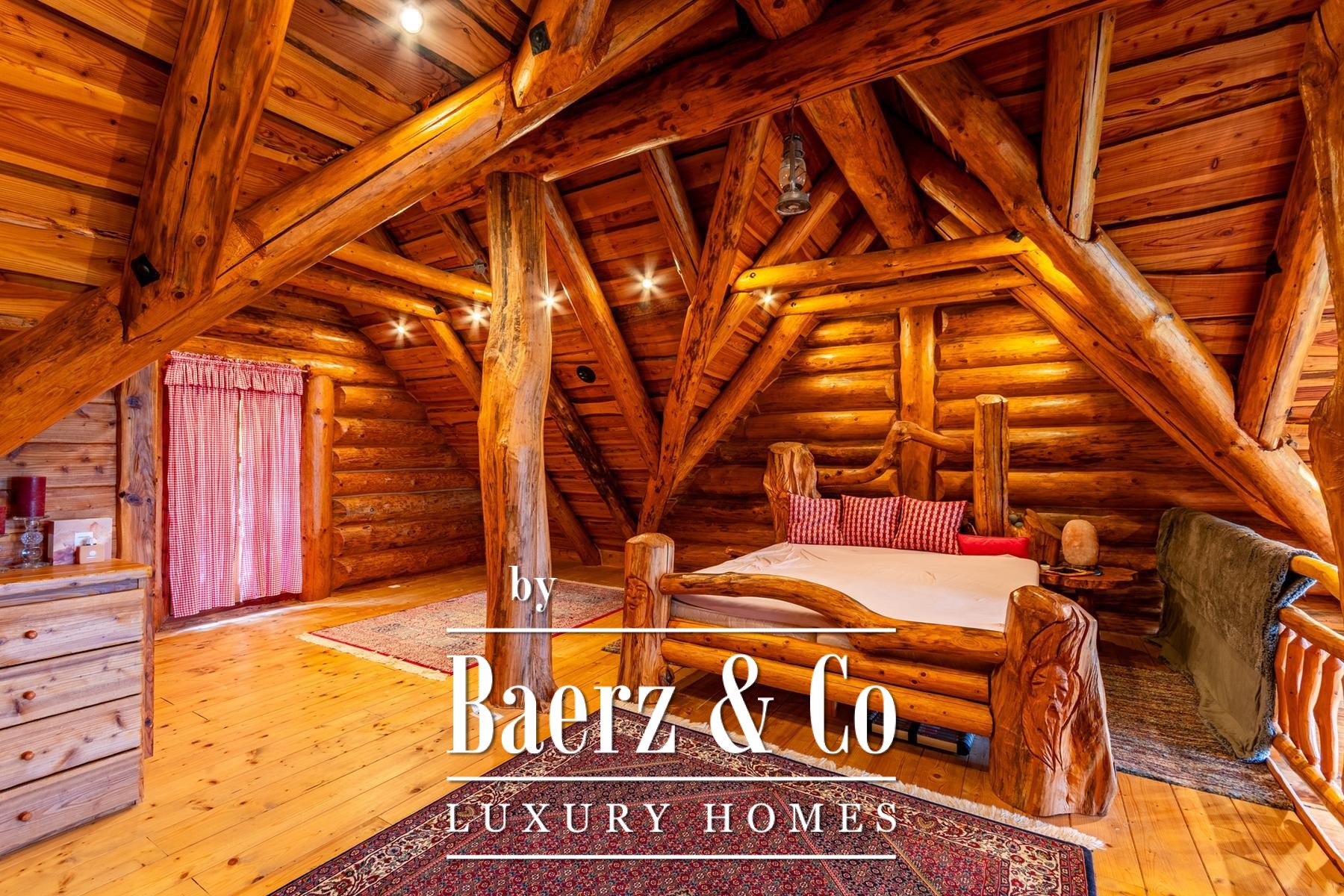 Drei Nebengebäude—ein Pavillon, eine Werkstatt und ein Außen-WC—unterstreichen den authentisch ländlichen Charakter. Das sorgfältig gestaltete Grundstück mit Apfel-, Pflaumen-, Feigen-, Aronia- und Himbeerbäumen bietet Orte der Einkehr und des Rückzugs. Panoramablicke und tiefe Privatsphäre schaffen eine unverwechselbare Atmosphäre. Dies ist nicht einfach ein Blockhaus zum Verkauf in Varaždinske Toplice, sondern ein durchdachtes Refugium, das mit Ort und Material verwurzelt ist.