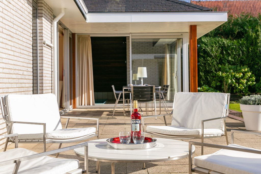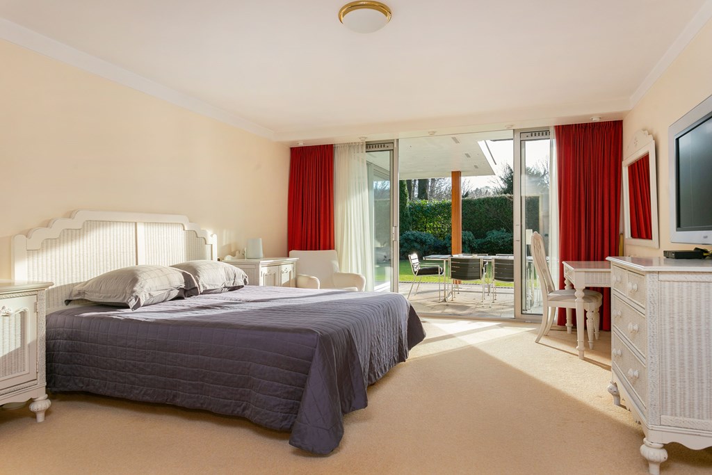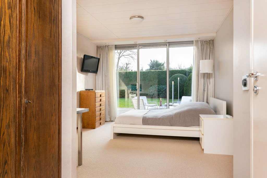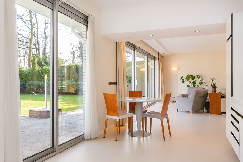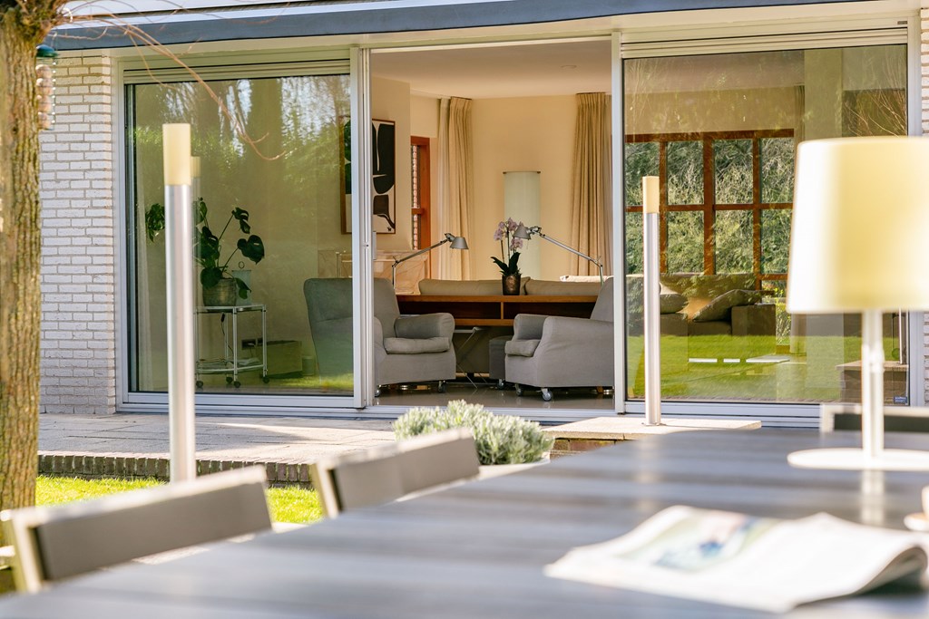 Via de schuifpuien heeft u vanuit alle slaapkamers en het zwembad direct toegang tot de tuin en het deels overdekte terras, zo gaan binnen en buiten naadloos in elkaar over.