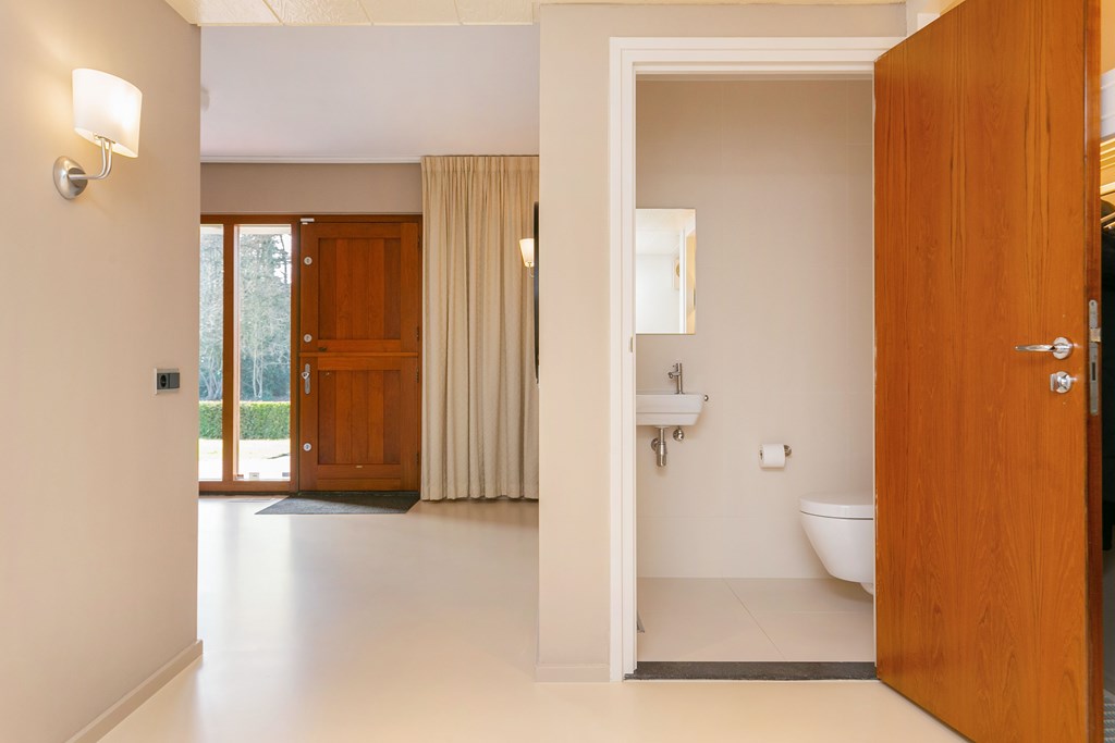 De vrijstaande villa biedt volop licht en privacy en heeft een woonoppervlakte van 459 m², dat grotendeels op de begane grond is. De woning bevindt zich op een van de mooiste en stilste plekken in de wijk De Salamander, op twee minuten loopafstand van het bos van de Utrechtse Heuvelrug en toch vlakbij alle voorzieningen van Veenendaal.
