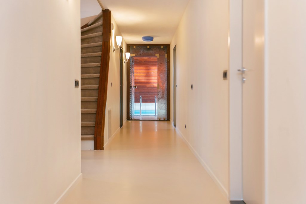 • Zwembad: Plafonds afgewerkt met Alerce-hout. Rvs-materialen, betegeld. Met de jetstream kun je ‘op de plaatst’ zwemmen zonder baantjes te trekken. In een binnenbad kun je niet alleen het hele jaar zwemmen, het biedt ook minimaal onderhoud, omdat er valt geen blad en vuil in valt en is geen voorjaars en najaars schoonmaak nodig is