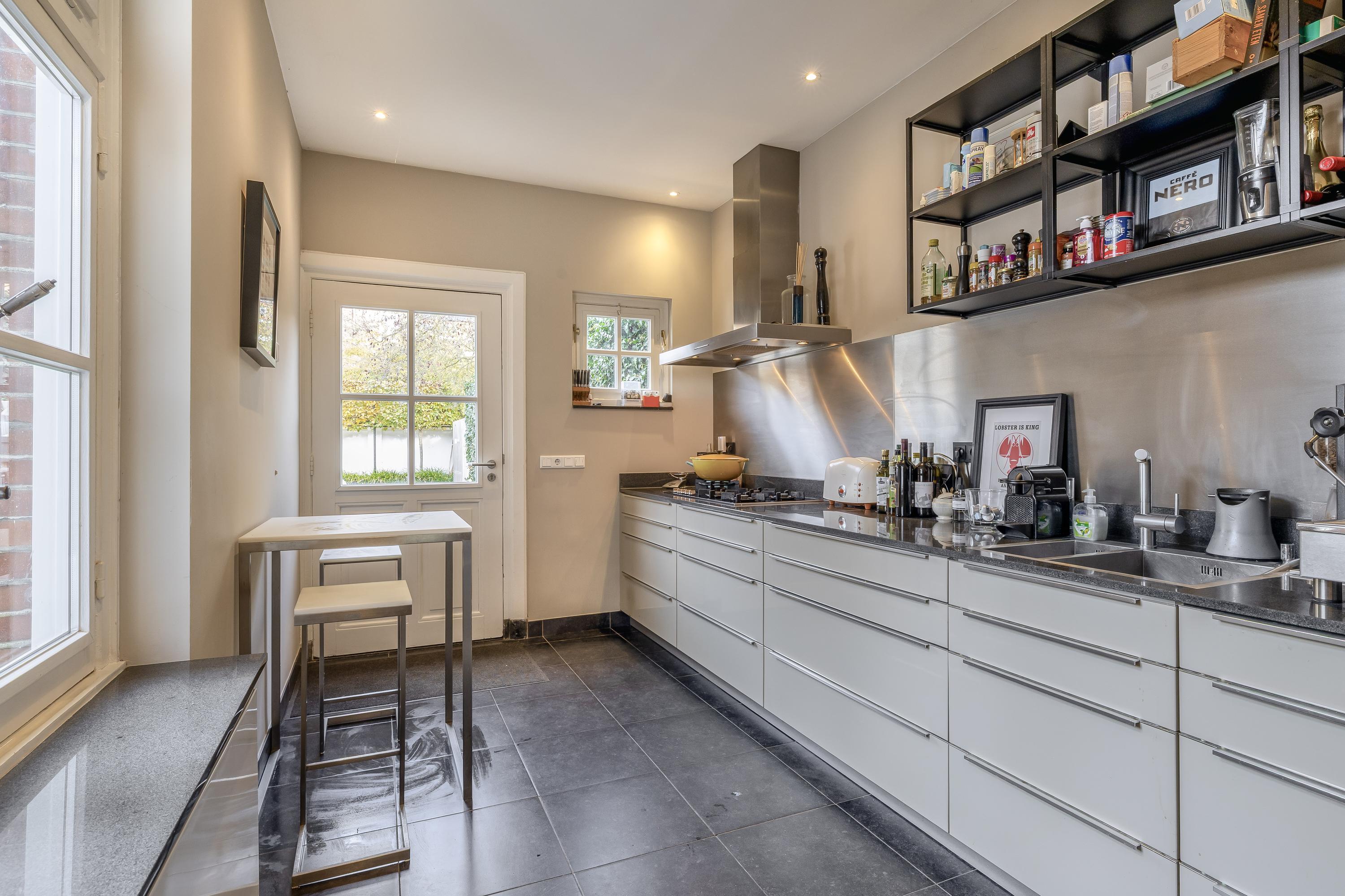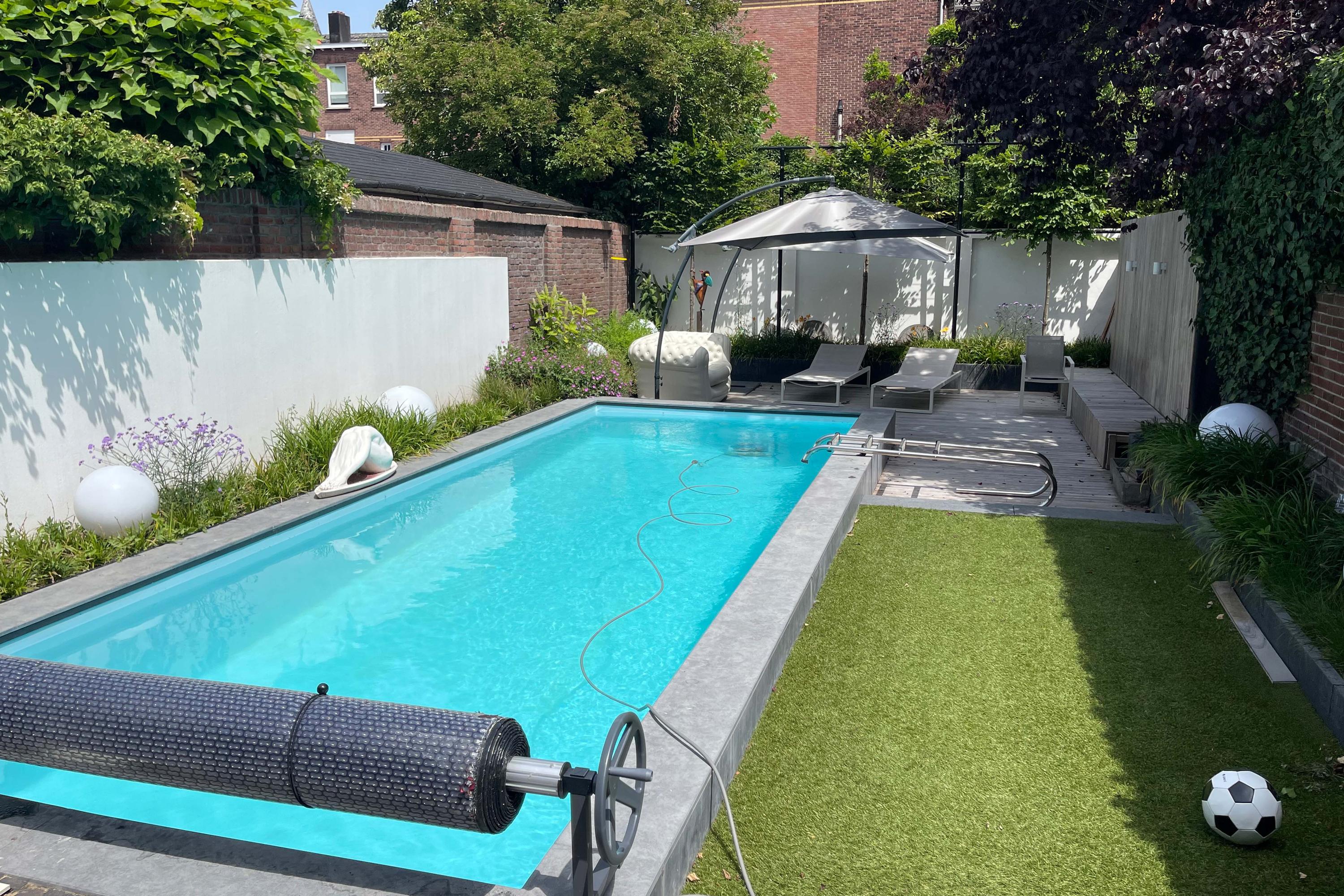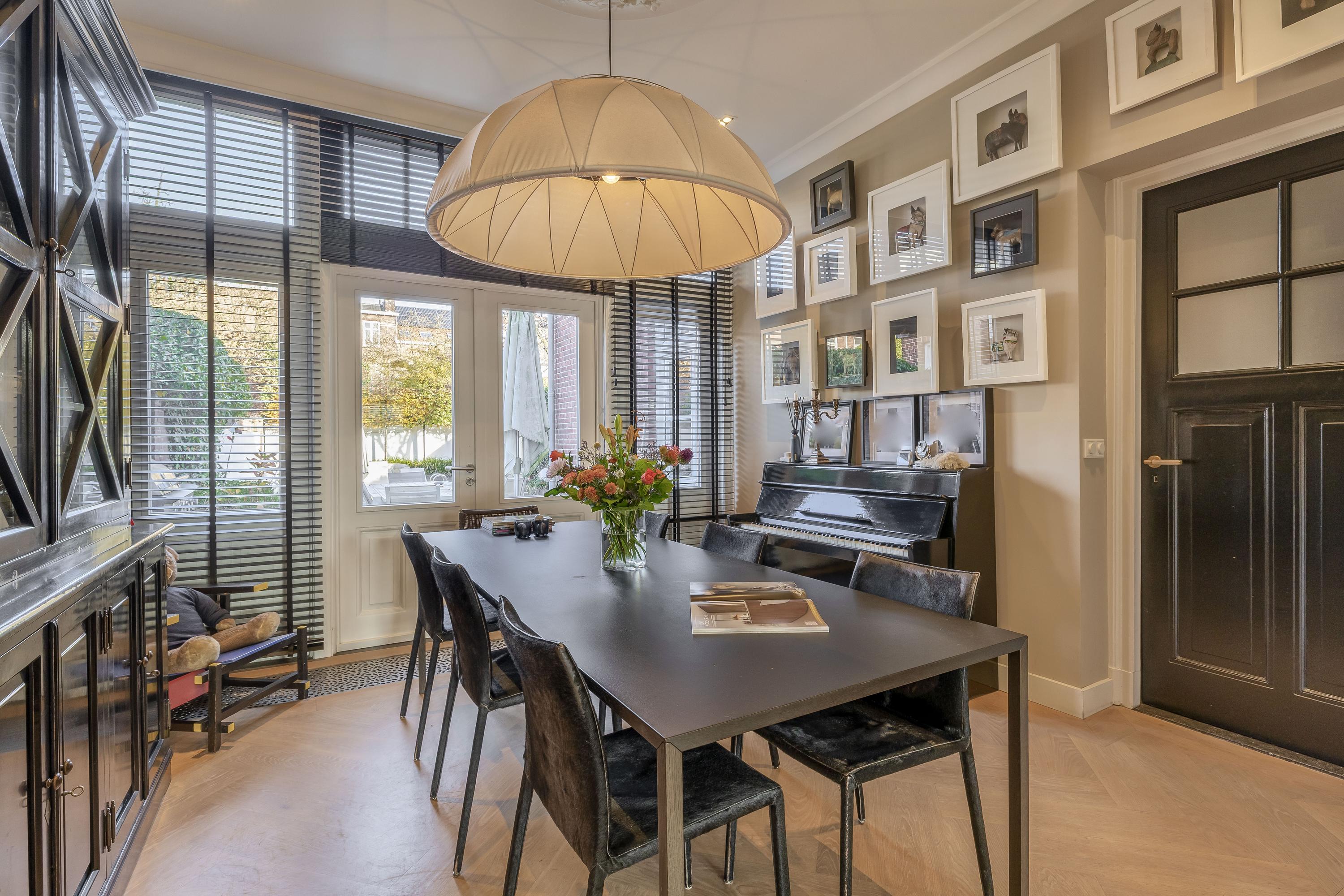 Die Hauptebene besticht durch einen unverbaubaren Blick auf das Rosarium, hohe Decken mit originalen Stuckverzierungen, einen Gaskamin sowie nahtlos integrierte Technik inklusive Klimaanlage und dimmbarer Beleuchtung. Französische Türen im hinteren Bereich führen in den vom Architekten gestalteten Garten, einen privaten Rückzugsort mit mehreren Terrassen, Decking aus Padauk-Holz, gepflastertem Patio und einem beheizten Swimmingpool. Umschlossen von Mauern genießen Sie hier absolute Privatsphäre, nur wenige Minuten vom Zentrum Venlos entfernt.