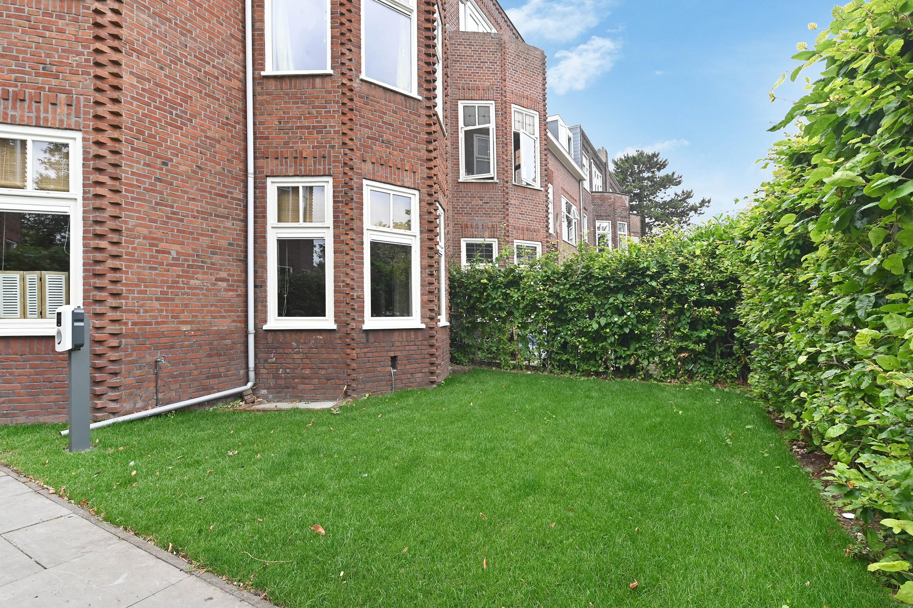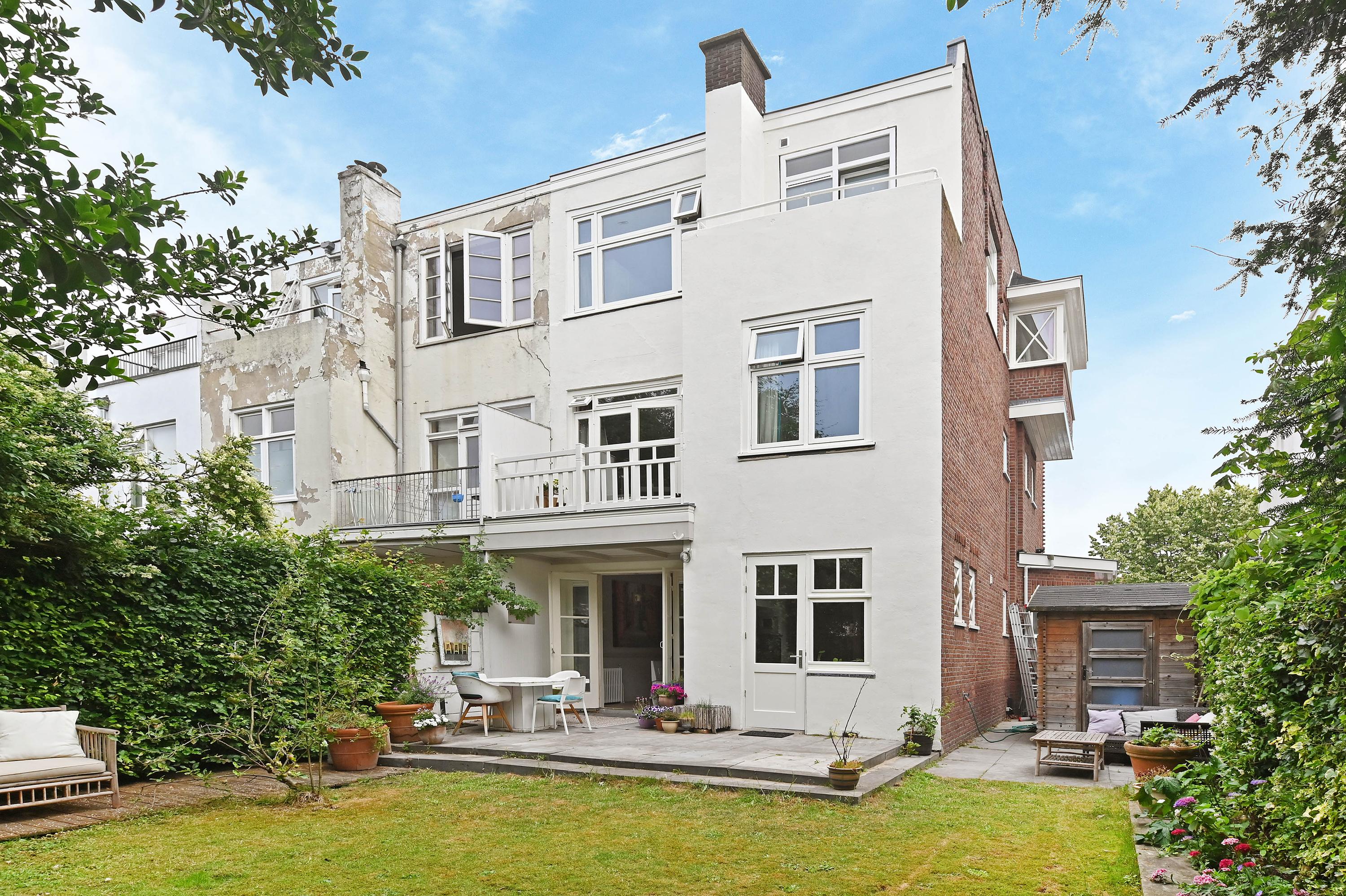 Spacious (ca. 285m2) end-of-terrace house with 7 bedrooms, 2 bathrooms, garden on 3 sides, and a driveway set on a wide, tree-lined street in historic Voorburg.