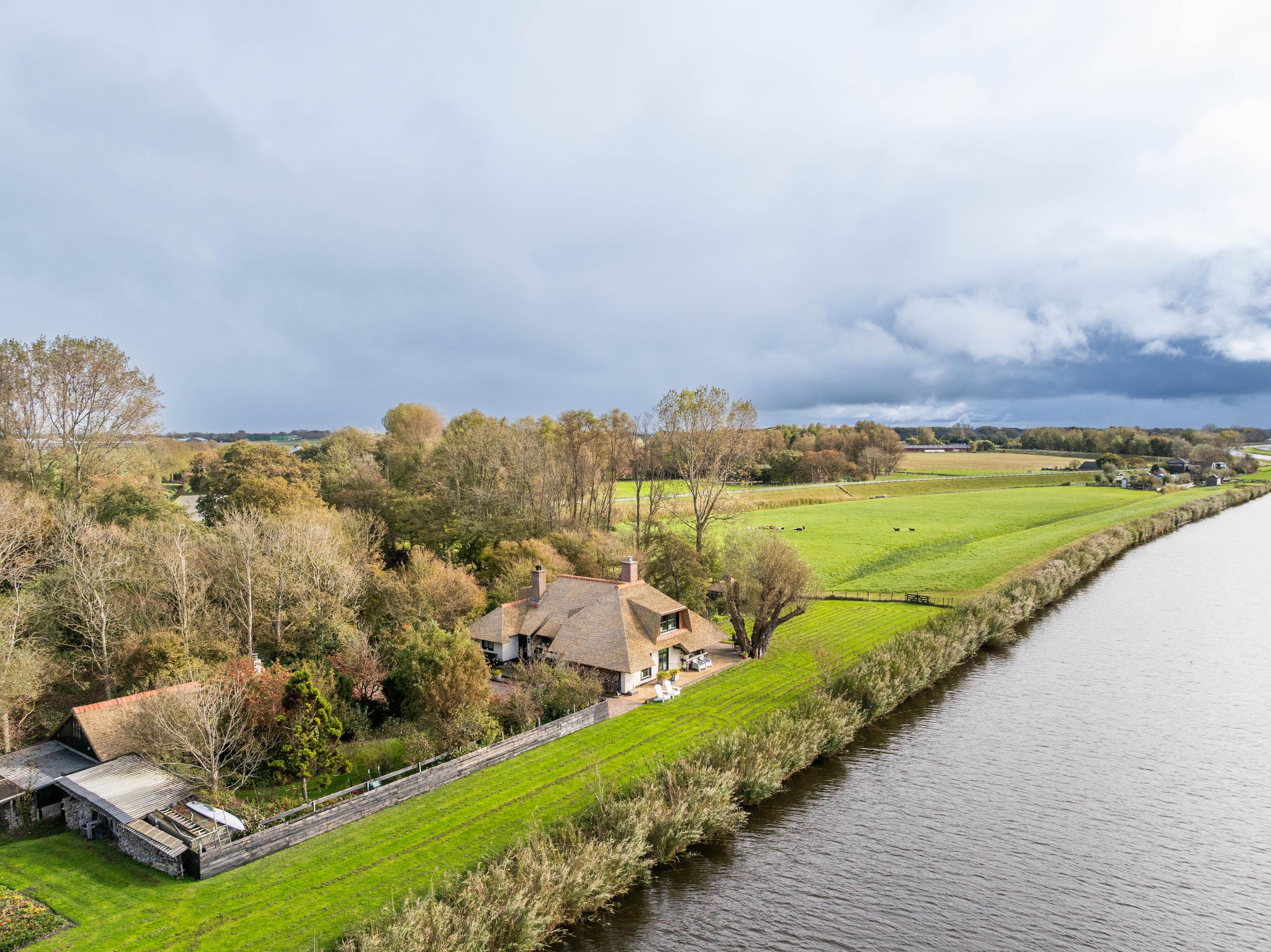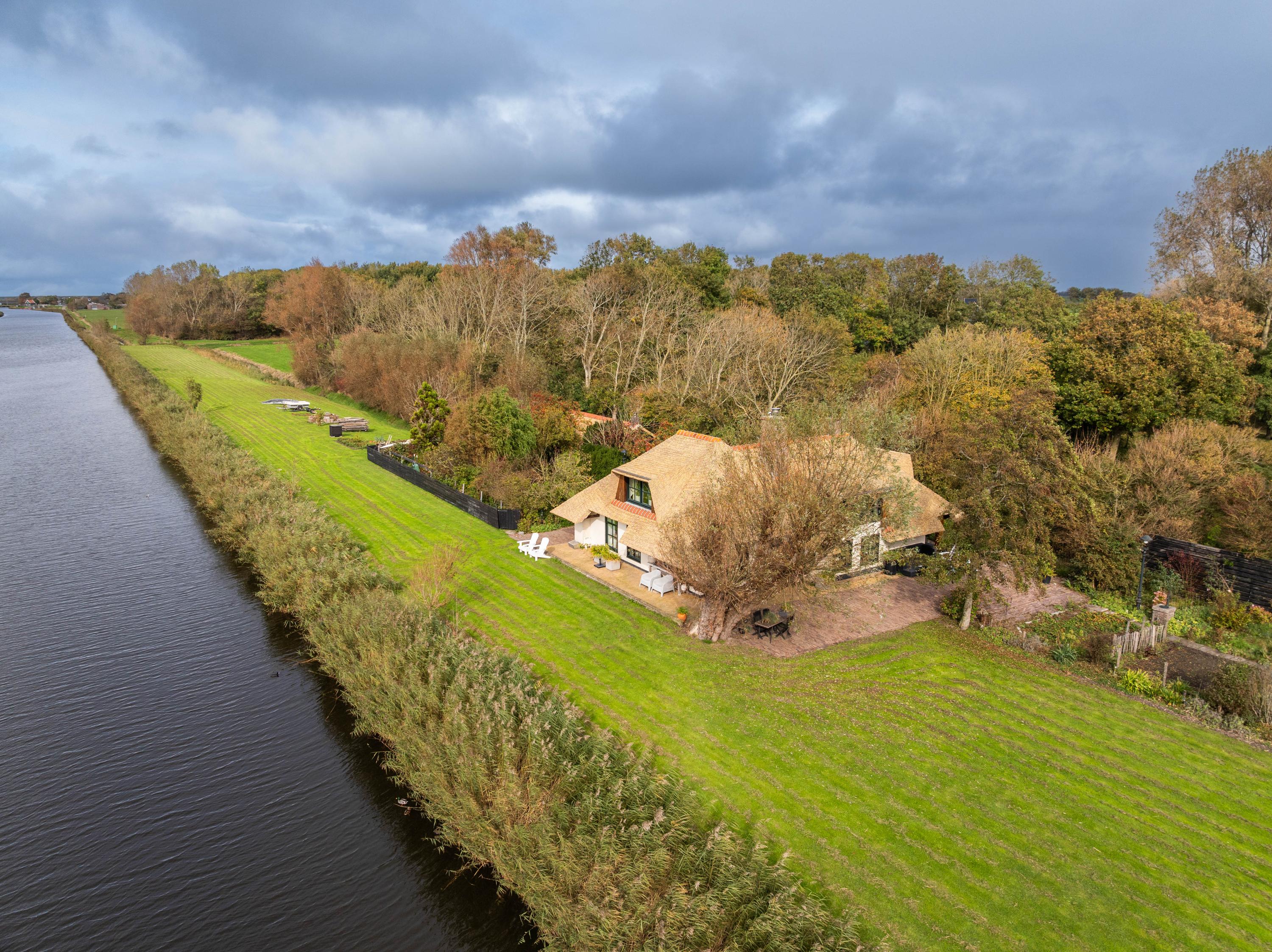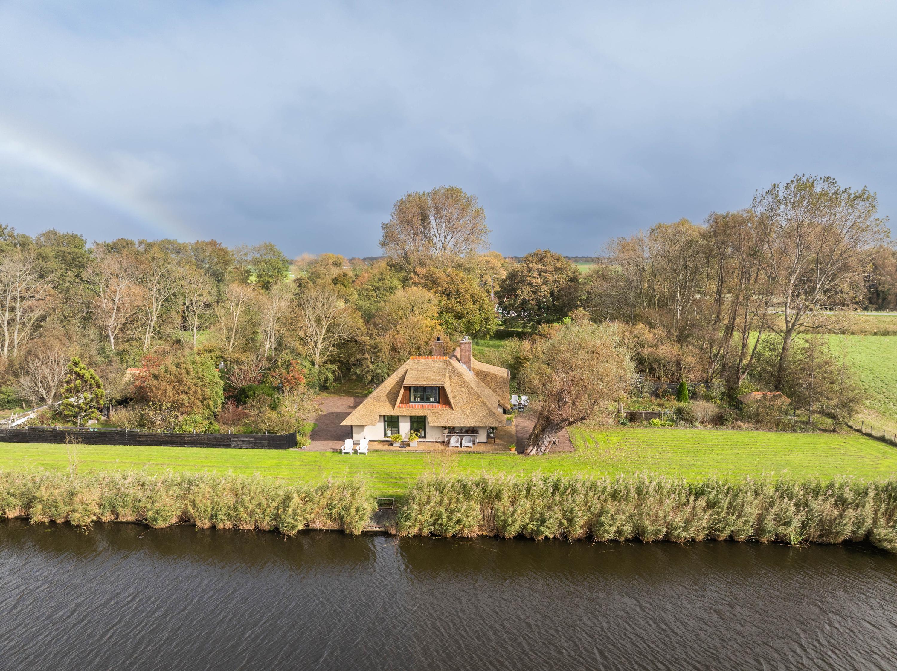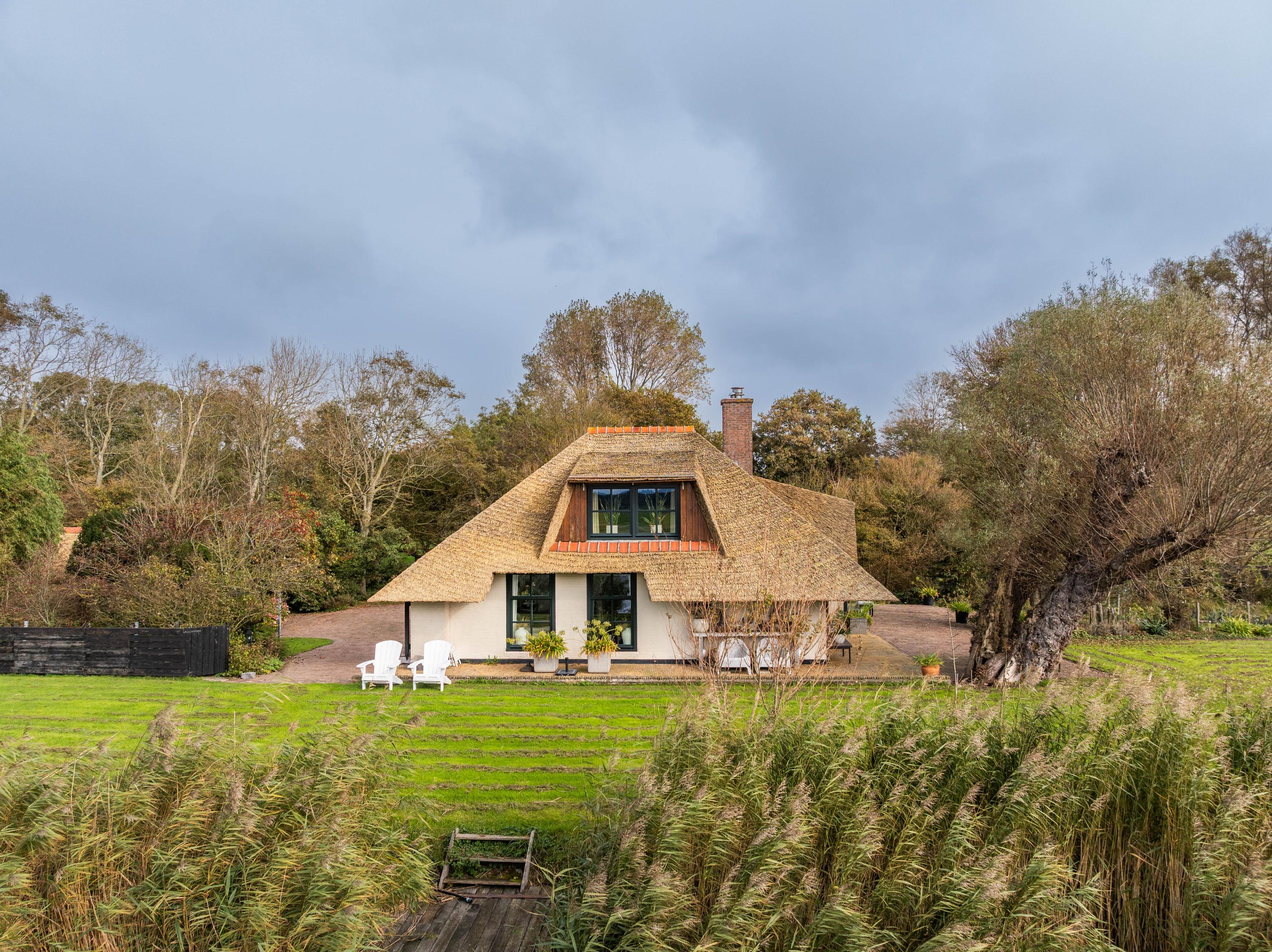 Der angelegte Garten rahmt ein separates Gästehaus mit Holzofen, offener Küche, Schlafzimmer und eigenem Duschbad ein und bietet so Flexibilität für Gäste oder als privaten Rückzugsort. Mehrere Terrassen, Obstbäume und ein eigener Bootssteg laden zum Innehalten und Genießen ein—so erleben Sie die Villa Warmenhuizen als Rückzugsort für Menschen, die kompromisslose Ruhe suchen.