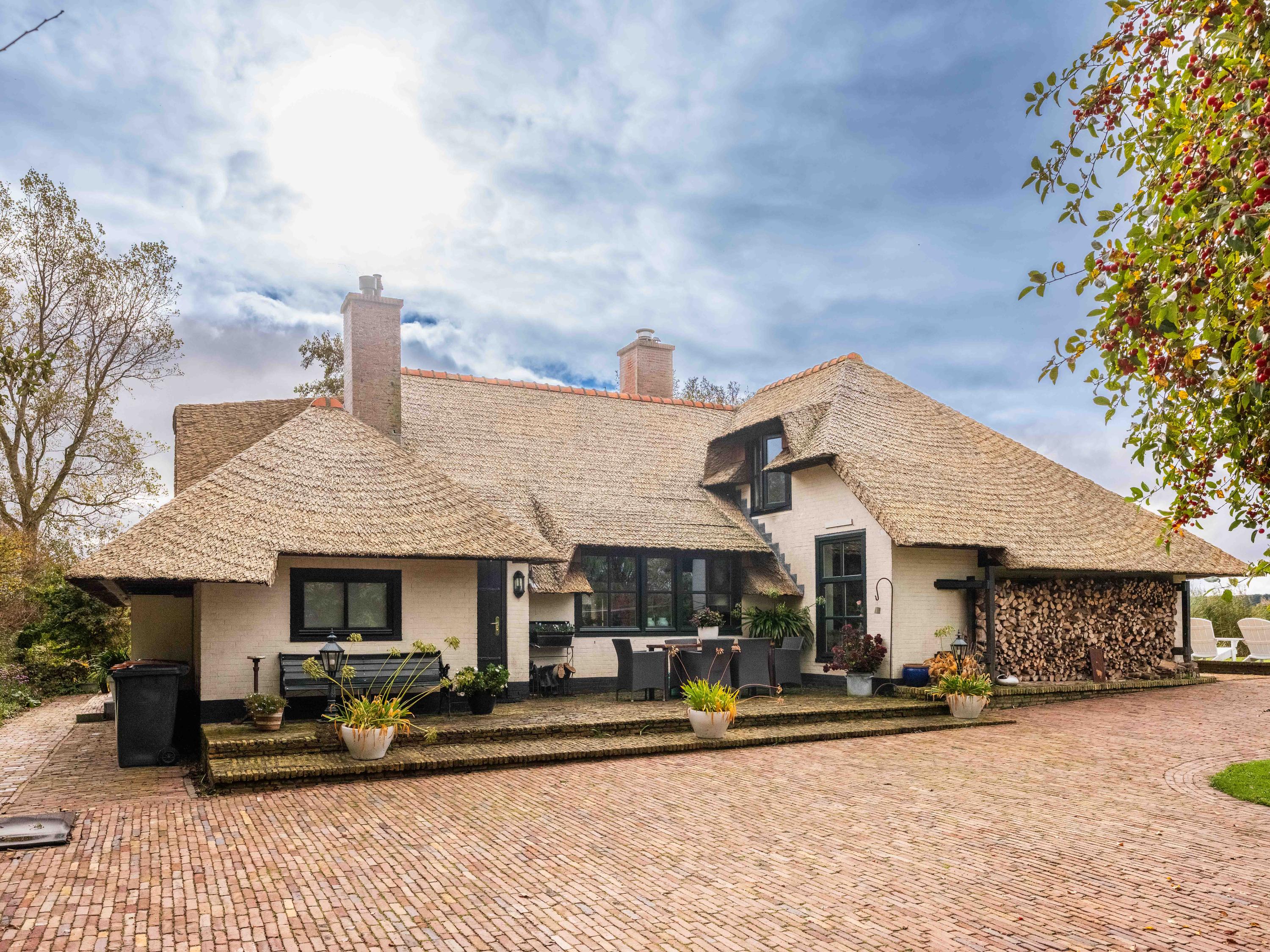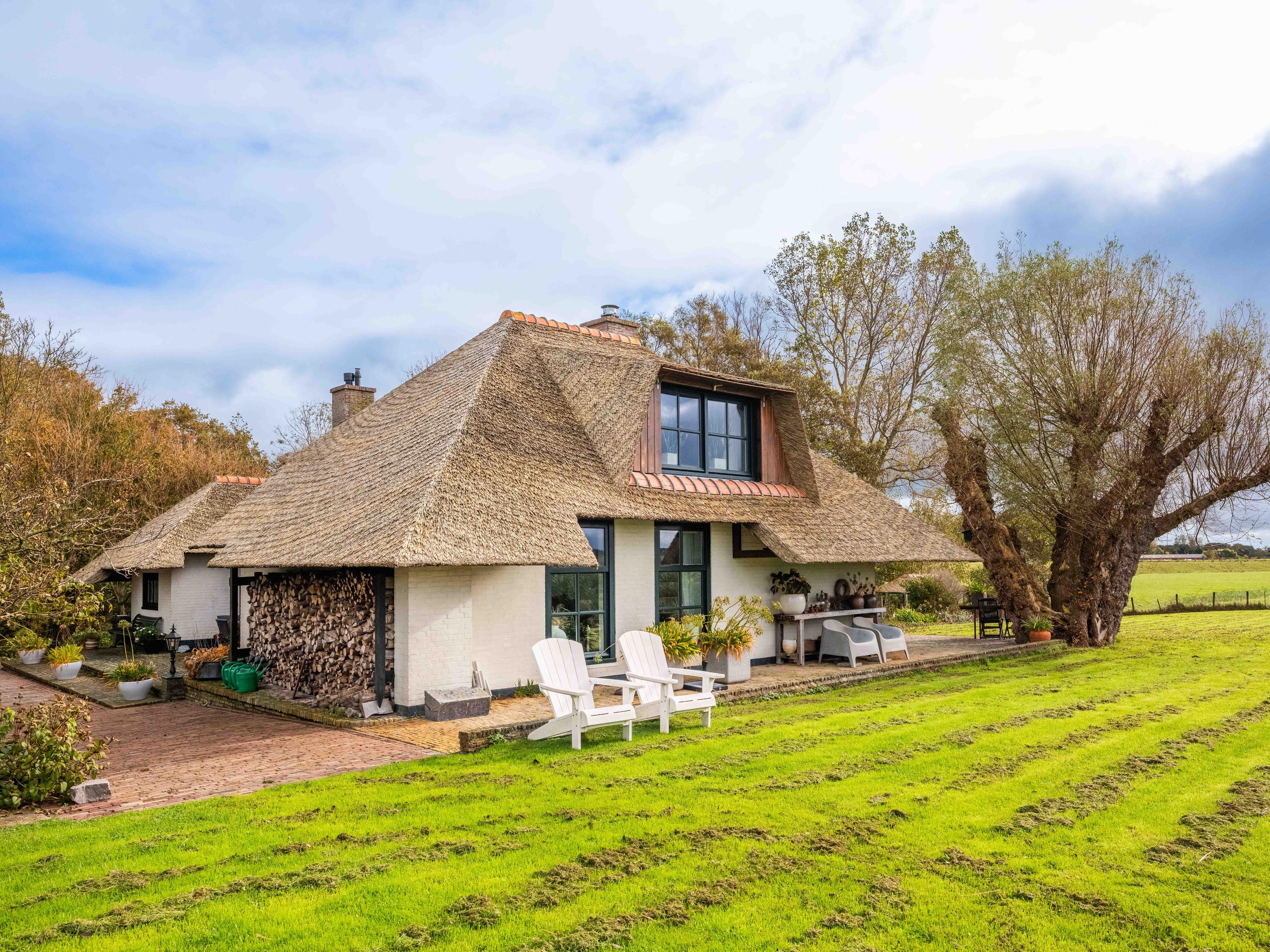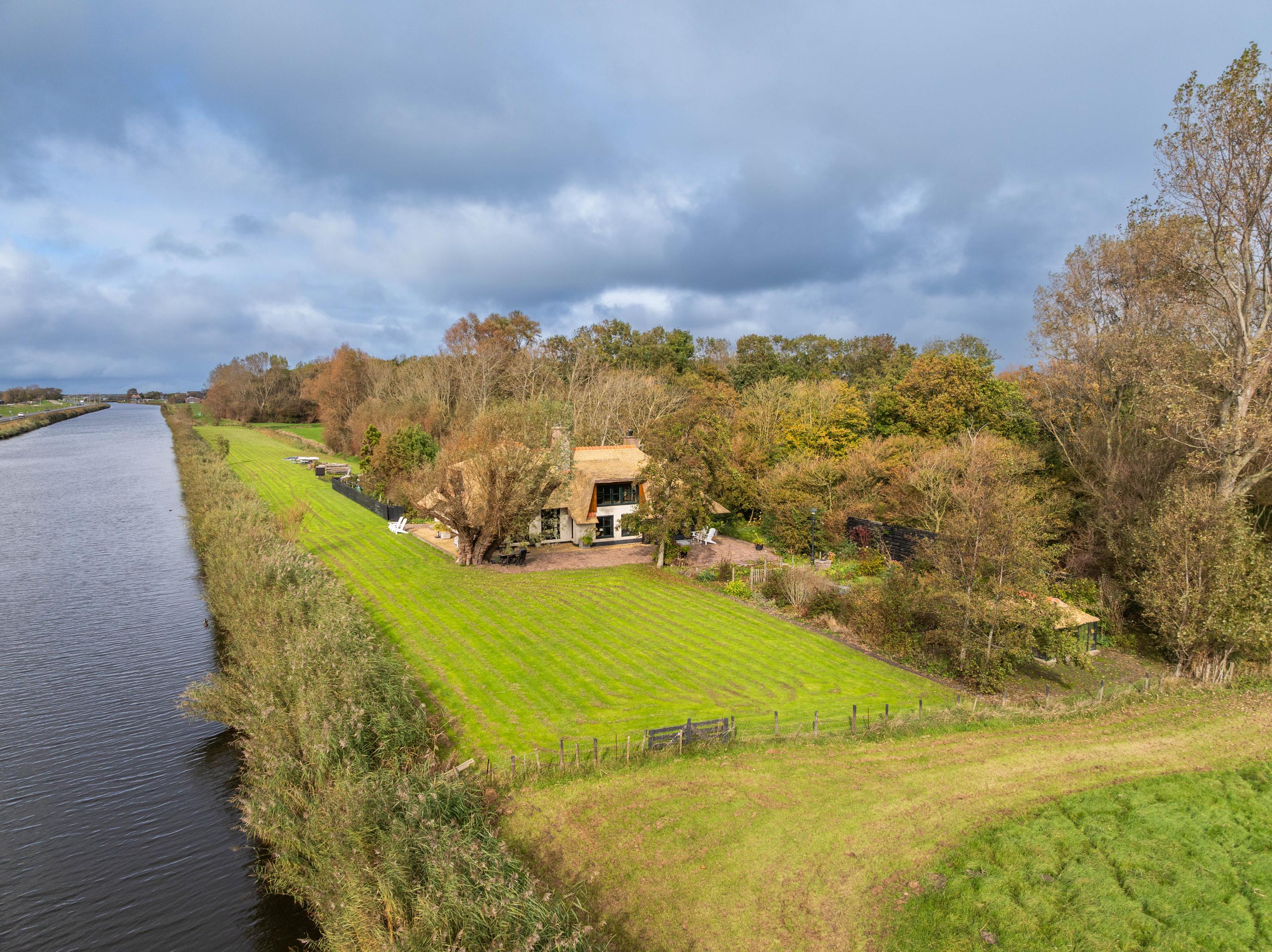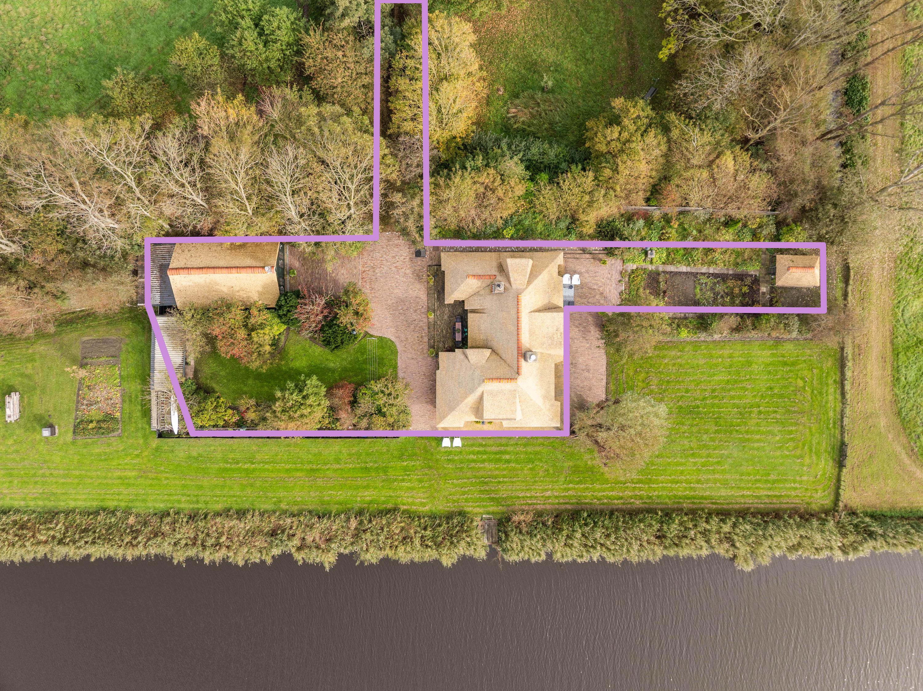 Der angelegte Garten rahmt ein separates Gästehaus mit Holzofen, offener Küche, Schlafzimmer und eigenem Duschbad ein und bietet so Flexibilität für Gäste oder als privaten Rückzugsort. Mehrere Terrassen, Obstbäume und ein eigener Bootssteg laden zum Innehalten und Genießen ein—so erleben Sie die Villa Warmenhuizen als Rückzugsort für Menschen, die kompromisslose Ruhe suchen.