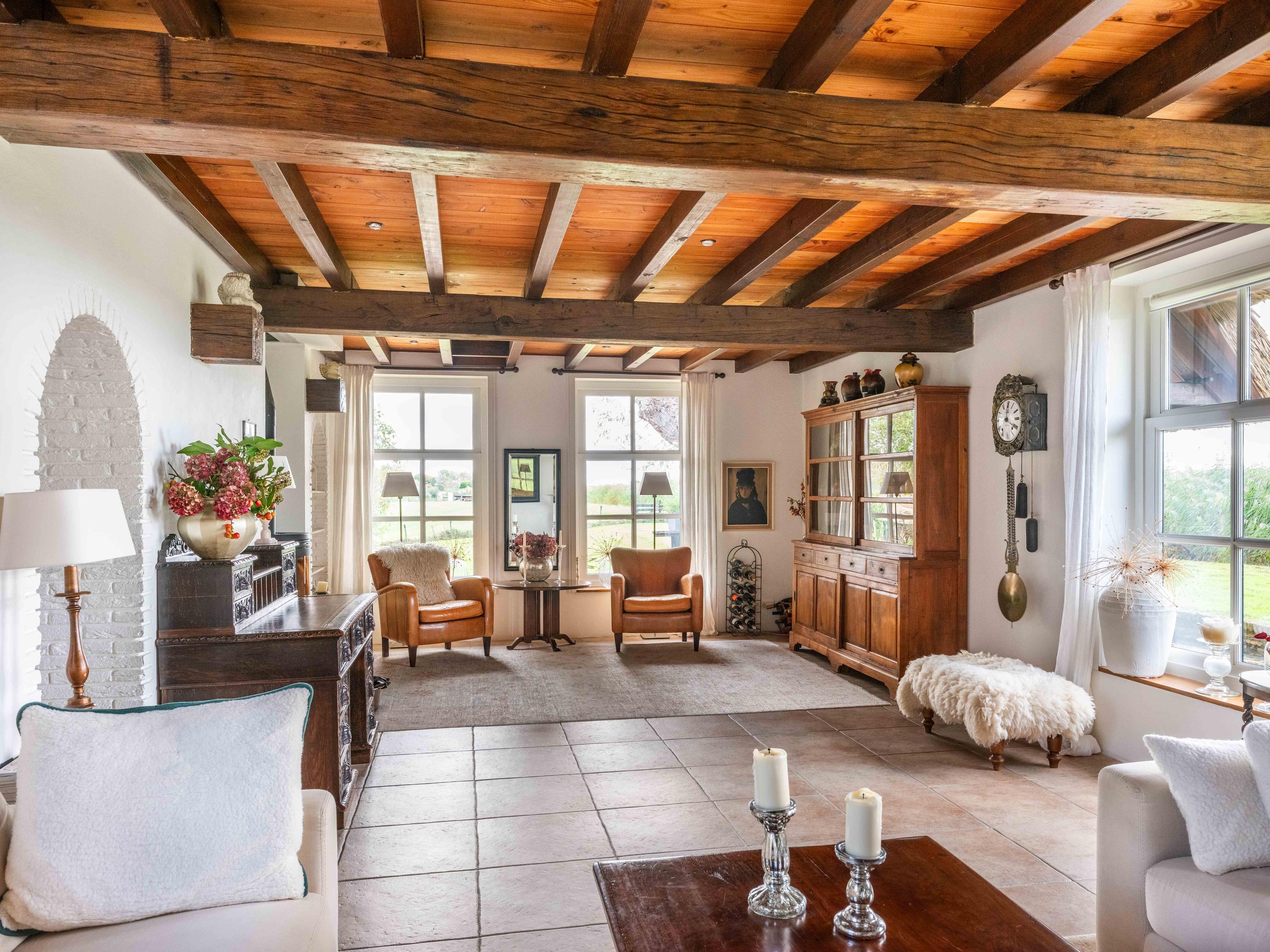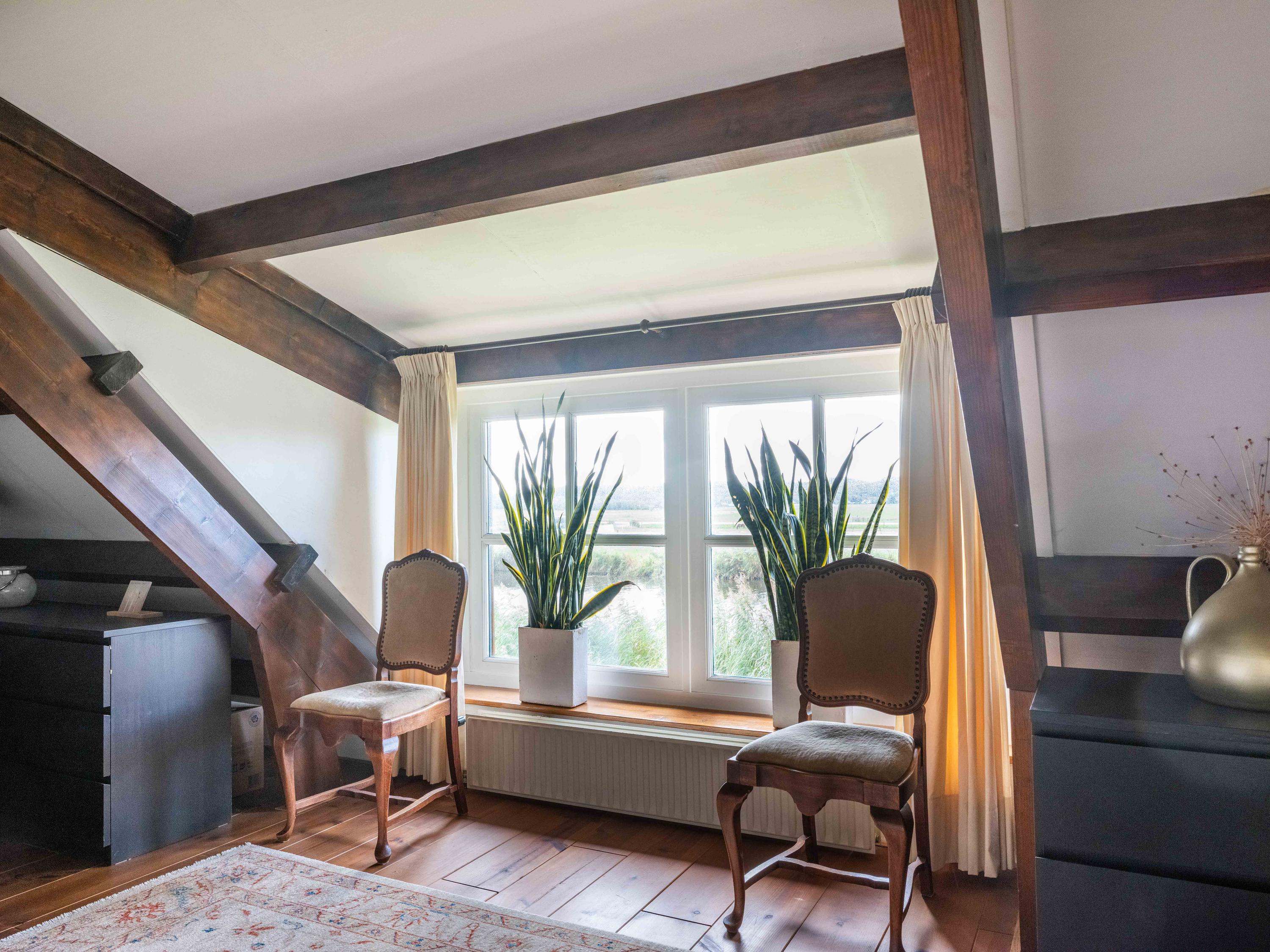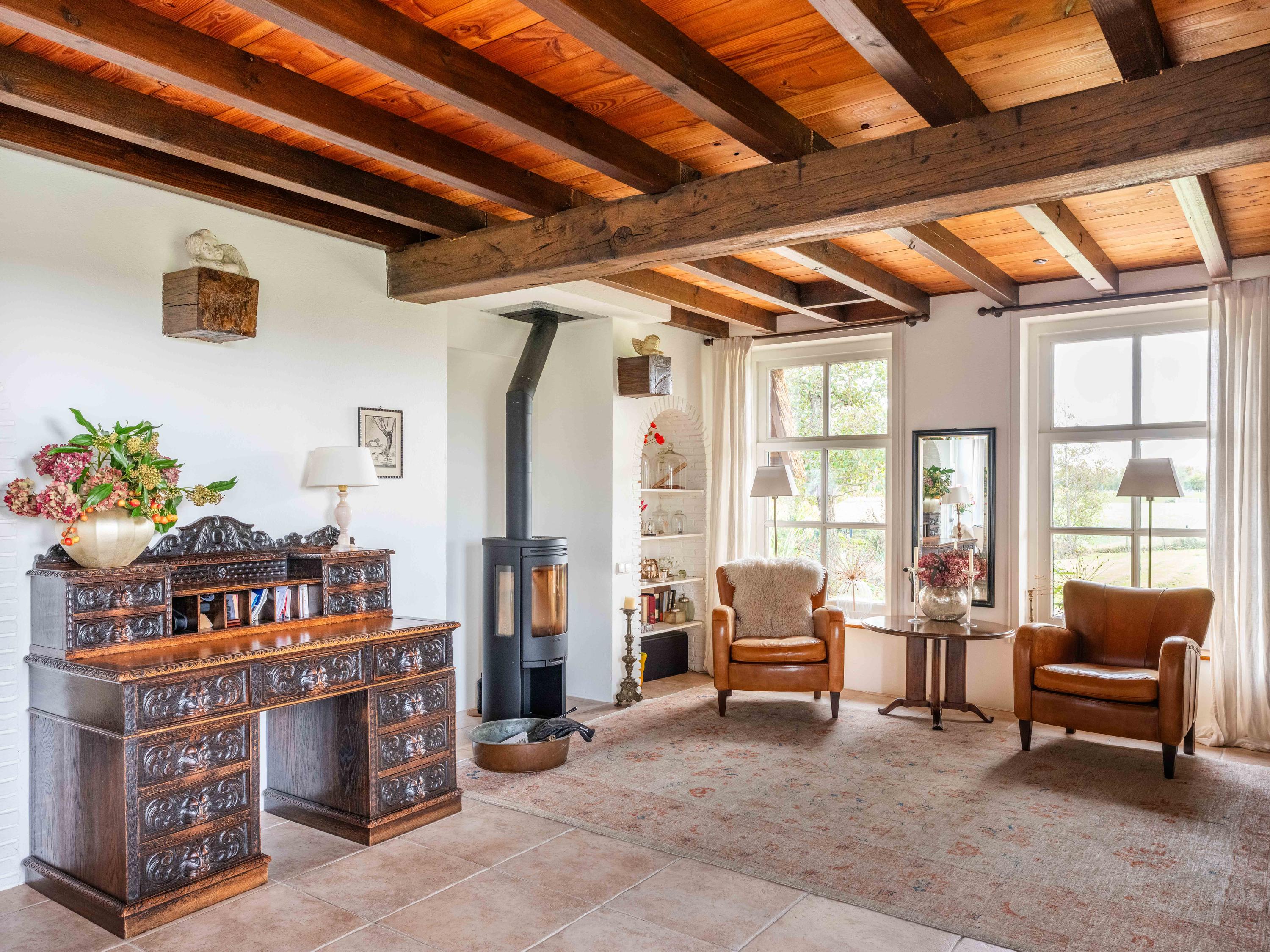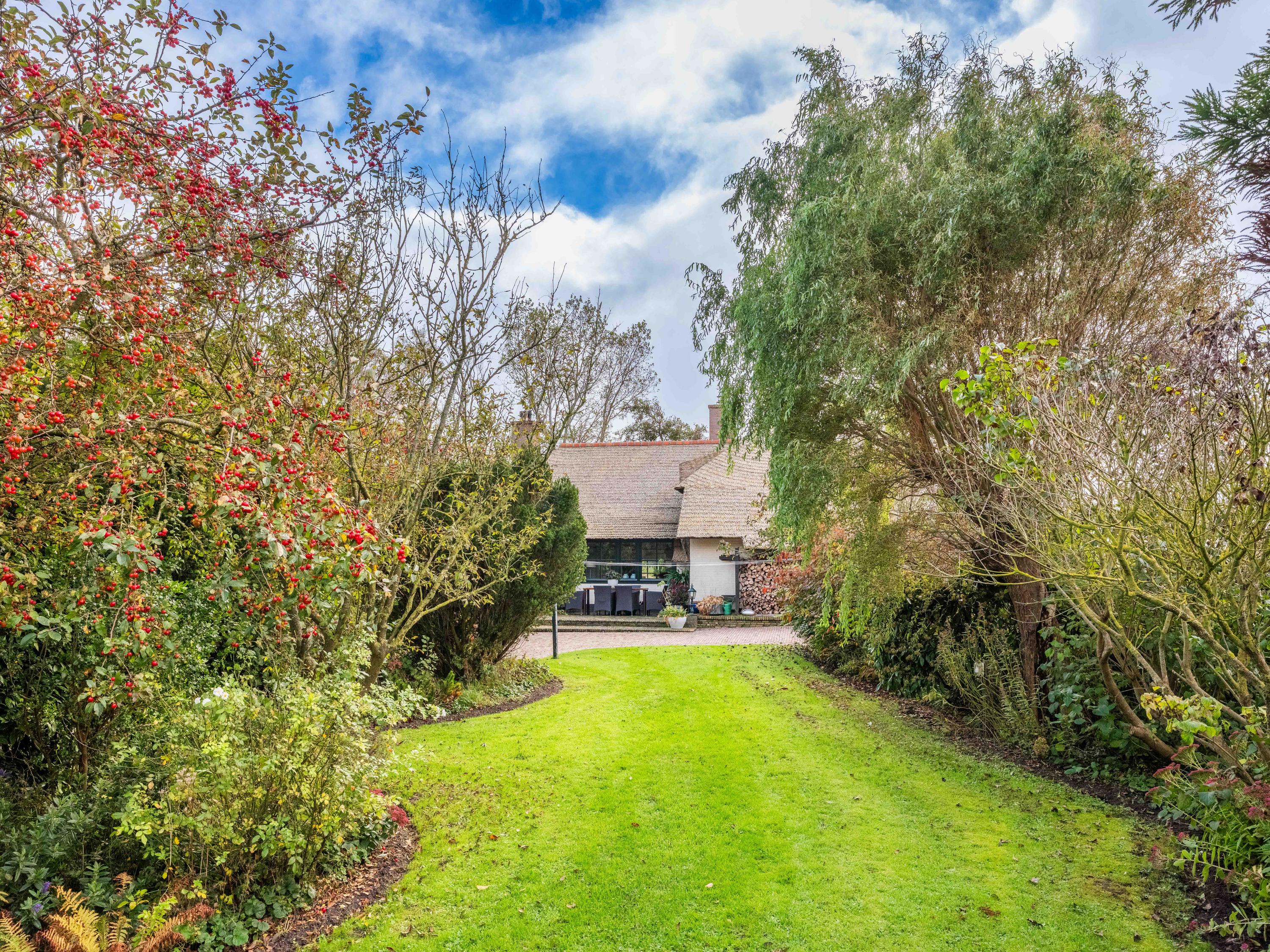 Der angelegte Garten rahmt ein separates Gästehaus mit Holzofen, offener Küche, Schlafzimmer und eigenem Duschbad ein und bietet so Flexibilität für Gäste oder als privaten Rückzugsort. Mehrere Terrassen, Obstbäume und ein eigener Bootssteg laden zum Innehalten und Genießen ein—so erleben Sie die Villa Warmenhuizen als Rückzugsort für Menschen, die kompromisslose Ruhe suchen.