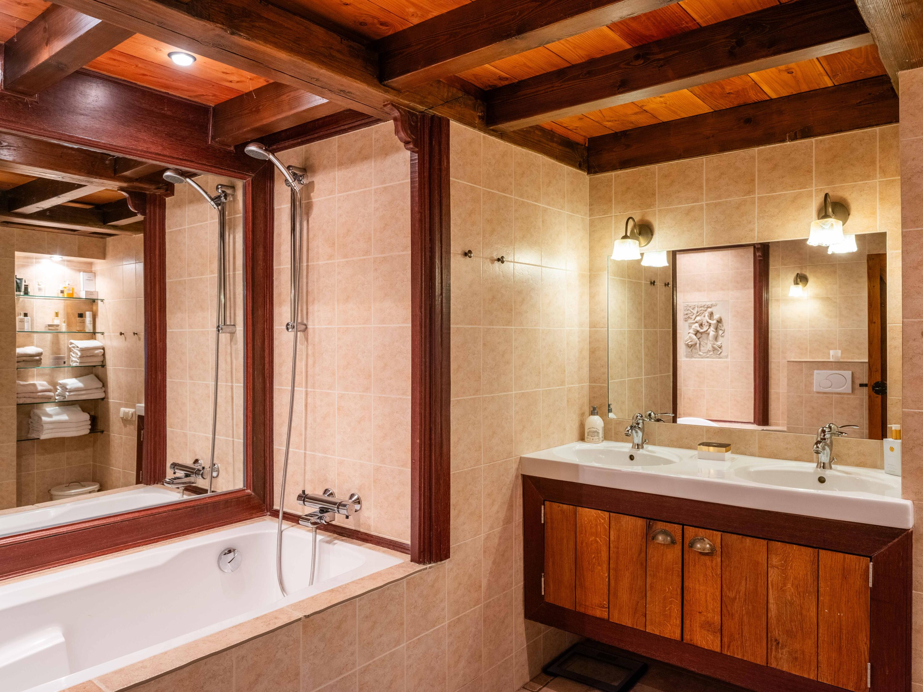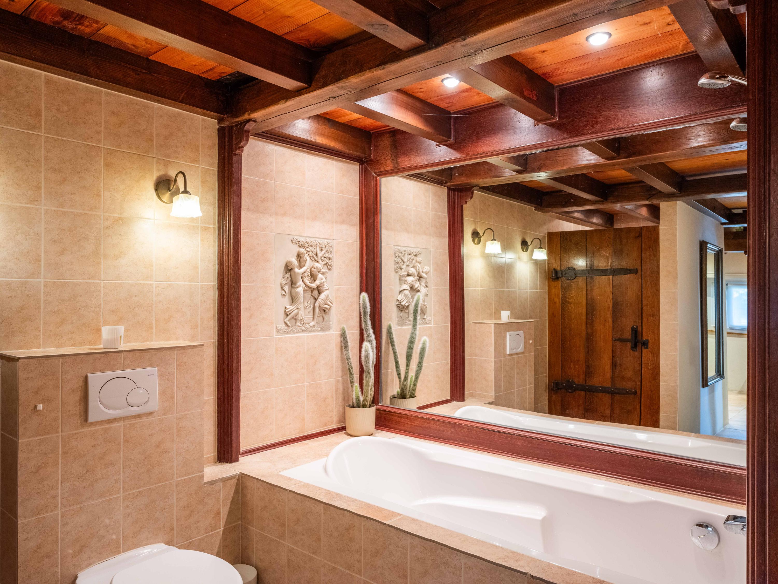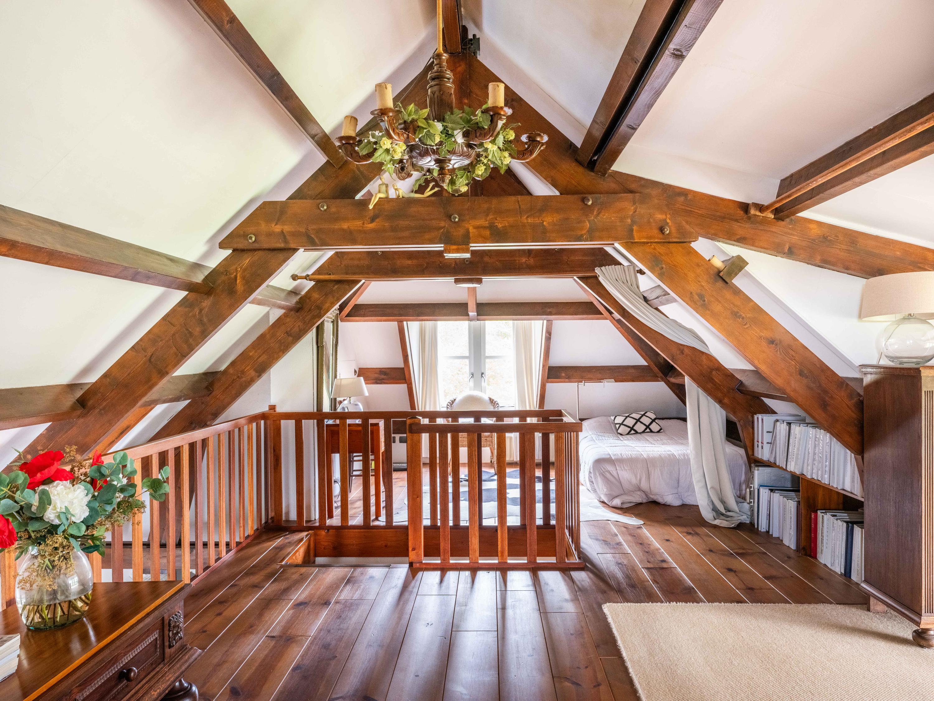 Das Erdgeschoss umfasst ein luxuriöses Badezimmer, einen praktischen Ankleideraum, einen separaten Keller sowie eine durchdacht integrierte Arbeits- und Gästebereich auf der Galerie. Das Hauptschlafzimmer bietet Panoramablicke auf Gärten und Wiesen, dank bester Ausrichtung für Ruhe und Sonnenlicht.