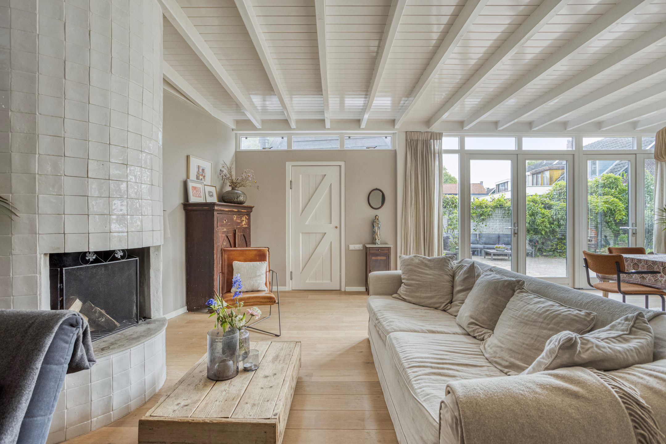 This beautiful villa has recently been almost completely renovated, modernized and insulated, whereby the original atmosphere and appearance from 1900 have been combined with the comfort and finishing of today. The living room, dining room and kitchen form the heart of the house. Here you can have breakfast, cook and dine with a large group and the fireplace is a wonderful place in the winter. The very spacious and fully walled garden offers not only privacy but also extra safety: small children can play here carefree. From spring onwards, the garden doors can be opened, so that the house and garden merge into each other.