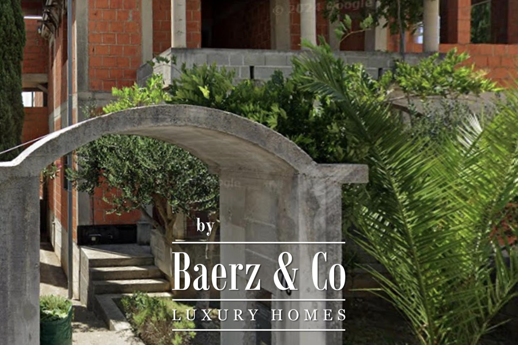 Das Untergeschoss bietet ein fertiggestelltes Einzimmerapartment von etwa 70 m², das sich zum angelegten und umzäunten Garten mit dem Schatten von acht ausgewachsenen Zypressen öffnet. Die verbleibenden 40 m² auf dieser Ebene bieten Potenzial für zusätzliche Unterkunft oder Lagerraum, mit separatem Zugang für maximale Flexibilität. Das erhöhte Erdgeschoss sowie das erste Obergeschoss, jeweils etwa 167 m², sind entweder für zwei getrennte Apartments pro Etage oder großzügige offene Wohnkonzepte vorgesehen, jeweils mit Meerblick ab dem ersten Geschoss. Das zweite Obergeschoss zeichnet sich durch ein 48 m² großes Studio mit privater Terrasse und Panoramablick aus.
