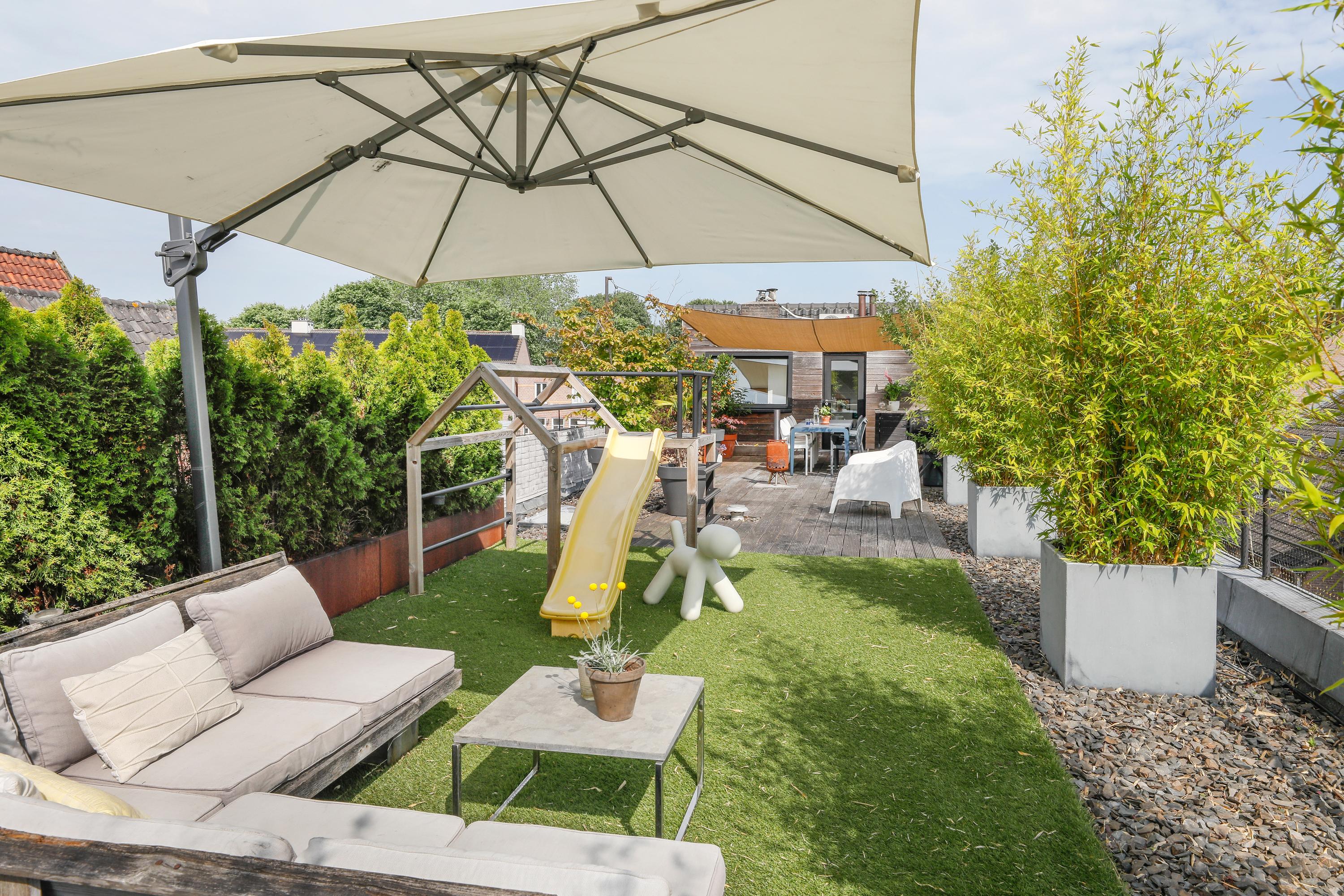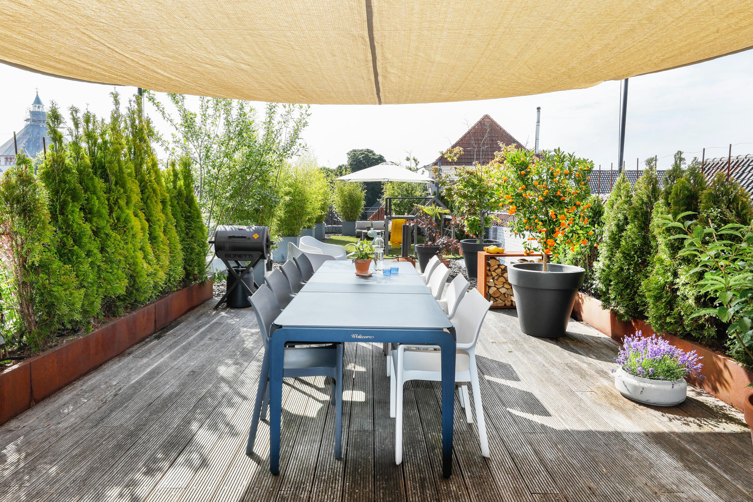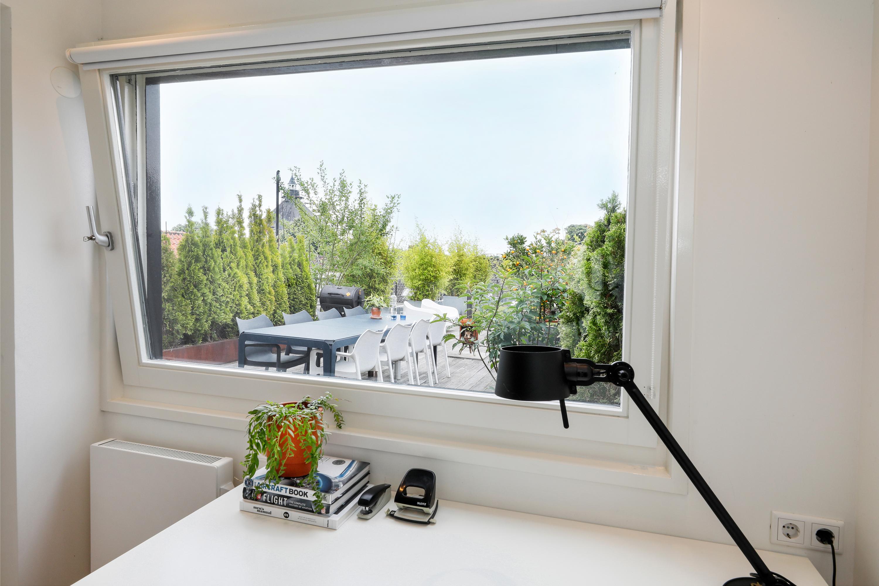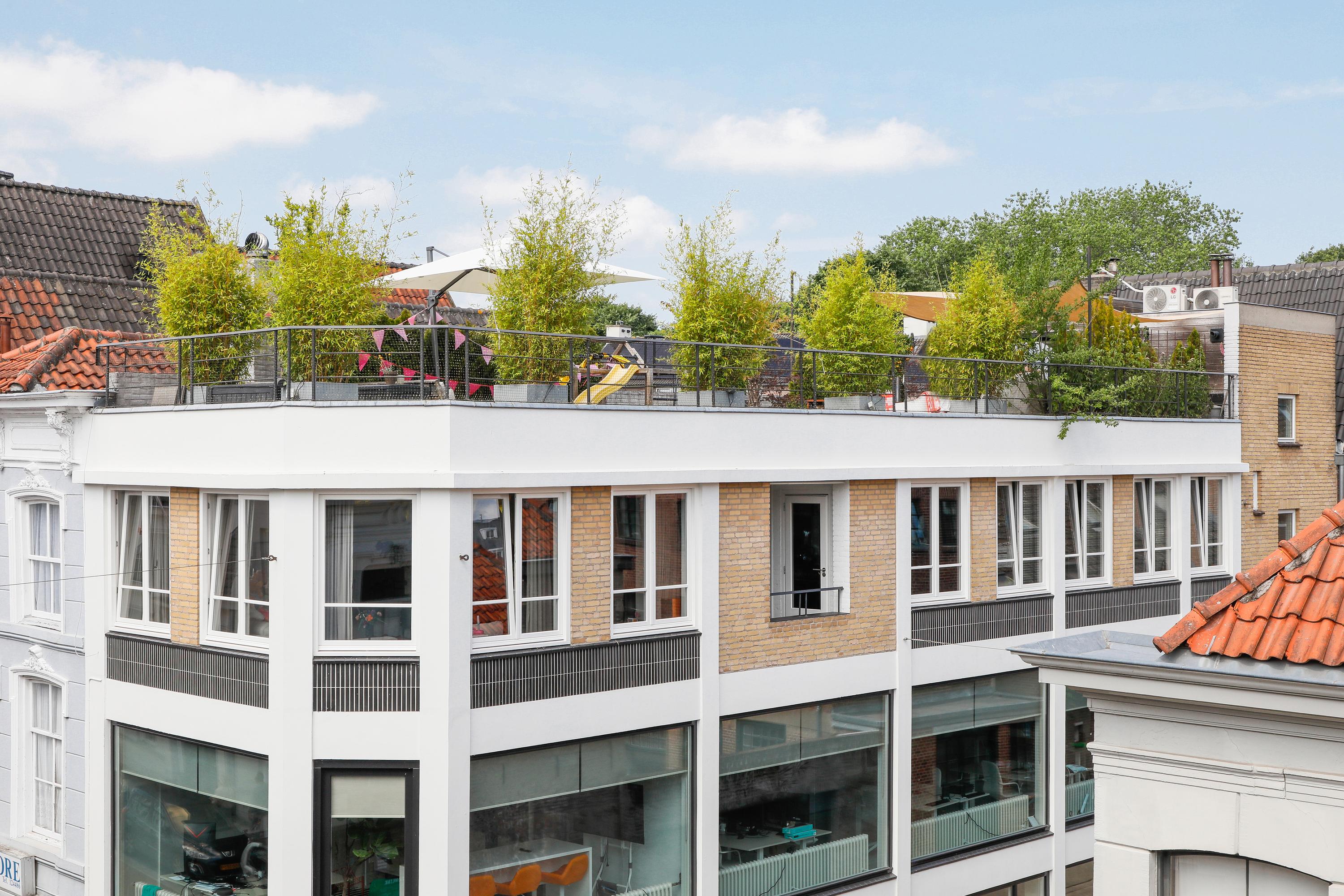 You've probably noticed this unique building while strolling along Vughterstraat. You've probably also gazed in amazement at this enormous roof terrace. On "the roof of the city," you'll find a roof garden of approximately 113 m². Not only from this terrace, but also from the apartment itself, there are expansive views and abundant natural light. In addition to the large living room with open-plan kitchen, there are four bedrooms and, of course, a luxurious bathroom. Stepping out of the front door, you enter your own hallway, which easily accommodates four bicycles. A fully equipped, tasteful, and spacious apartment, complete with that exceptional roof terrace.