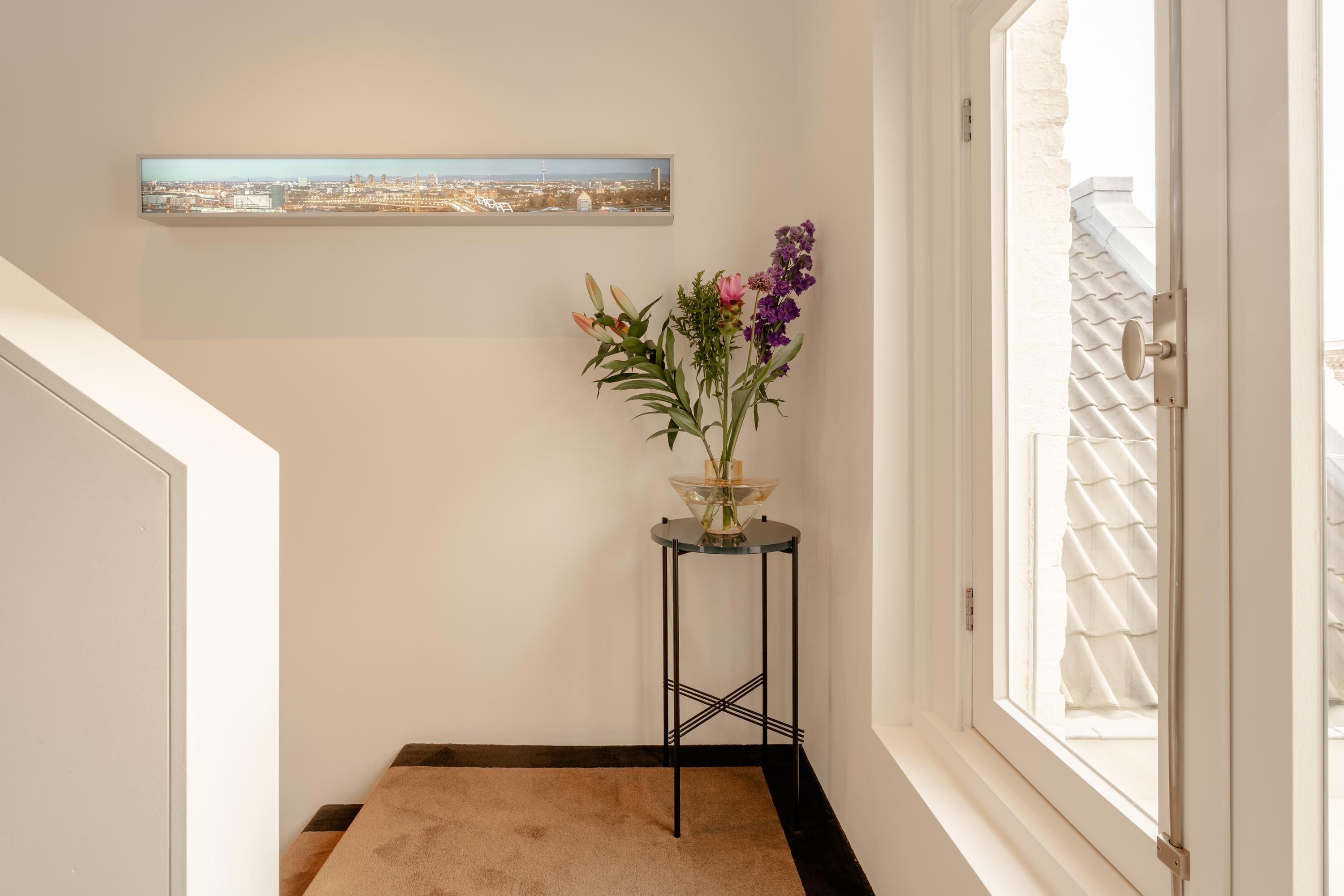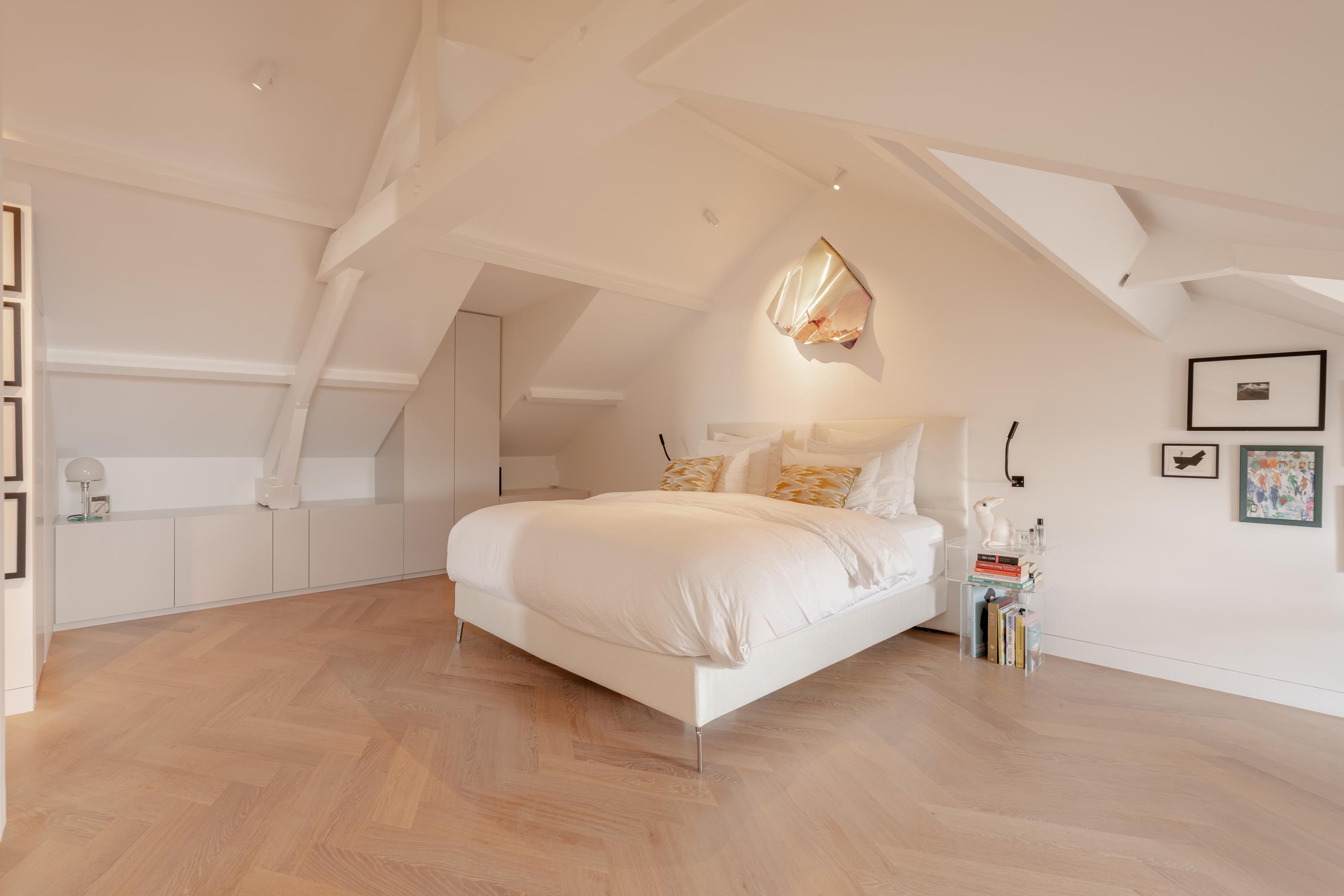 Thanks to the large windows, the space is filled with natural light and offers beautiful views over the characteristic rooftops of Oud-West, creating an open and serene living experience. The kitchen is equipped with high-end Siemens built-in appliances, an induction hob, Quooker tap, and a wine climate cabinet. Integrated air conditioning completes the comfort.