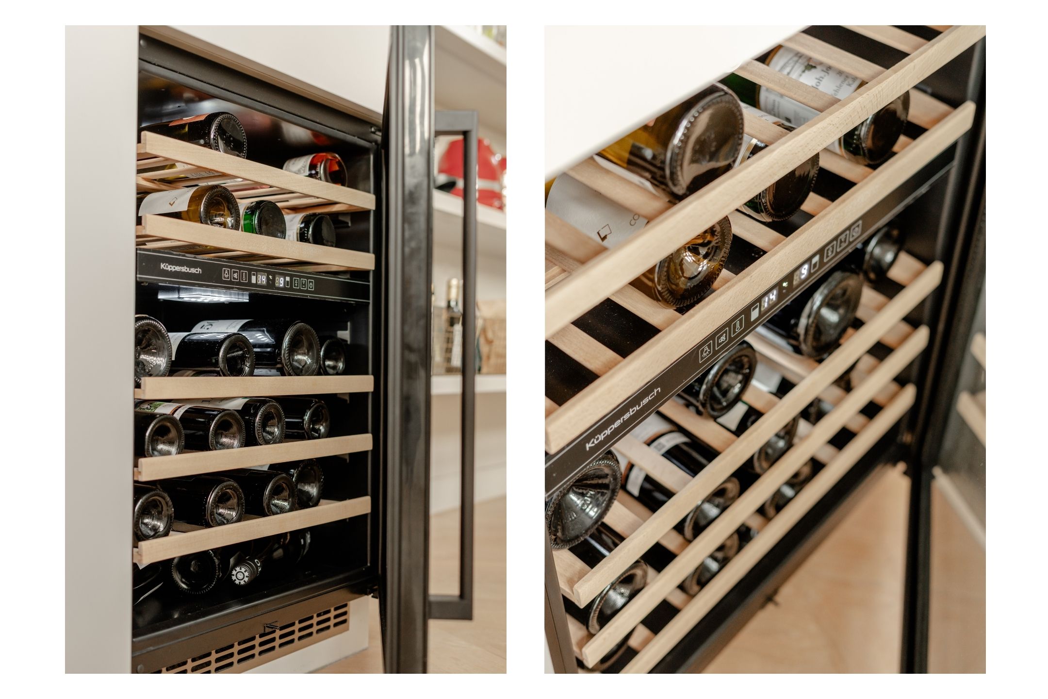 From the hallway, you also have access to a generous storage room and additional built-in cupboards, providing ample storage space. Sliding doors allow the kitchen to be separated from the hallway if desired.
