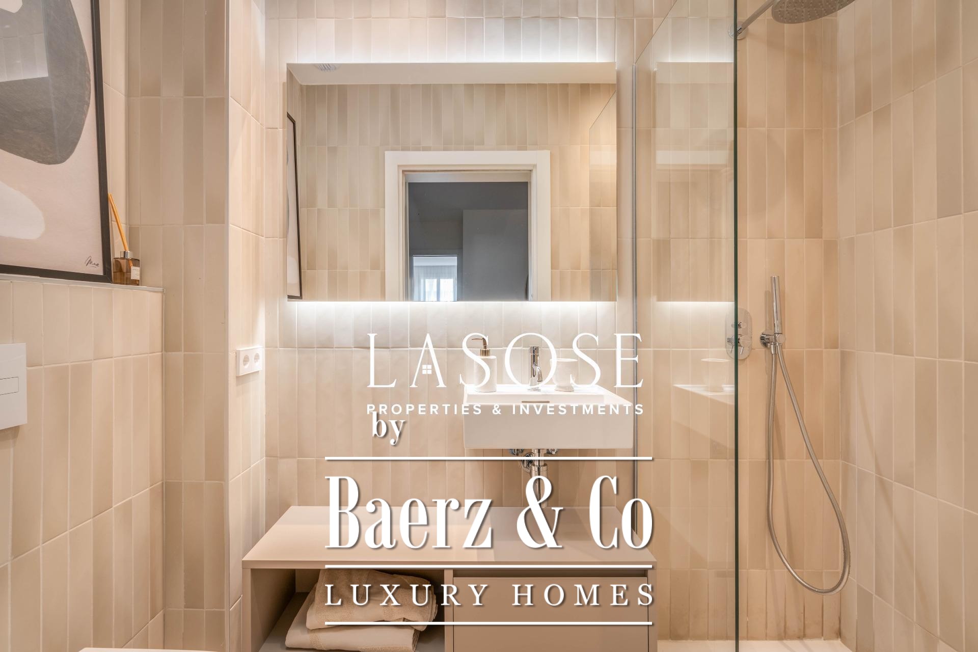 This particular residence offers 137 m² of living space, thoughtfully arranged with two bedrooms and three bathrooms. Balconies and a generous terrace connect interiors to the pulse of the city, while the building’s façade and communal areas reflect the elegance of classic Barcelona. Interior finishes, designed by Estudio Vilablanch, balance modernity with enduring style, featuring premium appliances, expansive wardrobes, heating, and a refined light-filled atmosphere.