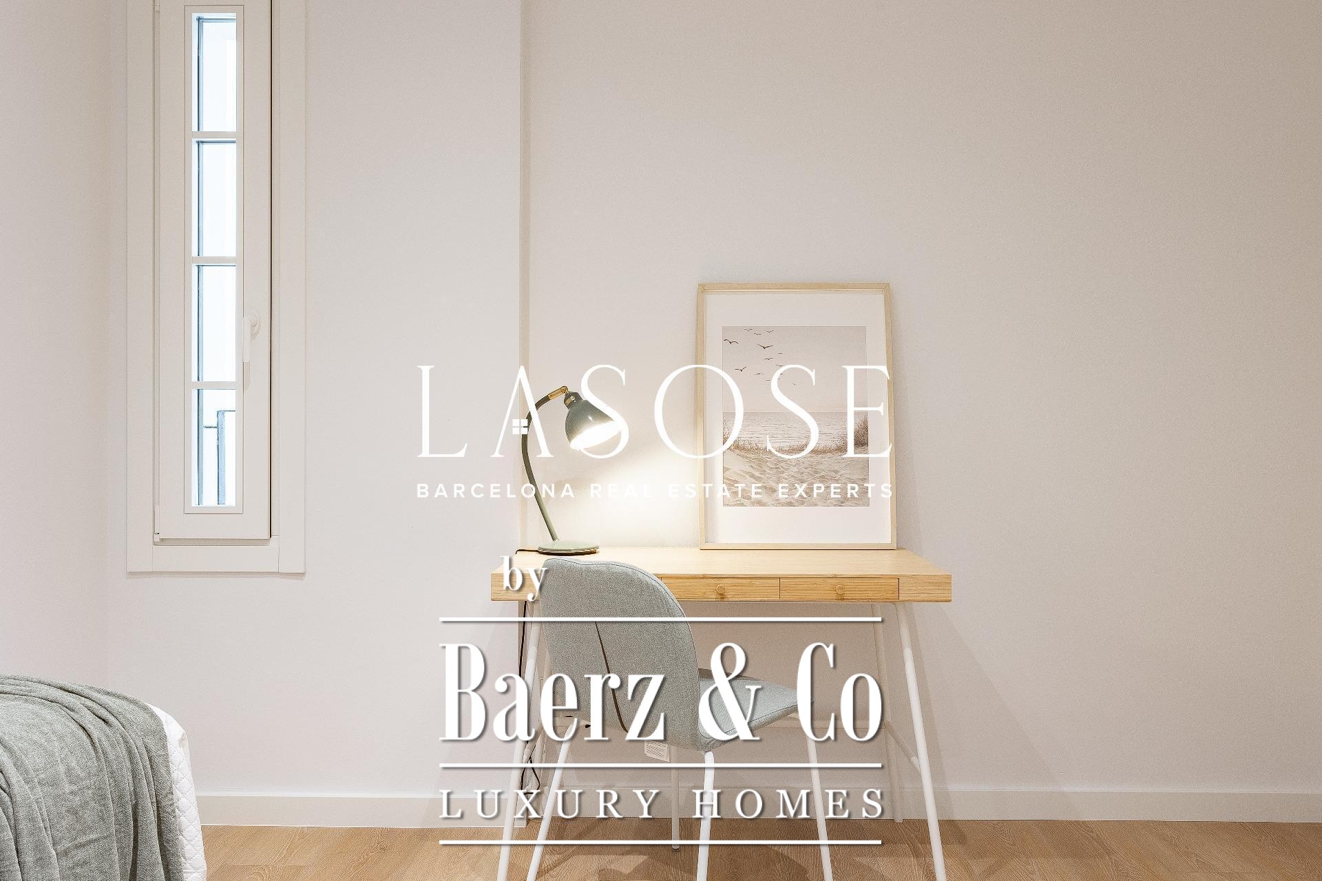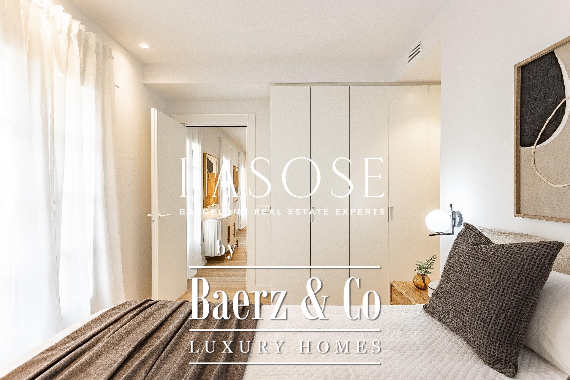 Apartment Barcelona offers an invitation to urban refinement in the heart of the city, nestled on Tallers street, just moments from Plaza Catalunya. This fully refurbished residence encompasses 108 m² of thoughtfully balanced living space, where three large bedrooms and two bathrooms flow seamlessly with open, light-filled interiors. The design is defined by understated contemporary lines and a functional layout, complemented by the preservation of original architectural features that echo the building’s heritage.