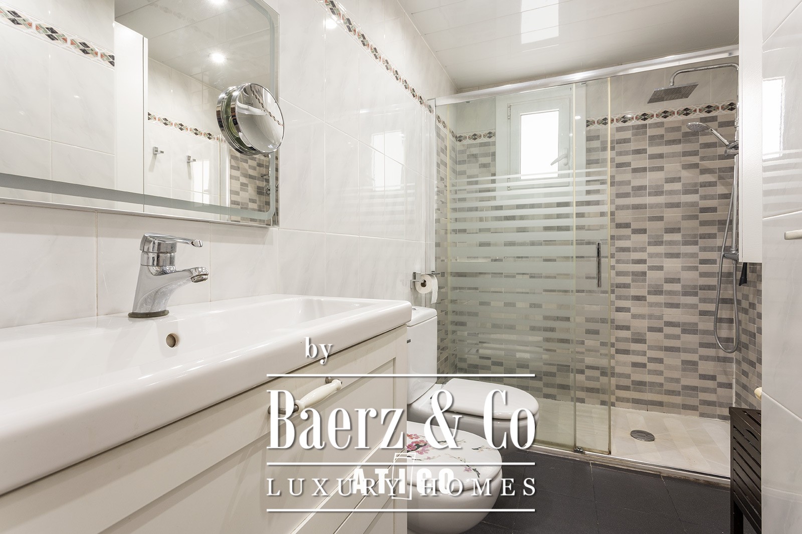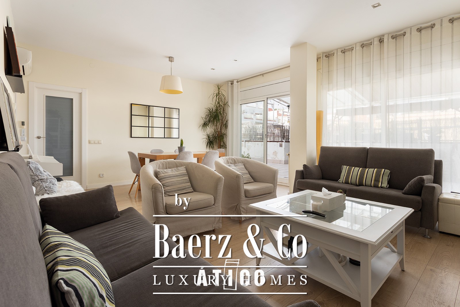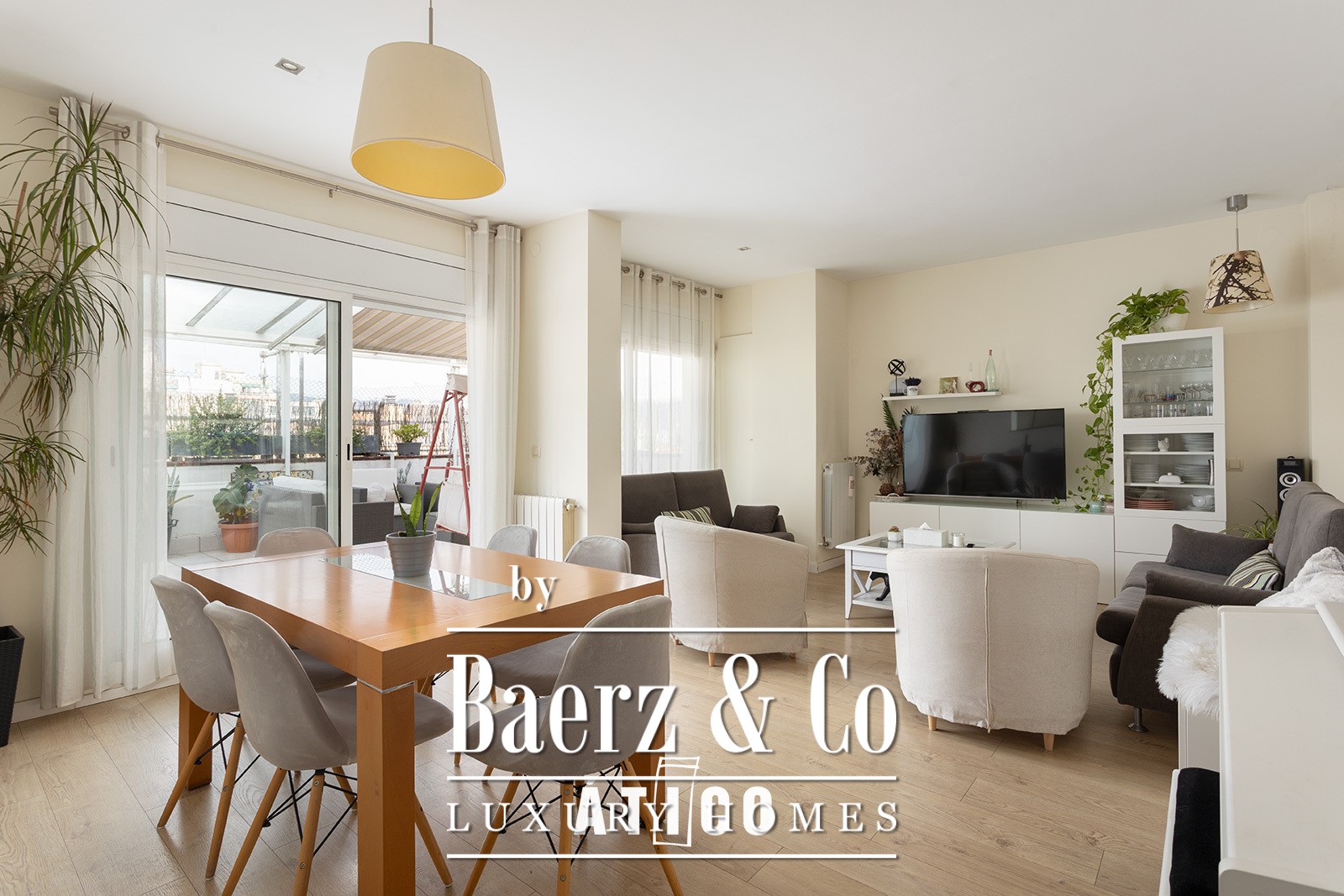 This penthouse, located in the Guinardó neighborhood (Barcelona), offers a balanced combination of spaciousness, light, and tranquility. The home has 85 square meters of interior space and a 60-square-meter private terrace, providing a privileged outdoor space for enjoying the sun and unobstructed views of the city. The apartment features three spacious and bright bedrooms, one of which has a walk-in closet, adding functionality and comfort to the layout. The large living-dining room opens directly onto the terrace, creating a visual and spatial continuity that amplifies the feeling of spaciousness and light. All rooms are exterior-facing, ensuring excellent ventilation and natural light throughout the day. The home is very well maintained, with pleasant spaces, carefully selected materials, and an optimal overall condition. It has air conditioning and heating, providing thermal comfort throughout the season.