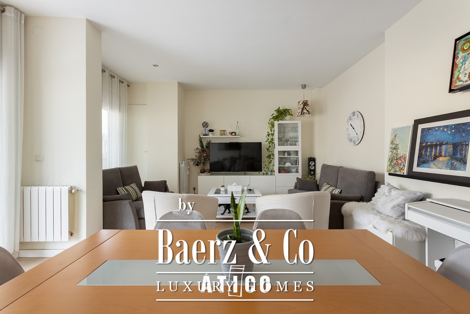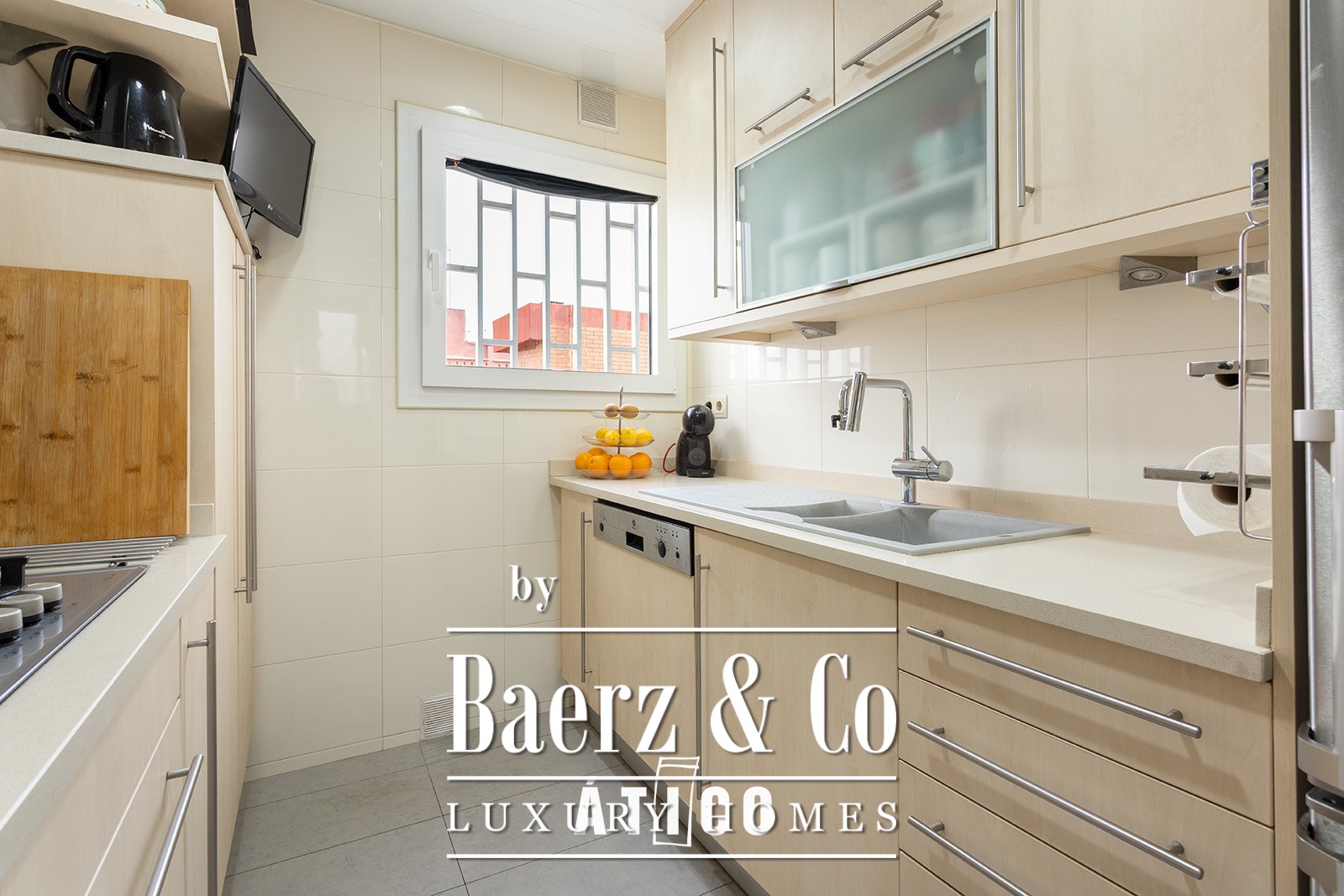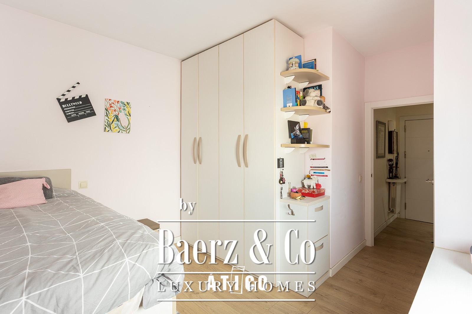This penthouse, located in the Guinardó neighborhood (Barcelona), offers a balanced combination of spaciousness, light, and tranquility. The home has 85 square meters of interior space and a 60-square-meter private terrace, providing a privileged outdoor space for enjoying the sun and unobstructed views of the city. The apartment features three spacious and bright bedrooms, one of which has a walk-in closet, adding functionality and comfort to the layout. The large living-dining room opens directly onto the terrace, creating a visual and spatial continuity that amplifies the feeling of spaciousness and light. All rooms are exterior-facing, ensuring excellent ventilation and natural light throughout the day. The home is very well maintained, with pleasant spaces, carefully selected materials, and an optimal overall condition. It has air conditioning and heating, providing thermal comfort throughout the season.