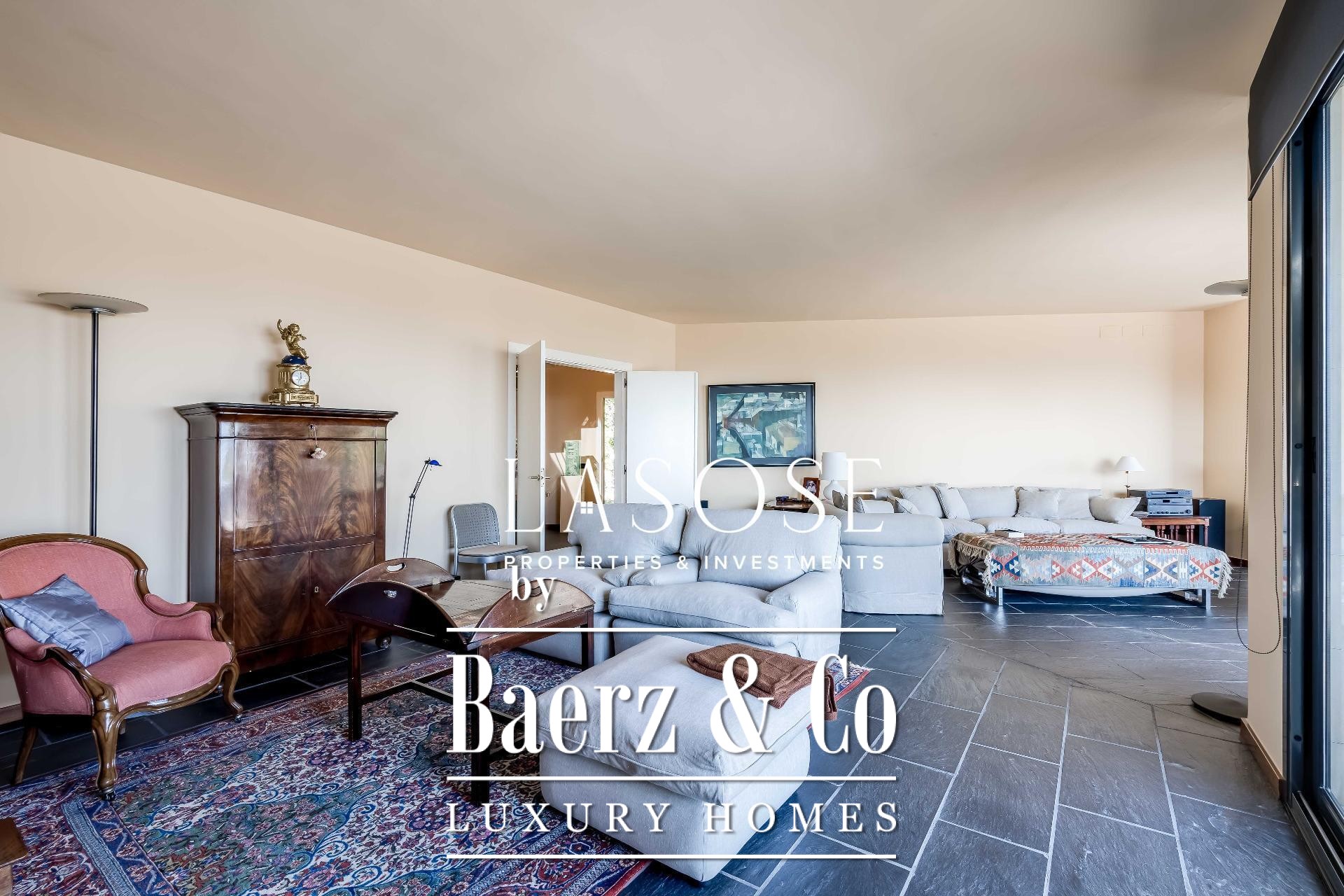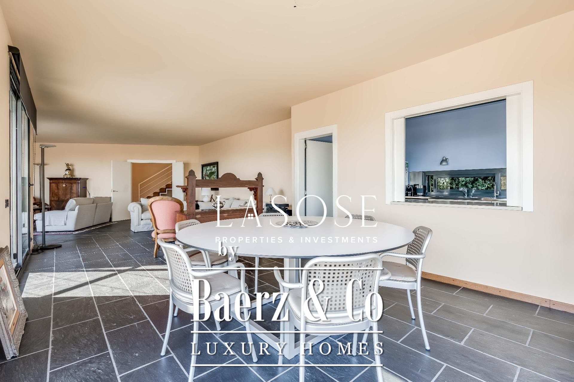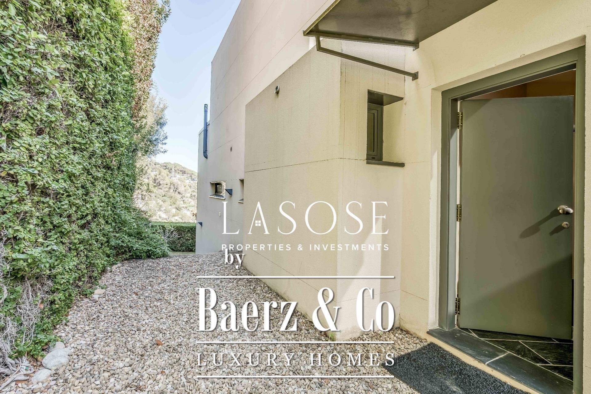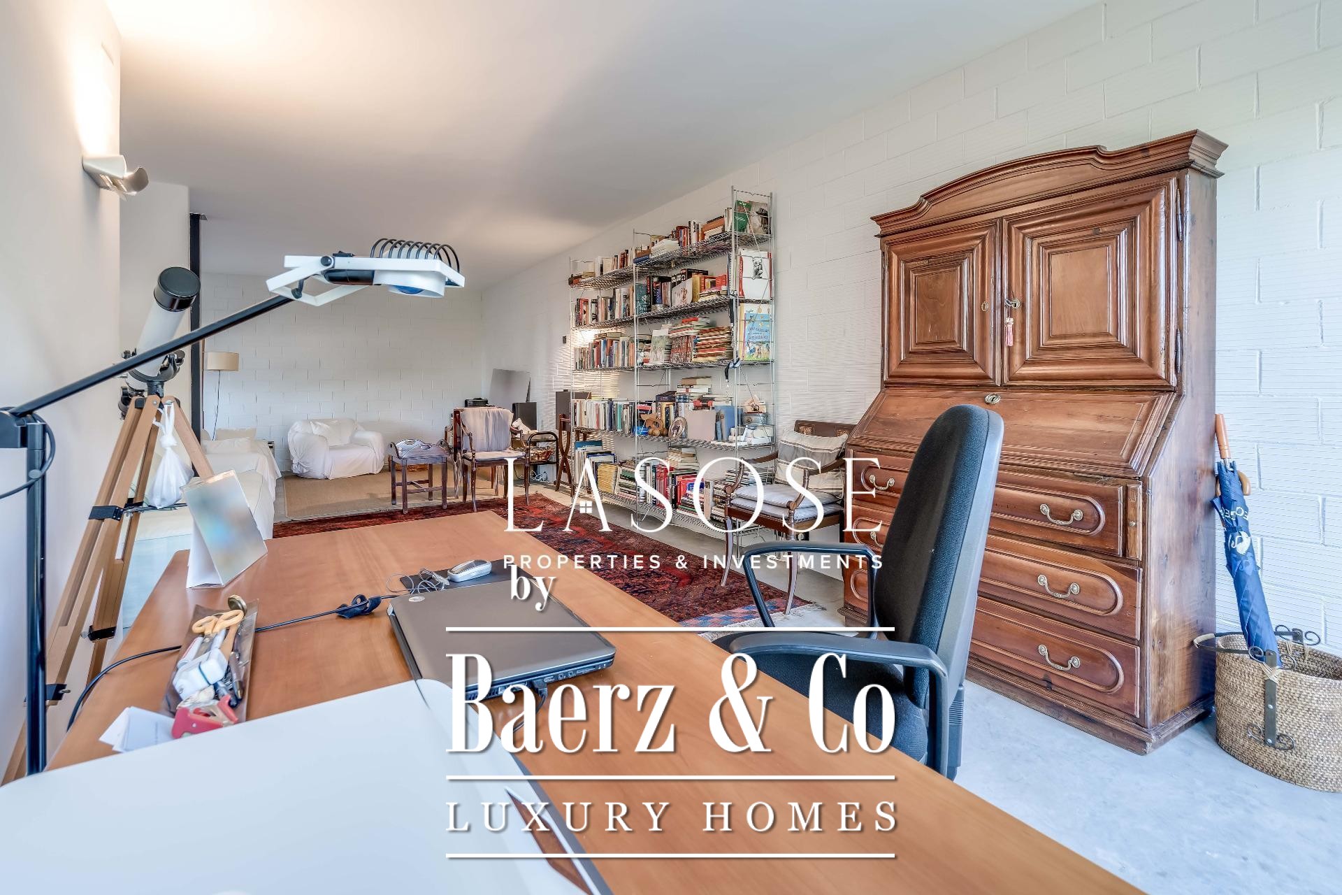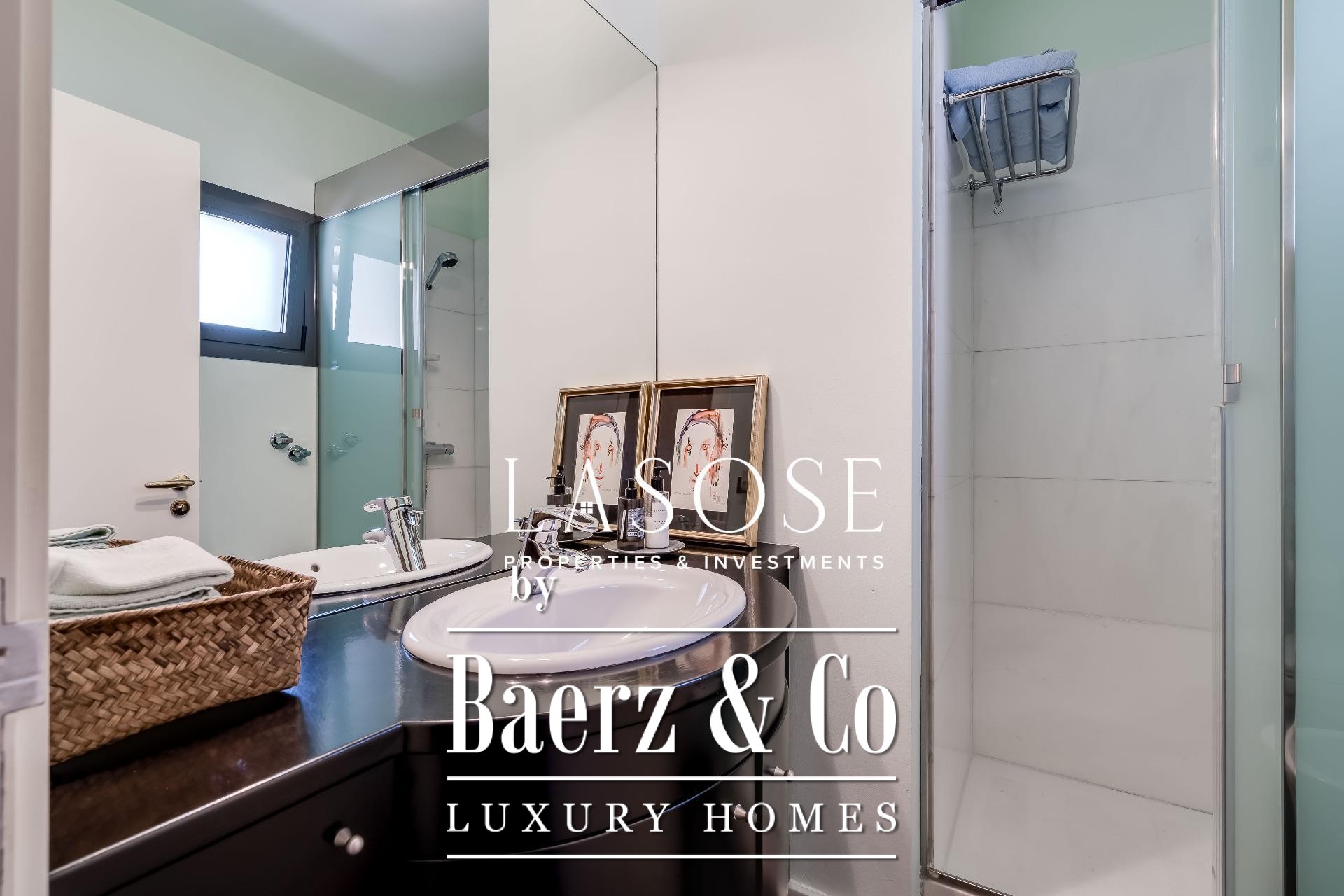 This extraordinary contemporary design house in Vallvidrera offers spectacular panoramic views of Barcelona and is located within walking distance of the city center and Sarriá via the funicular.. . Upon entering the main floor, you will be greeted by a spacious entrance hall leading to an impressive living-dining room with access to a 90 m² terrace offering unobstructed panoramic views.. . The independent kitchen is fully equipped and has a pantry and a laundry area with separate entrance. . . Adjacent to the living room, you will find a bedroom with bathroom, which is currently used as a living room, but can be converted into an additional bedroom. Slate underfloor heating. In addition, from inside the house, there is access to the garage with capacity for two cars.. . Upstairs, the sleeping area houses two spacious bedrooms with a generous dressing room and a full bathroom. Large windows flood this area with natural light and offer unparalleled views of the city of Barcelona. Underfloor parquet flooring.. . Descending to the lower floor, you will discover a 115 m² summer apartment with dressing room and full bathroom, with independent access.. . From here, you will enjoy direct access to the garden area, swimming pool, machine room and a small storage room.. . This magnificent residence