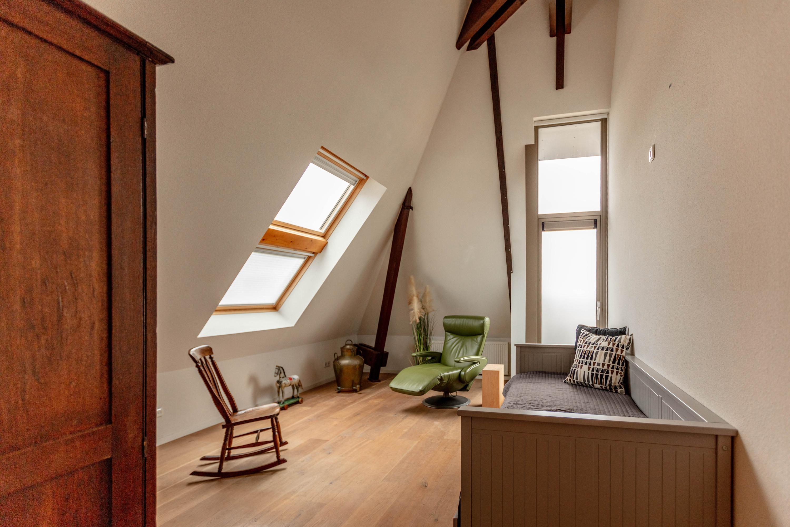 Deze kamer beschikt over een dakvenster en toegang tot een eigen balkon.