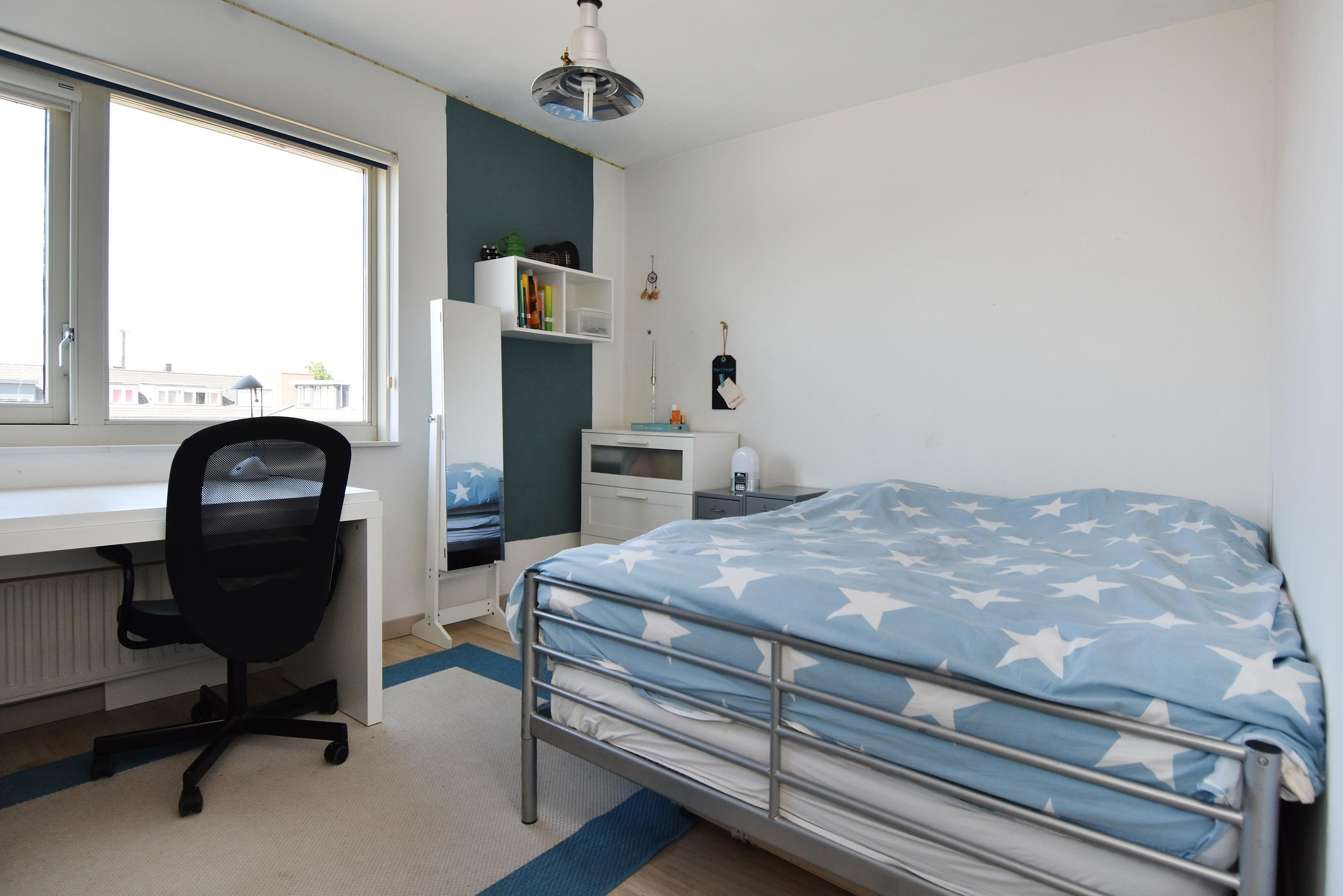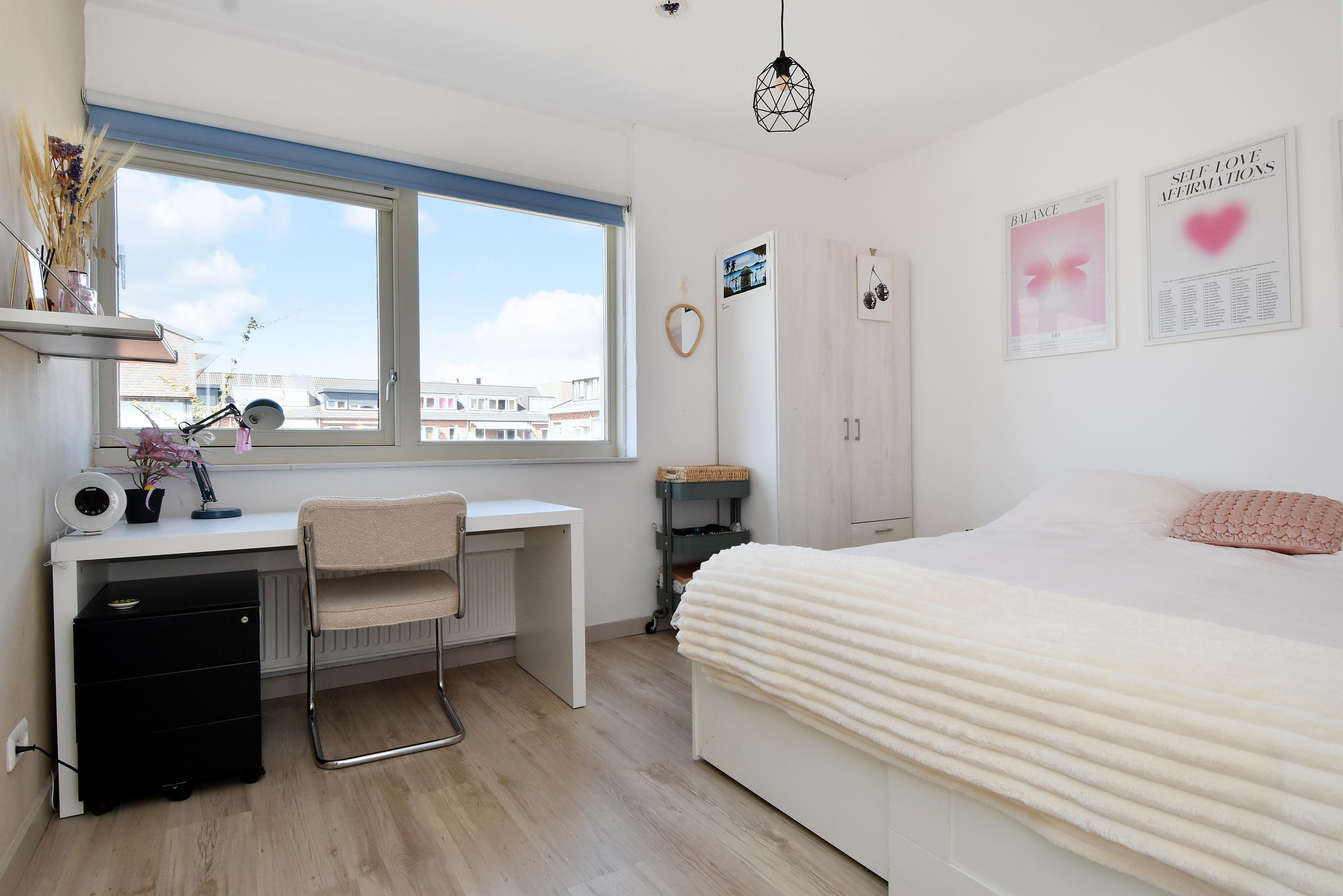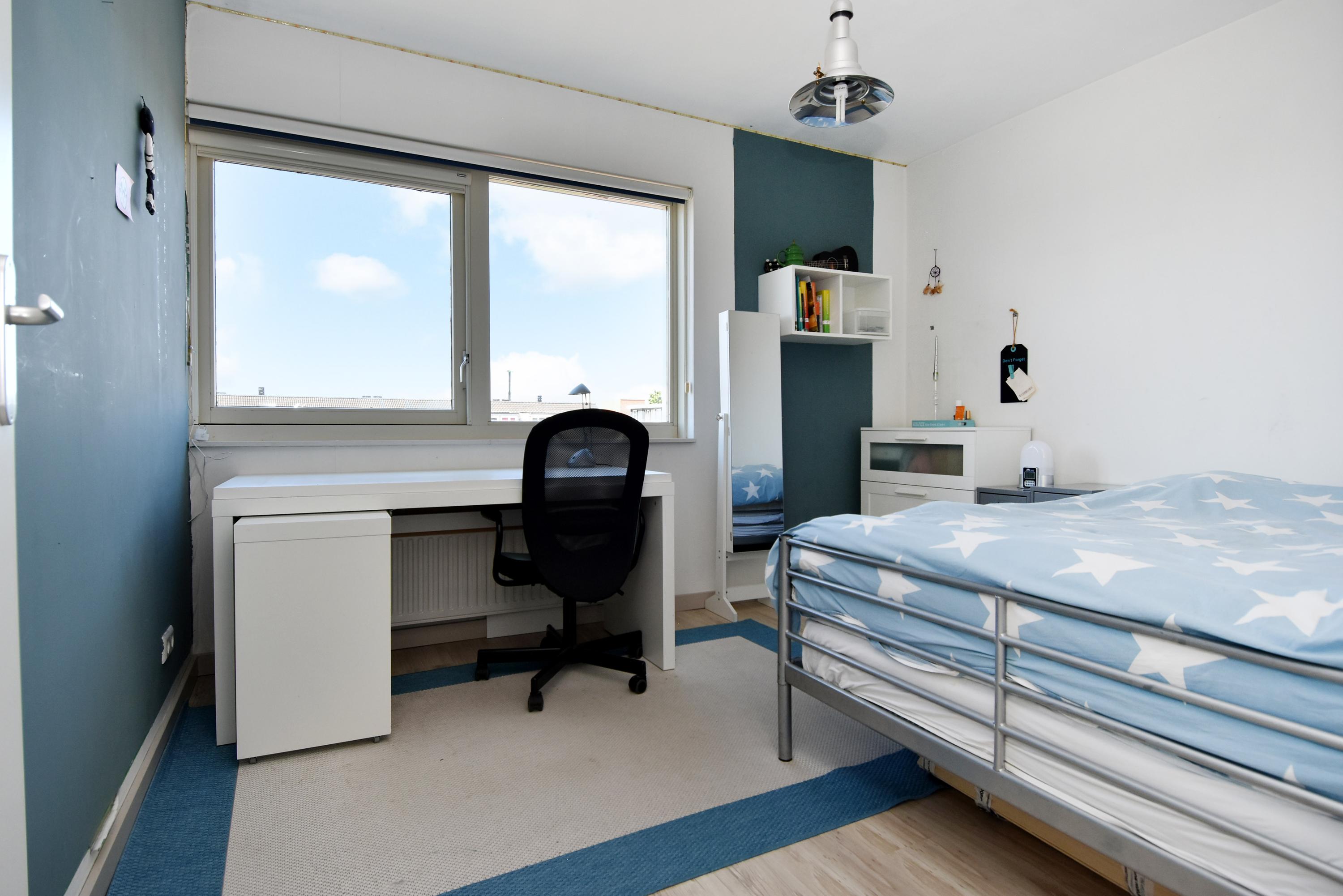 The third bedroom/studio (currently the master bedroom), which provides access to the terrace, has a playful layout with a particularly attractive ceiling height of more than 4 metres (!) with a mezzanine and loft.