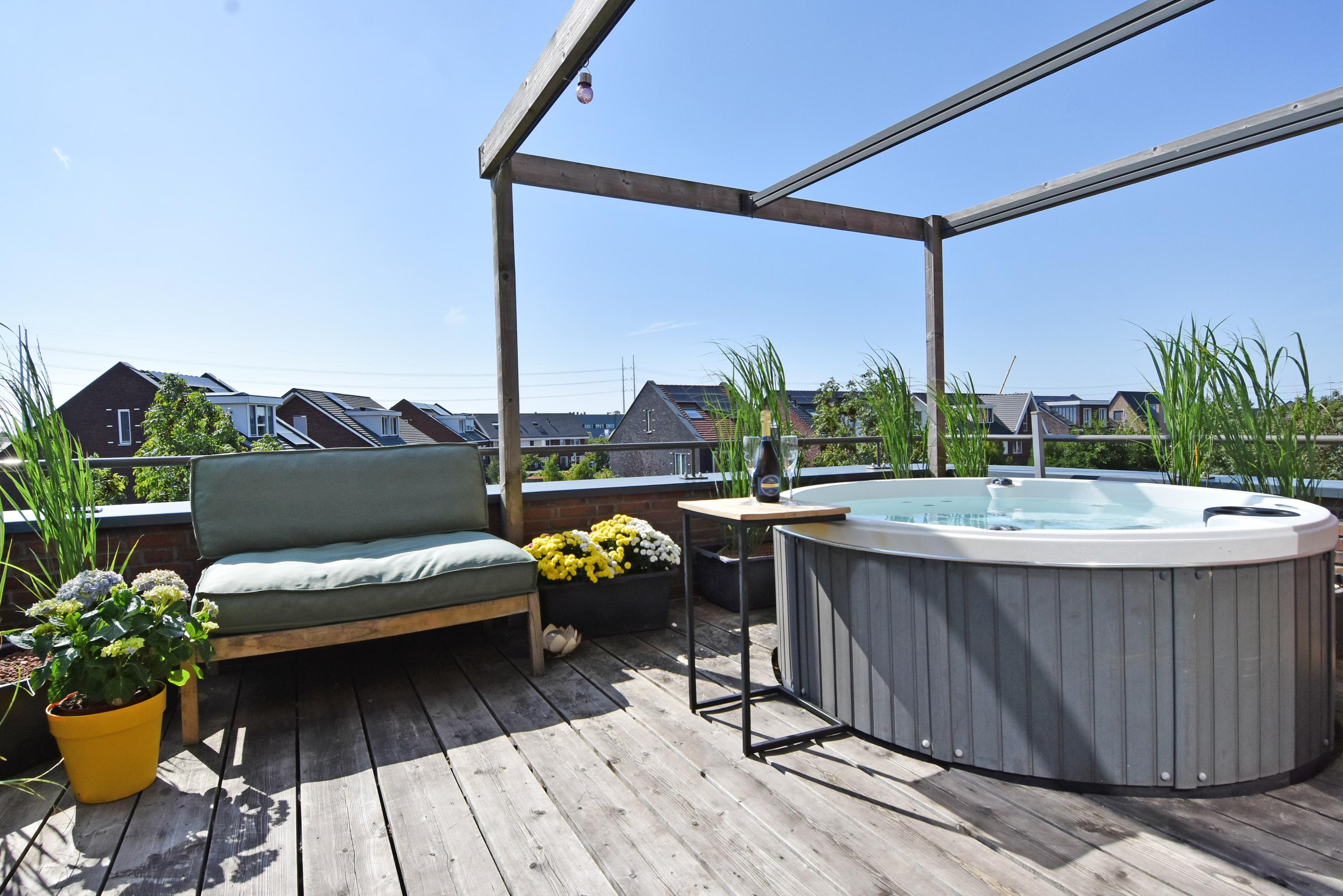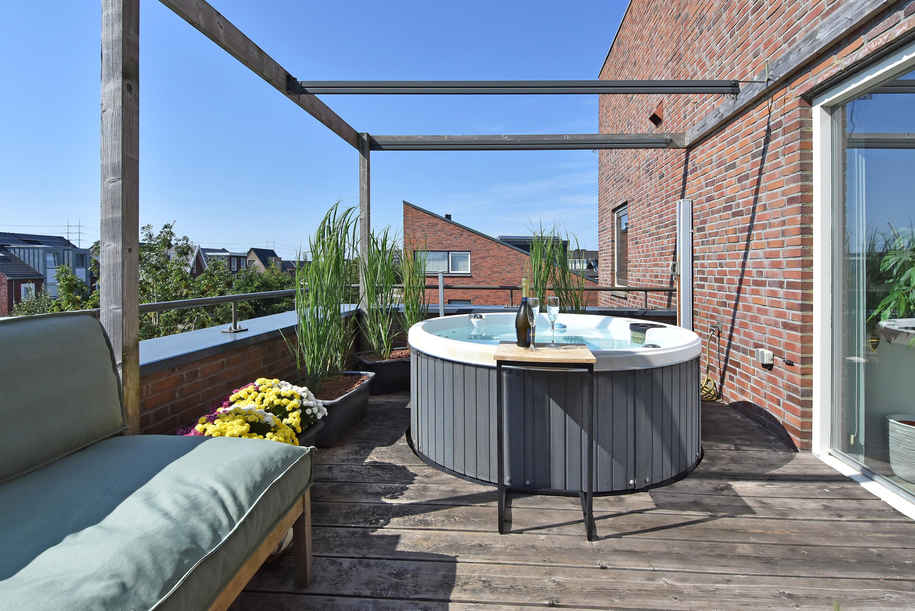 There is also a spacious south-west facing roof terrace, where you can enjoy the sun all day long with plenty of privacy. The current owner has a jacuzzi here.