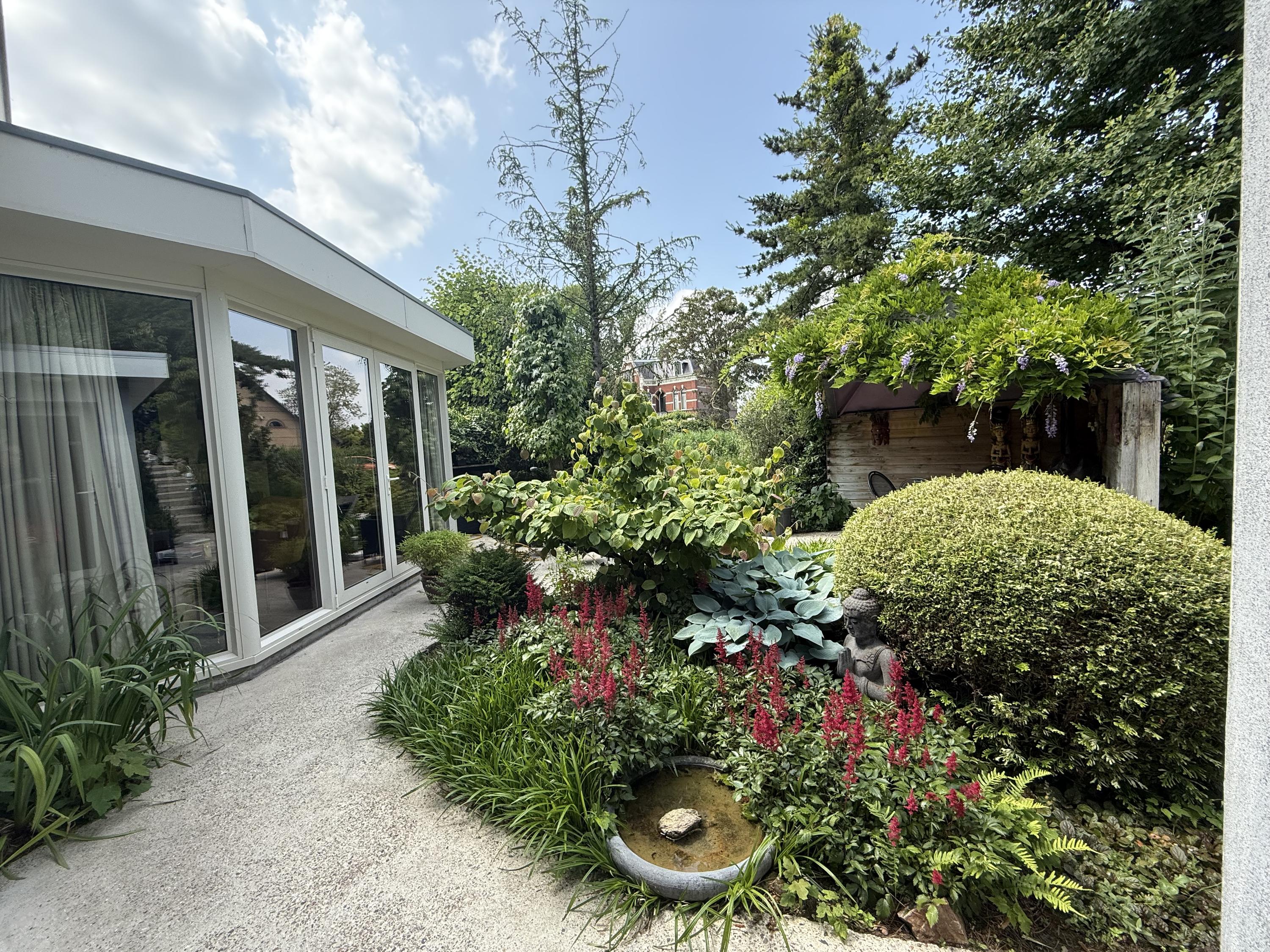 The garden forms a true oasis of tranquility and has been carefully designed in Japanese style. Atmospheric seating areas, green sightlines and a harmonious layout create a unique outdoor experience. Here, you can enjoy peaceful views over the water and surrounding nature.