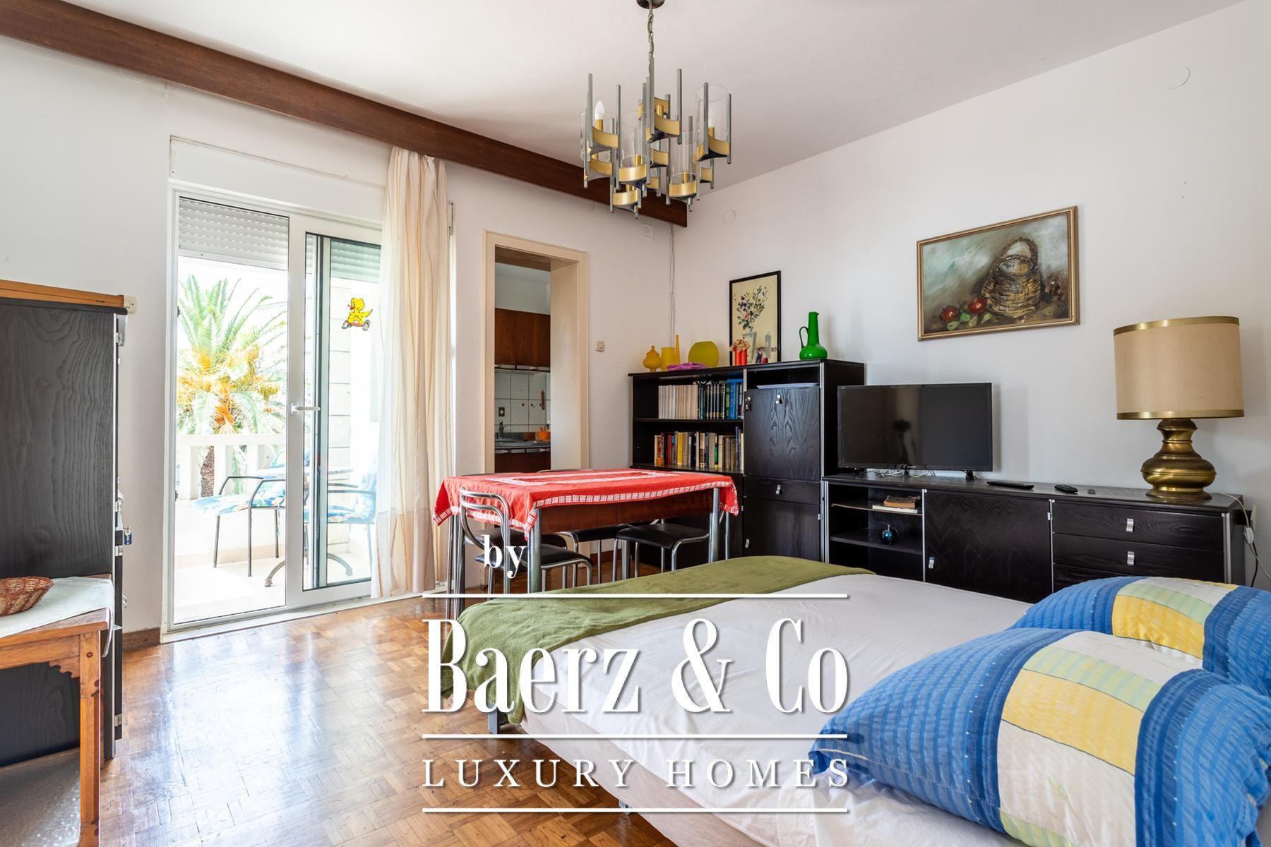 House Gradac first row by the sea represents a rare opportunity for those seeking a combination of privacy, scale and waterfront living in Croatia. The property encompasses 506 m² on a 900 m² plot, comprising seven distinct apartments arranged across multiple levels. The ground floor hosts a two-storey residence featuring a generous kitchen, dining, and living area, complemented by a spacious terrace, additional living room, bedroom, and a secondary kitchen with balcony. Separate from the main building, a self-contained studio apartment provides two bedrooms, a bathroom, and kitchen, while two further ground-floor apartments each offer their own private outdoor space, converging practicality with autonomy.