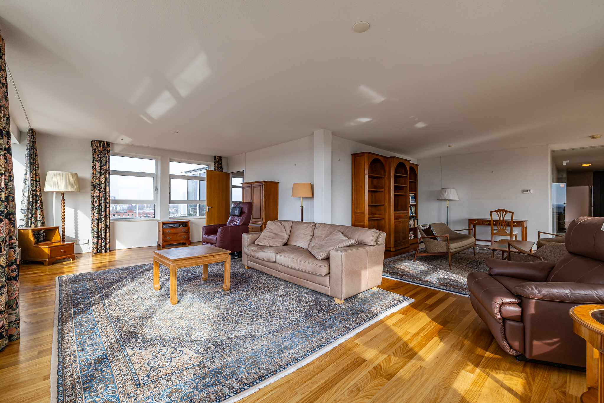 Penthouse Groningen is a rare residence offering refined urban living at the edge of the city’s historic heart. This exclusive penthouse provides 263 m² of living space, where floor-to-ceiling views extend over the Verbindingskanaal, the Zuiderhaven, and the tree-lined Praediniussingel. The property’s distinctive design, achieved by uniting two penthouses, creates a spacious layout with four bedrooms and two bathrooms, including features such as a whirlpool, sauna, and steam cabin.