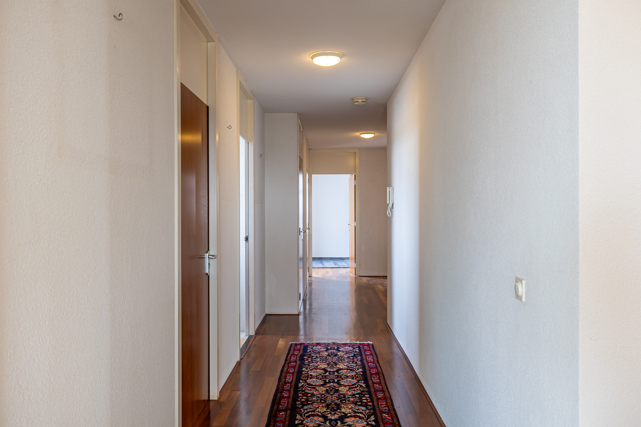 A unique feature, supported by preliminary municipality approval, is the potential to divide the penthouse into two independent apartments, each with its own entrance and flexible layout.