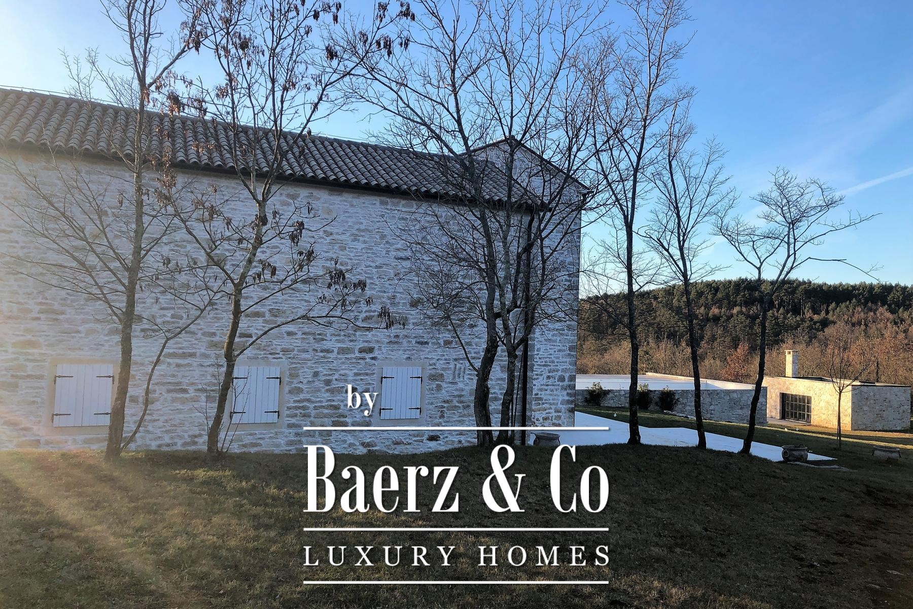 Luxury villa Grožnjan is a rare estate in the heart of inland Istria, blending authentic heritage with refined contemporary living. Spanning 13,497 m² of peaceful land, this property features 517 m² of living space arranged across three distinct structures: a main stone house, an intimate lounge house, and a new architect-designed building. The original stone buildings have been meticulously restored, preserving more than 250 years of Istrian tradition and architectural character.