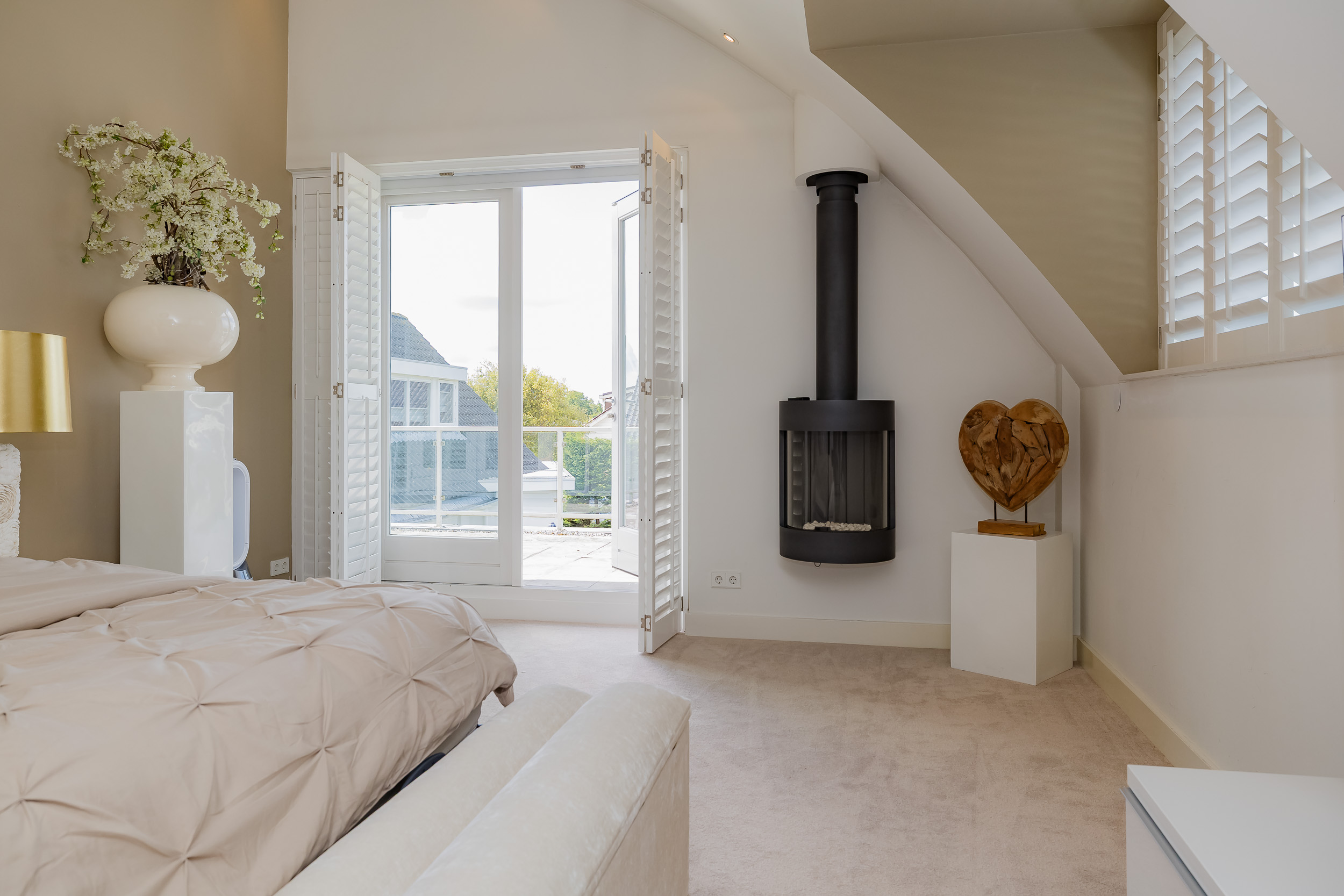 • Spacious living room with gas fireplace and luxury harmonica doors