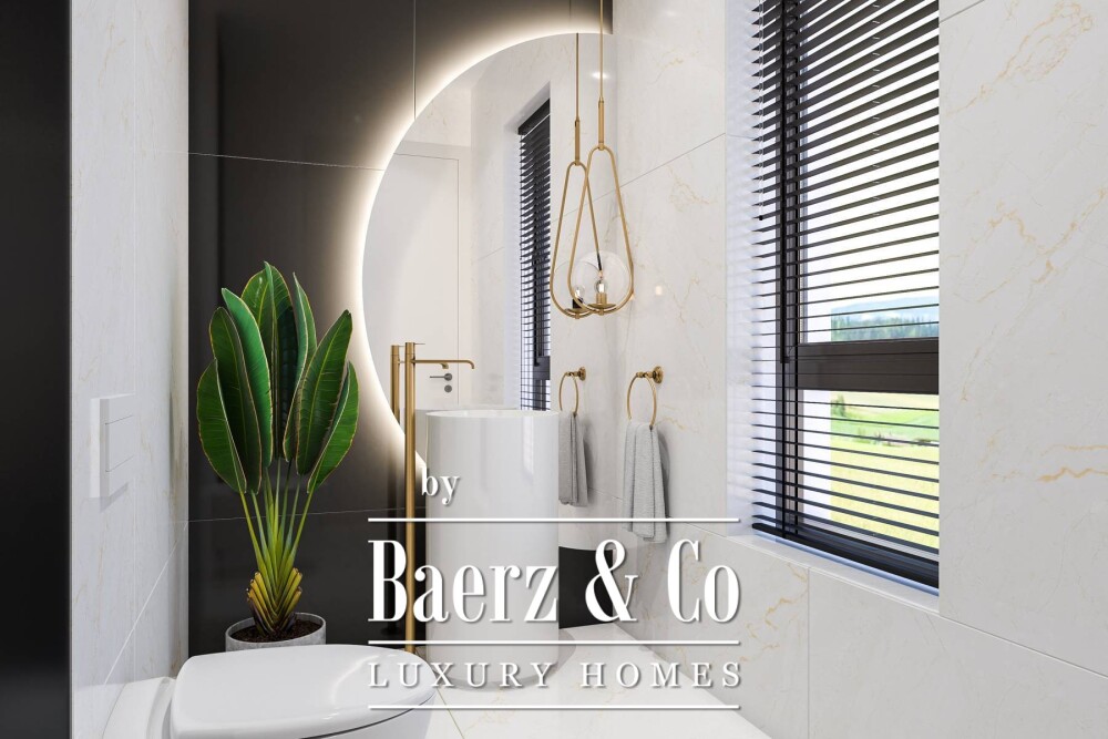 Amenities include a Finnish sauna, jacuzzi, heated infinity pool, and firepit. Outdoor living is defined by a glass-edged pool terrace, integrated grill, and a landscaped, secure garden with automatic irrigation and an electric vehicle charger. The villa benefits from advanced heating and cooling, solar plant energy, smart entry, security systems, and high-quality finishes throughout. There are four private parking spaces. During the construction phase, the buyer may request tailored changes, ensuring this villa for sale in Kaštelir-Labinci is deeply personal, perfectly attuned to an international lifestyle.