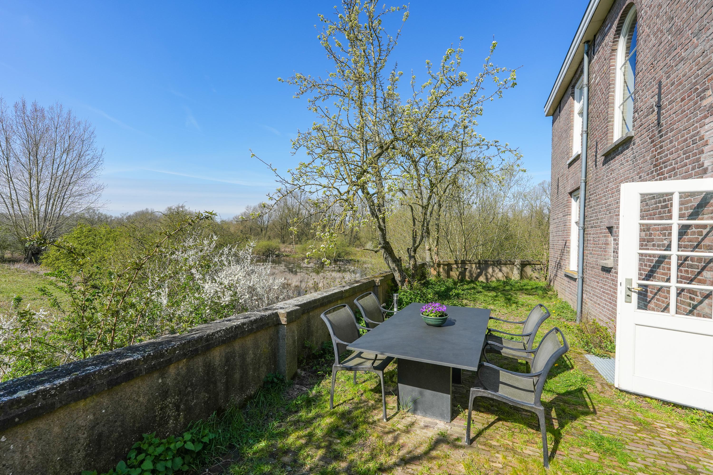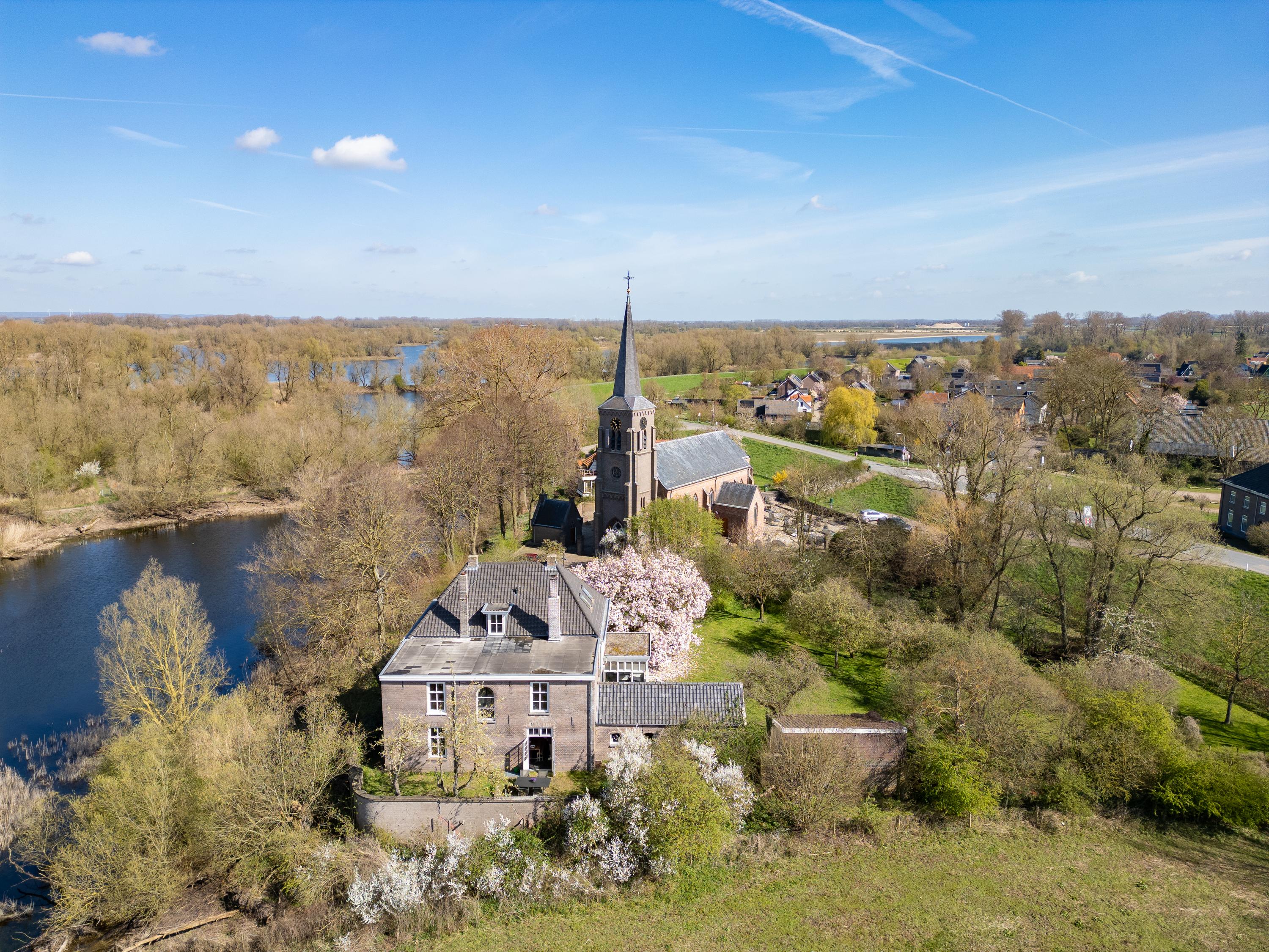 The property is defined by its connection to nature: views reach toward the iconic Sint-Laurentiuskerk on one side, while the opposite aspect opens to wild meadows where horses, cattle, and nesting storks add to the setting’s authenticity. Historic village life and sweeping river landscapes coexist here, creating a unique residential atmosphere. The old orchard and wild garden, complete with private water, further enhance the experience of space and tranquility.