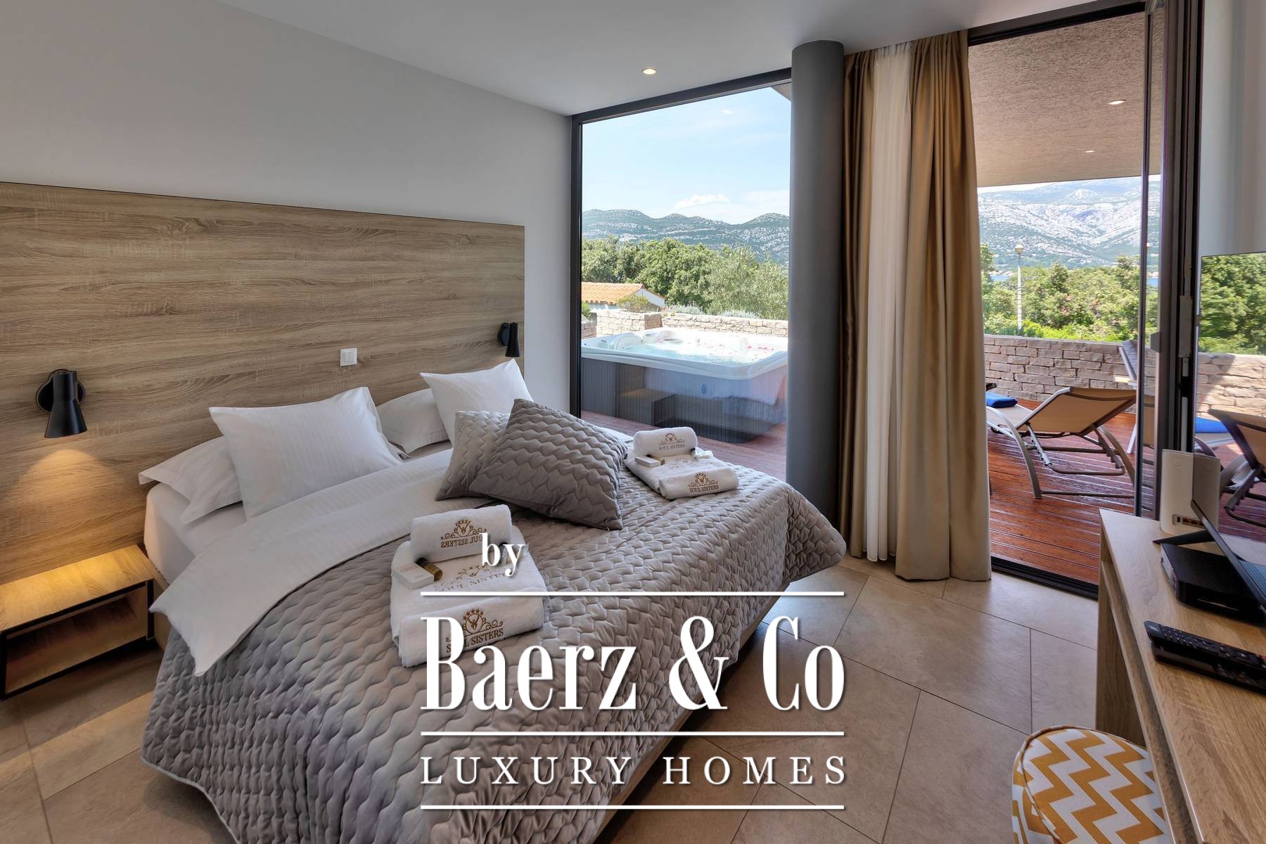 Underfloor heating and tile floors anchor the interiors, which are designed with both luxury and restraint. Located just minutes from Korčula’s historic heart, this villa offers privacy, enduring design, and seamless access to the Adriatic lifestyle. This luxury villa for sale in Korčula is equally suited for private retreats or as a strategic investment in a sought-after coastal destination.