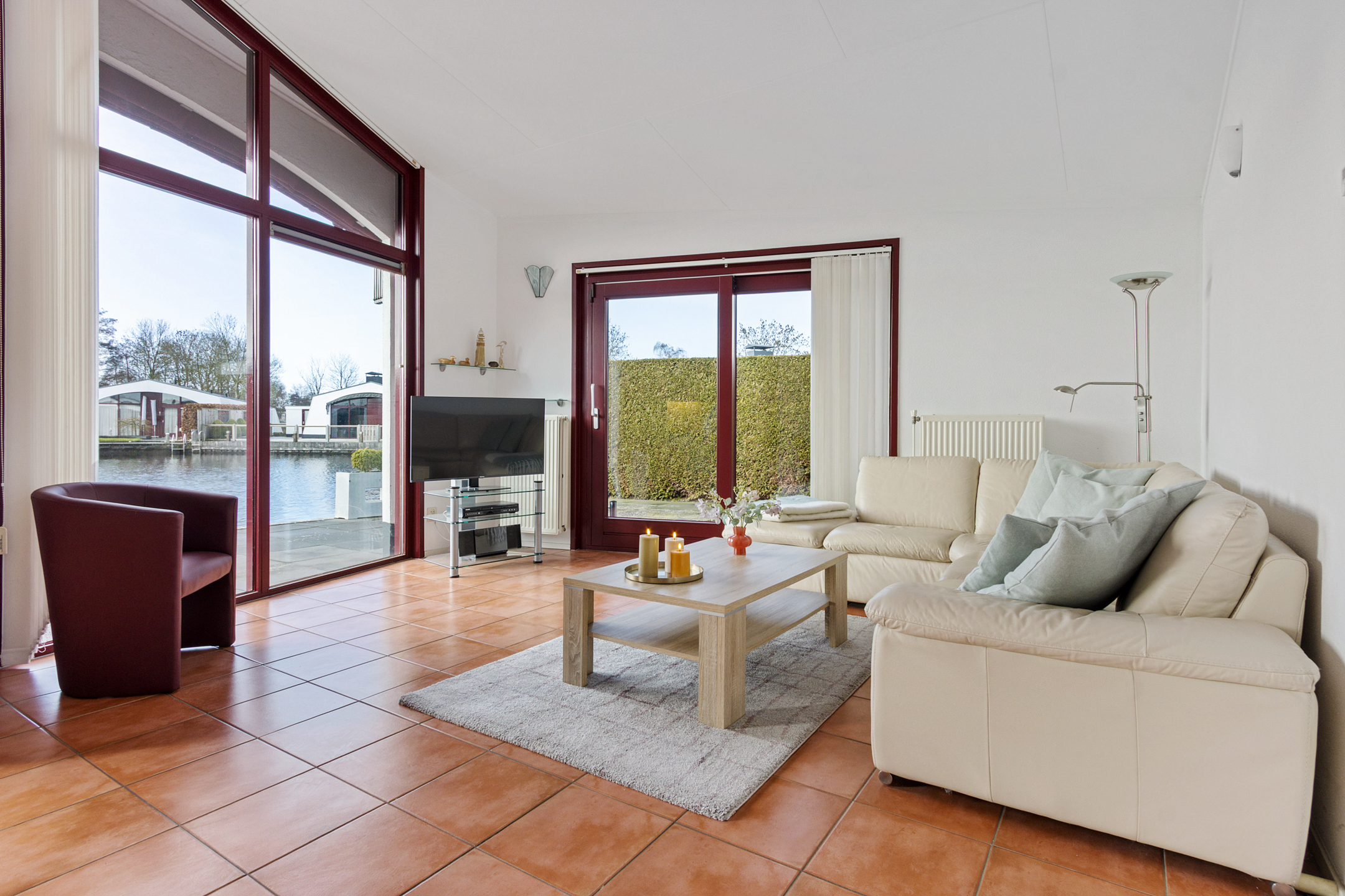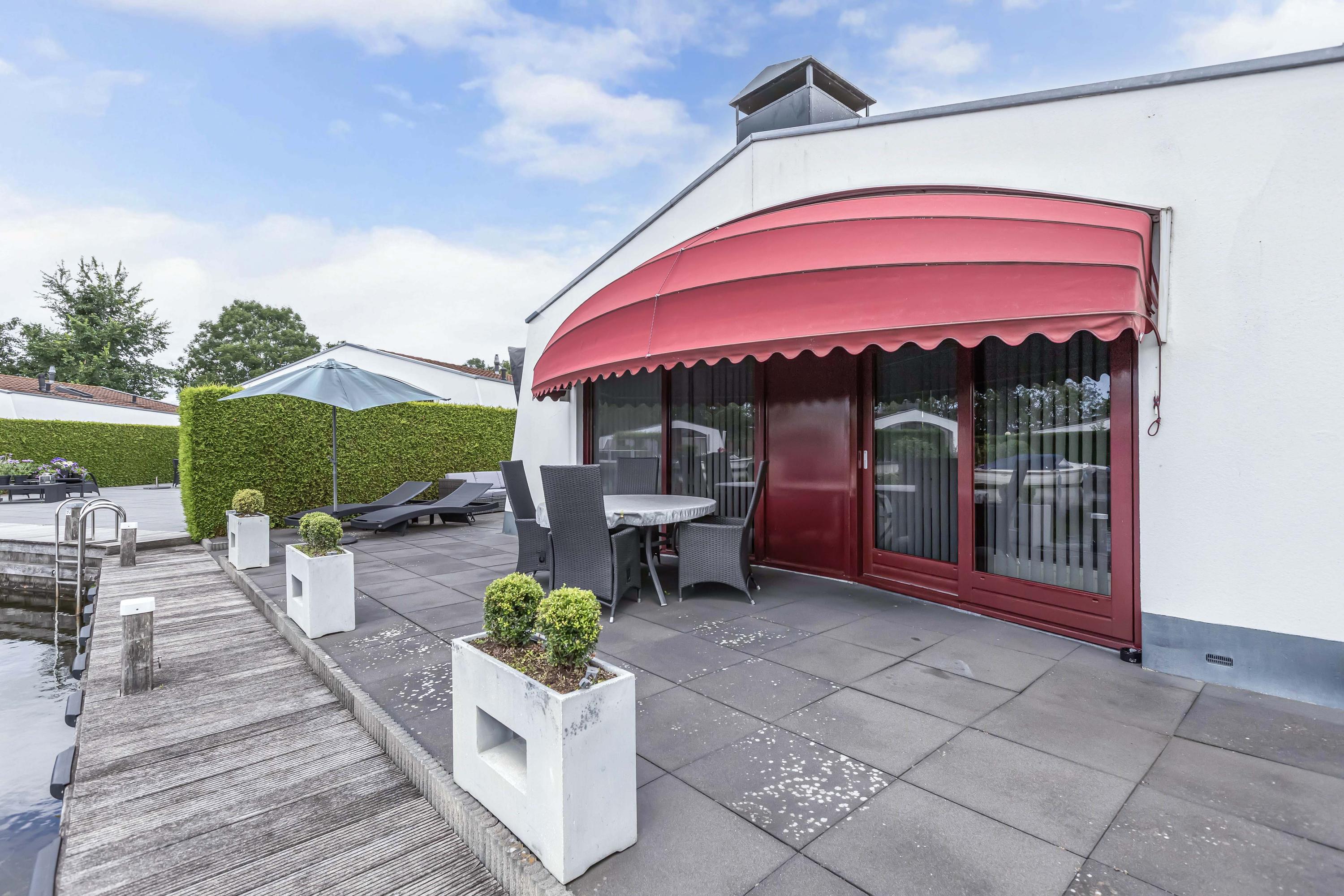 The garden is low-maintenance and features multiple terraces. Thanks to its south-facing position along the water, you benefit optimally from sunlight and natural light throughout the day. Whether you wish to enjoy a peaceful breakfast by the water in the morning or drinks in the sheltered evening sun, there is always a perfect spot to be found.