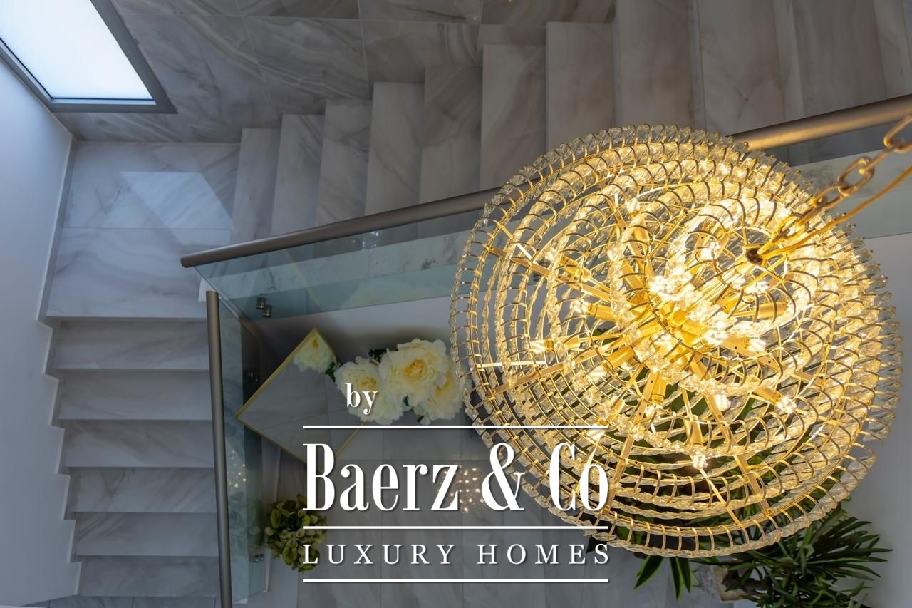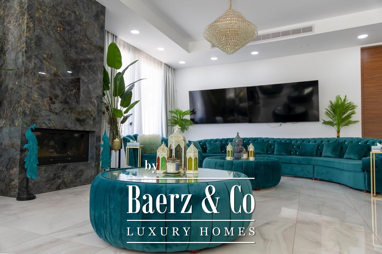Crafted with elevated ceilings and fluid spatial transitions, the villa is arranged across two principal floors plus a full basement. Seven bedrooms are distributed for privacy and comfort, with five en-suite master suites, a guest room and separate housekeeper’s accommodation. Living spaces are defined by natural light and curated furnishings, underscored by premium finishes and a purposeful layout. Integrated smart home automation, underfloor heating and a VRV climate control system approach modern convenience with understated precision. A private cinema room and full CCTV security further express a discreet take on elite living.