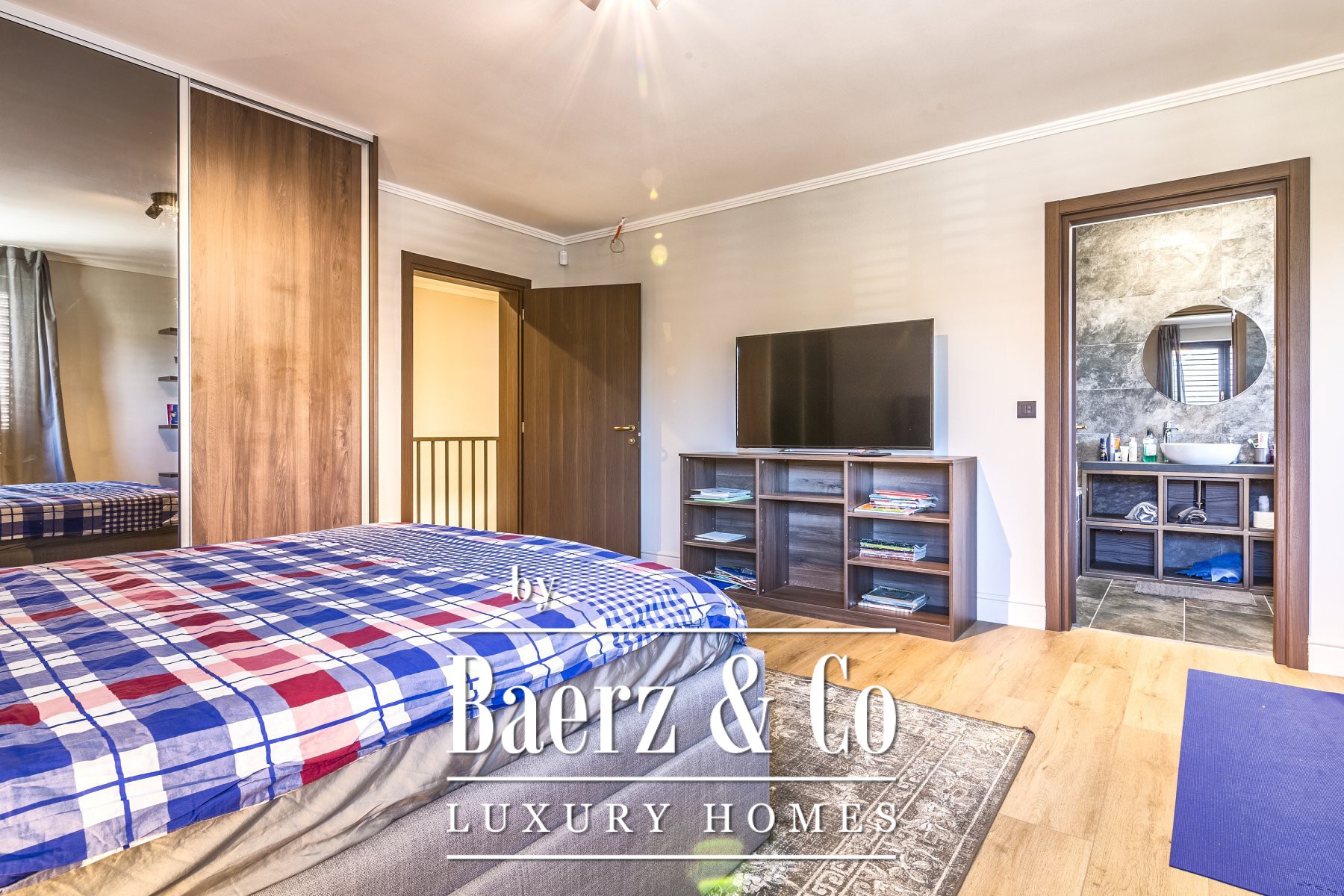 Material selections include Villeroy & Boch sanitary ware, Cattelan furnishings, RC2 burglar-proof glazing, electric windows, underfloor heating, and a sophisticated alarm and camera system. Solar panels grace the rooftop, underscoring a commitment to efficiency. The setting is calm and green, yet close to city amenities, promising a balanced blend of retreat and connection. This luxury townhouse for sale in Maksimir invites a refined pace of life tailored for those who value comfort, design, and privacy.