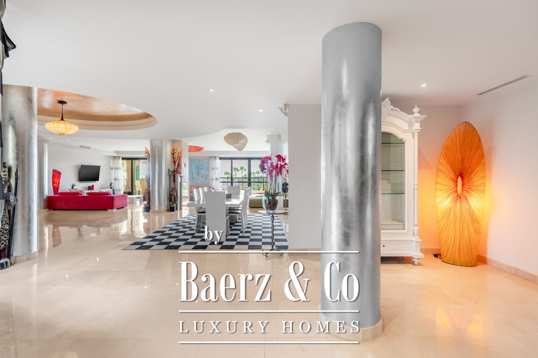 This beachfront apartment Marbella melds expansive interior living with the allure of direct Mediterranean access. Encompassing 394 m² of indoor space and 67 m² of terraces, the first-floor residence enjoys south-west orientation, flooding the home with light and revealing tranquil sunset vistas over the sea. The address is set amidst one of Marbella's most private coastal enclaves, moments from Puerto Banús, celebrated dining, designer boutiques, and necessary amenities.