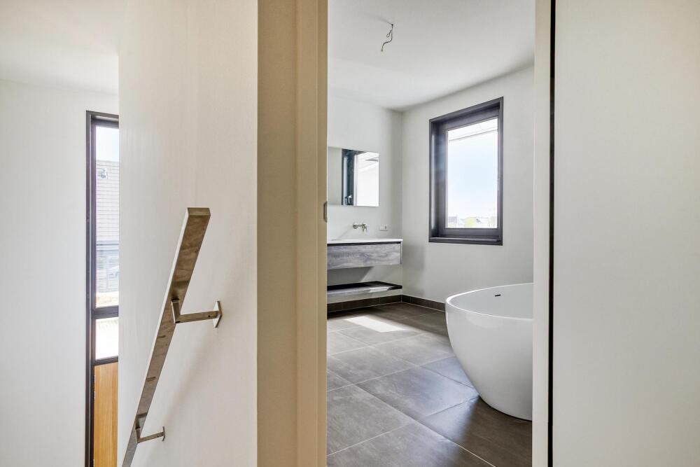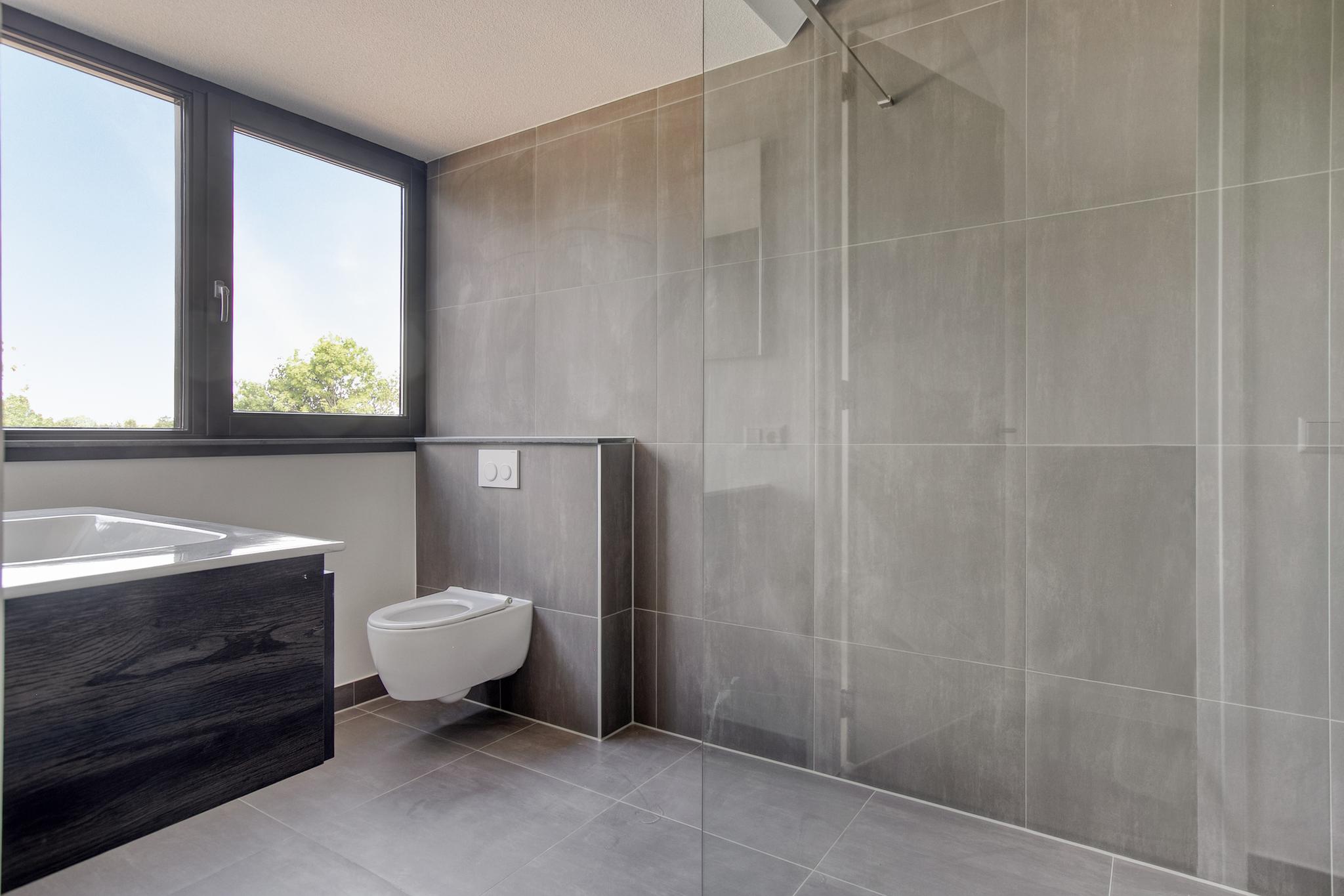 On the second floor you will find three bedrooms. The master bedroom has its own luxurious bathroom with double sink, walk-in shower and toilet, and provides access to a spacious walk-in closet. The second bathroom is equipped with a bathtub, shower corner and double sink, ideal for families. A separate toilet room completes it all.