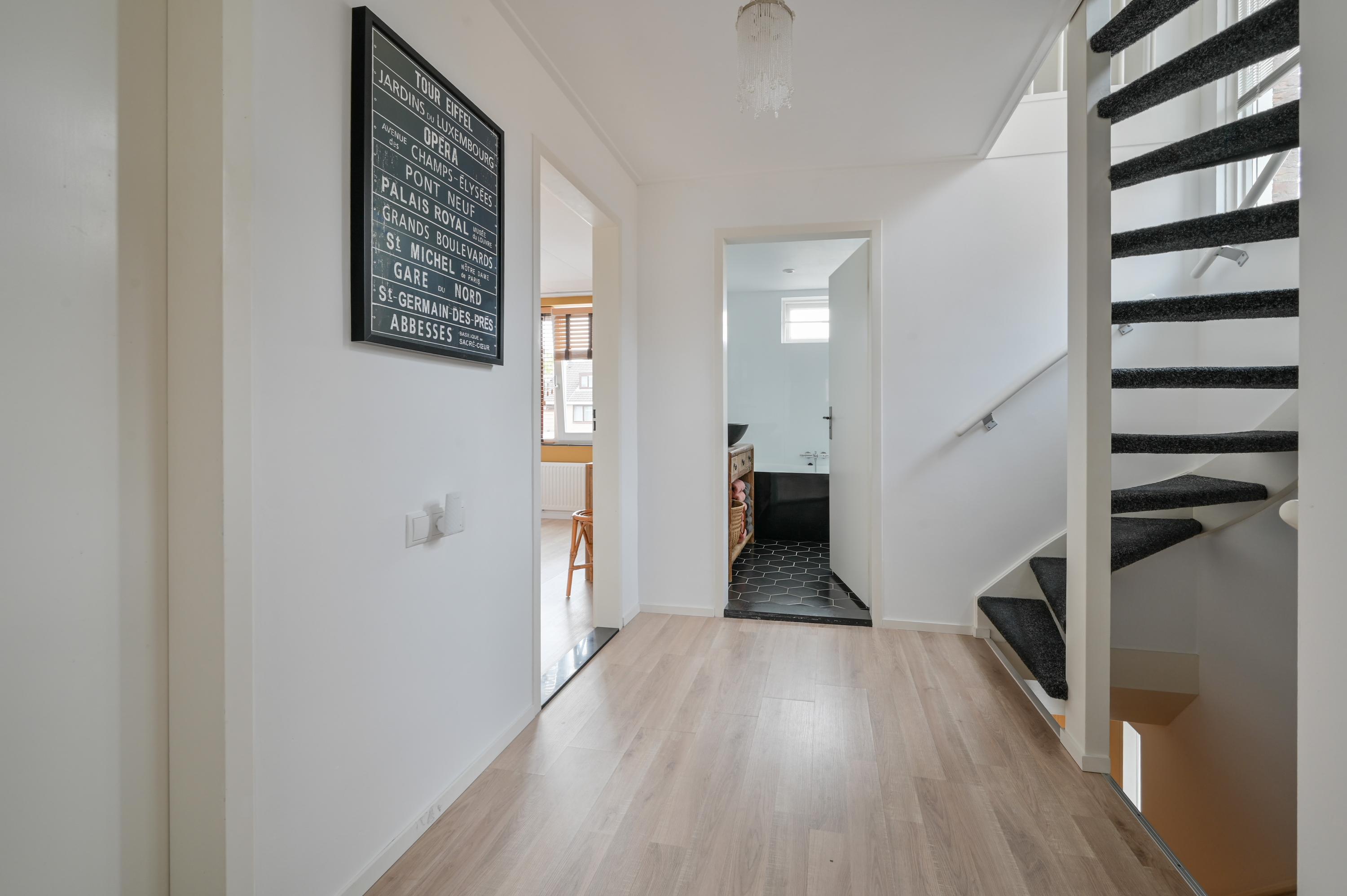 The second floor is surprisingly spacious and bright. The landing is generously sized and ideal for use as a workspace or home office. Thanks to the windows in the stairwell, there is an abundance of natural light, creating an open and pleasant atmosphere.