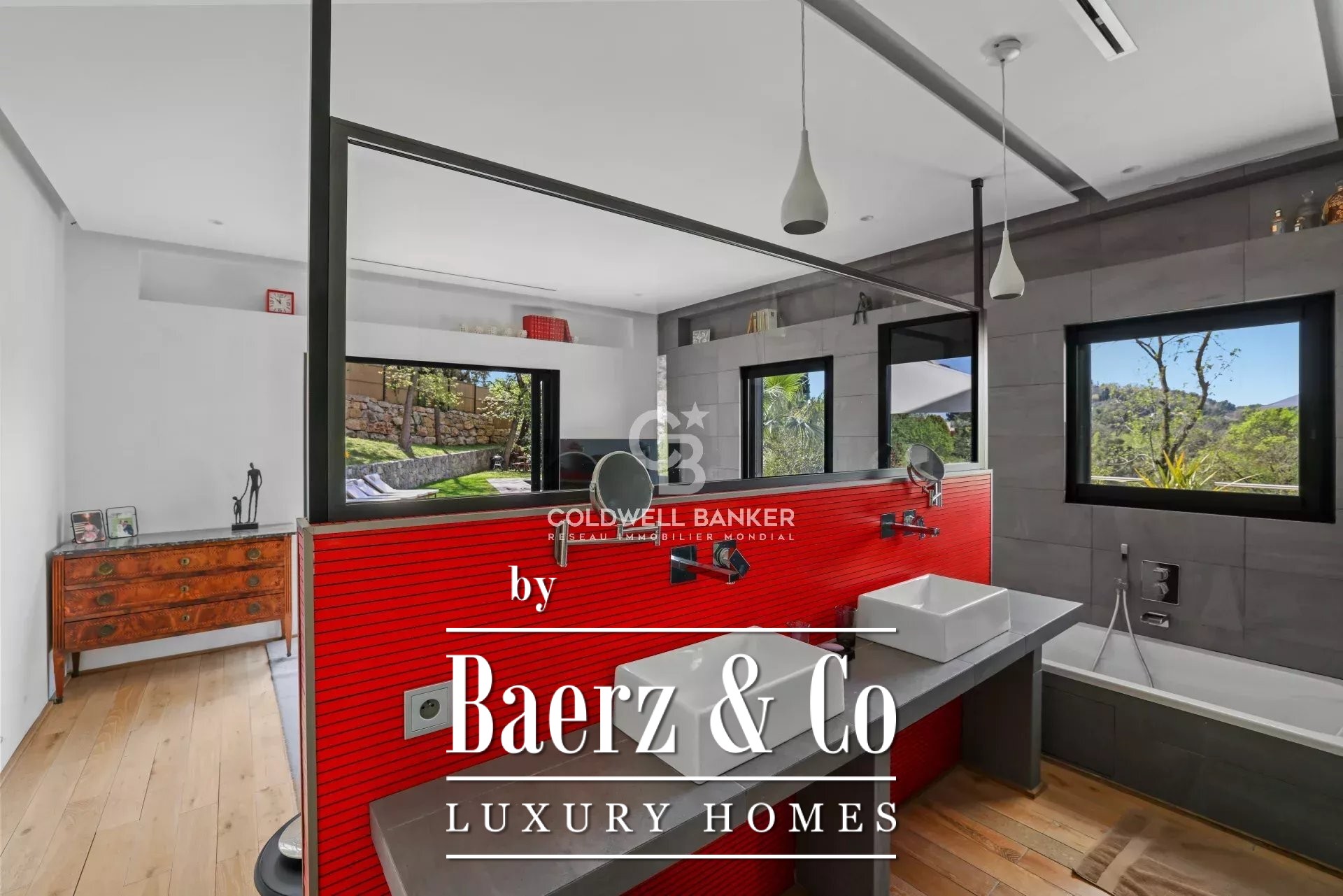 The Mediterranean garden, set on a meticulously landscaped plot exceeding 3,000 m², features a swimming pool, jacuzzi, pétanque court, and multiple terraces for outdoor leisure. Villa Mougins is ideally situated near international schools, key roads, and the Sophia Antipolis technology park, blending privacy with access. This luxury villa for sale in Mougins is an exceptional opportunity in the Côte d’Azur property market, catering to discerning buyers seeking elegance and convenience.