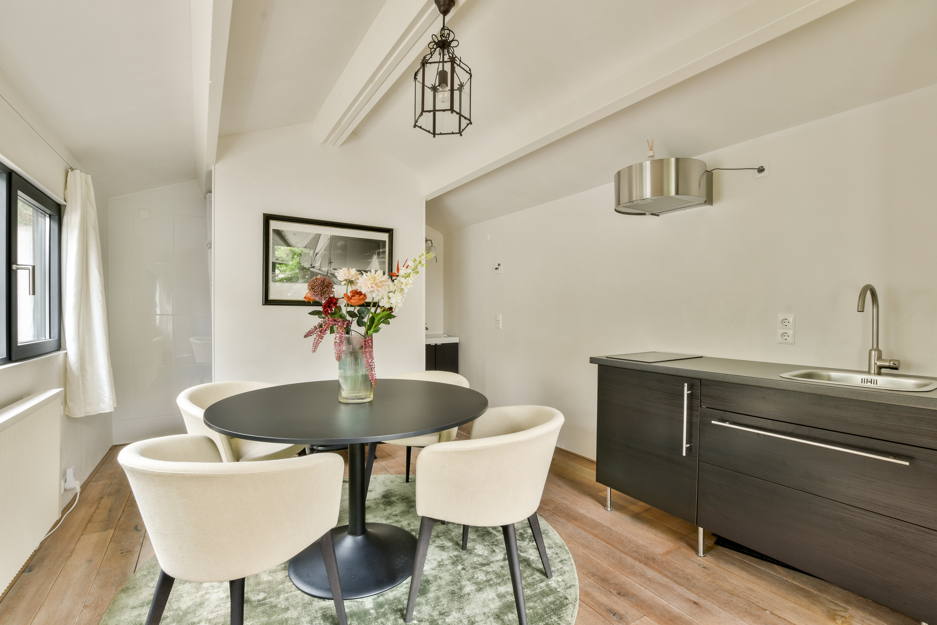 A small boat can be moored alongside the houseboat, allowing you to head straight onto the water. From your own terrace you can sail onto the Vecht for a relaxing trip past historic estates, charming villages and green riverbanks. Imagine long summer evenings on the water, spontaneous boating trips on sunny days, or quiet mornings accompanied only by the sound of gently moving water.