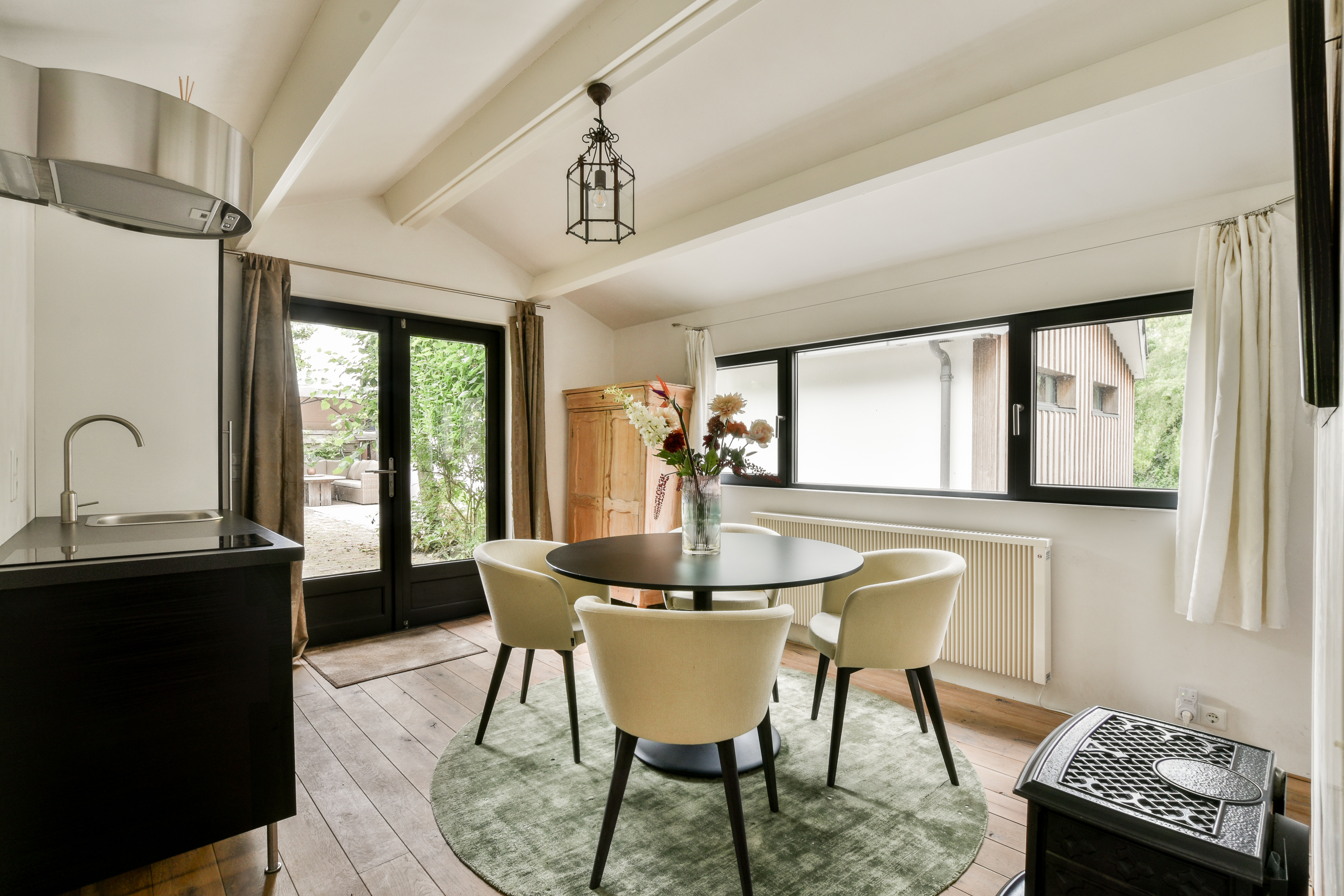 The living room forms the heart of the home and features a solid beechwood floor, a fireplace and large sliding glass doors leading to the floating terrace. Here indoor and outdoor living blend seamlessly, allowing you to enjoy the calm of the water all year round.
